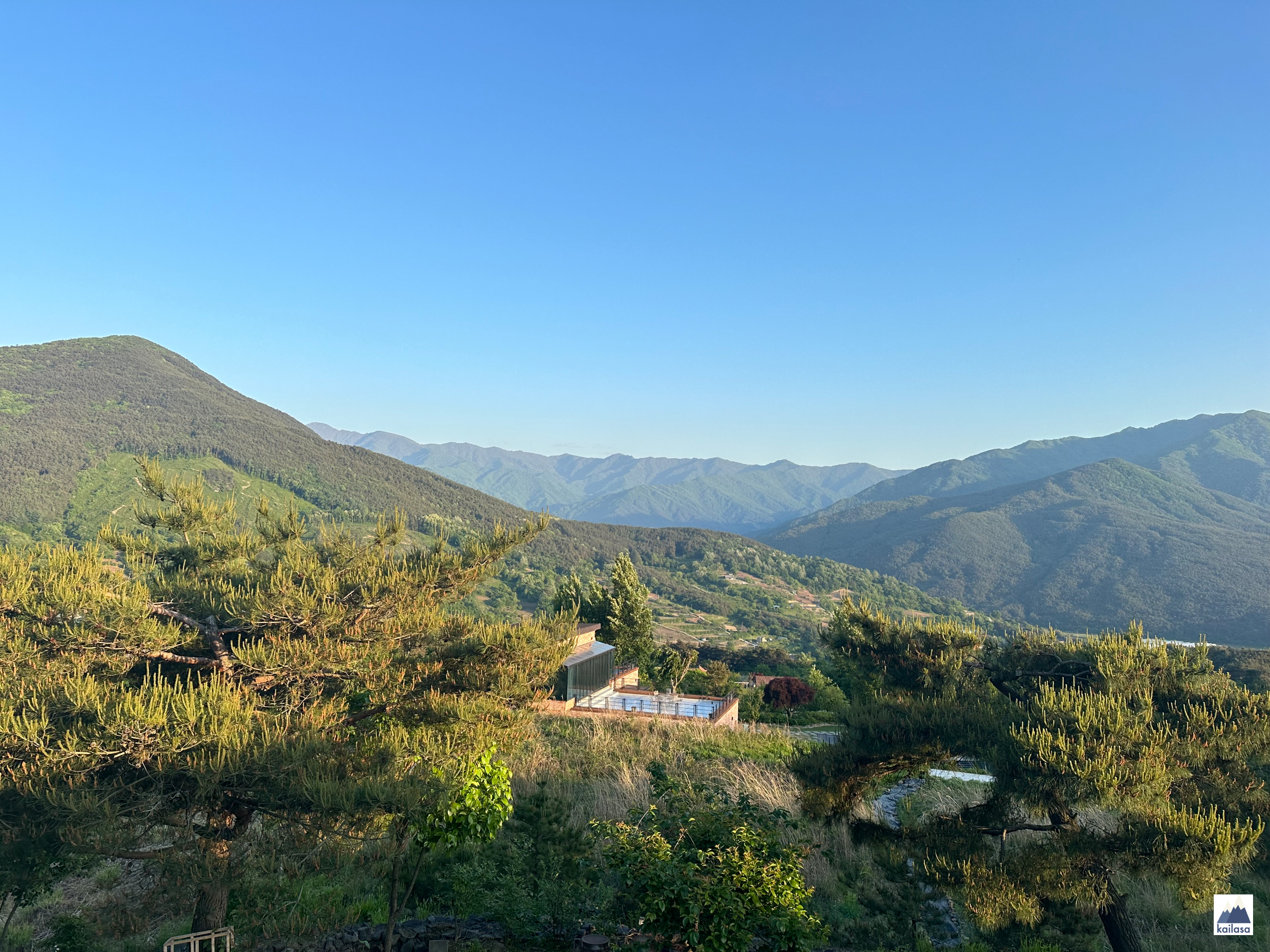 숙소 리뷰에 천왕봉부터 바래봉까지 보이는 뷰가 아름답다고, 창문만 열면 보이는 반야봉과 계곡이 보이는 최고의 전망이라고 했는데 정말로 그랬다. 이 뷰 하나만으로도 여기는 올 가치가 있다!