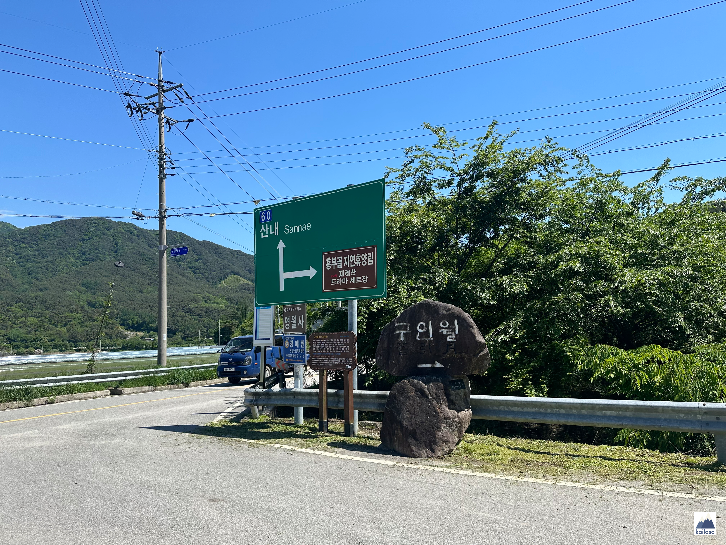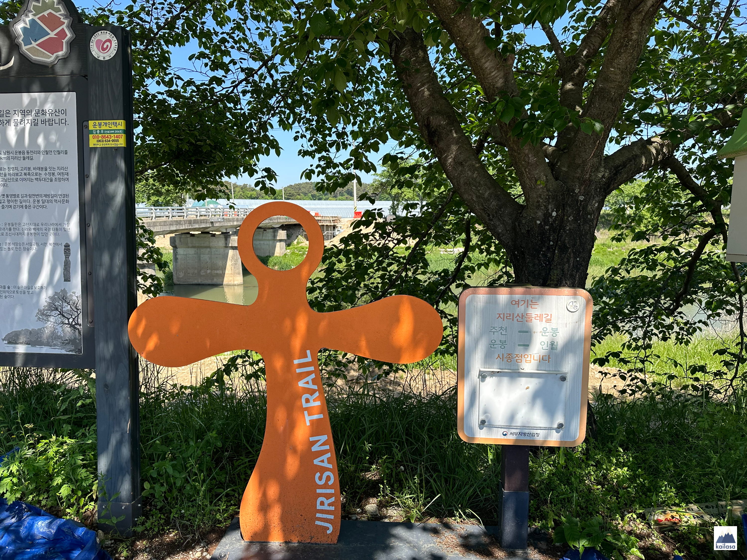 지루한 아스팔트길을 계속 내려가면 인월천과 구인월교가 나오고, 지리산 둘레길 3코스 인월-금계 구간 시종점 표지판이 보인다.