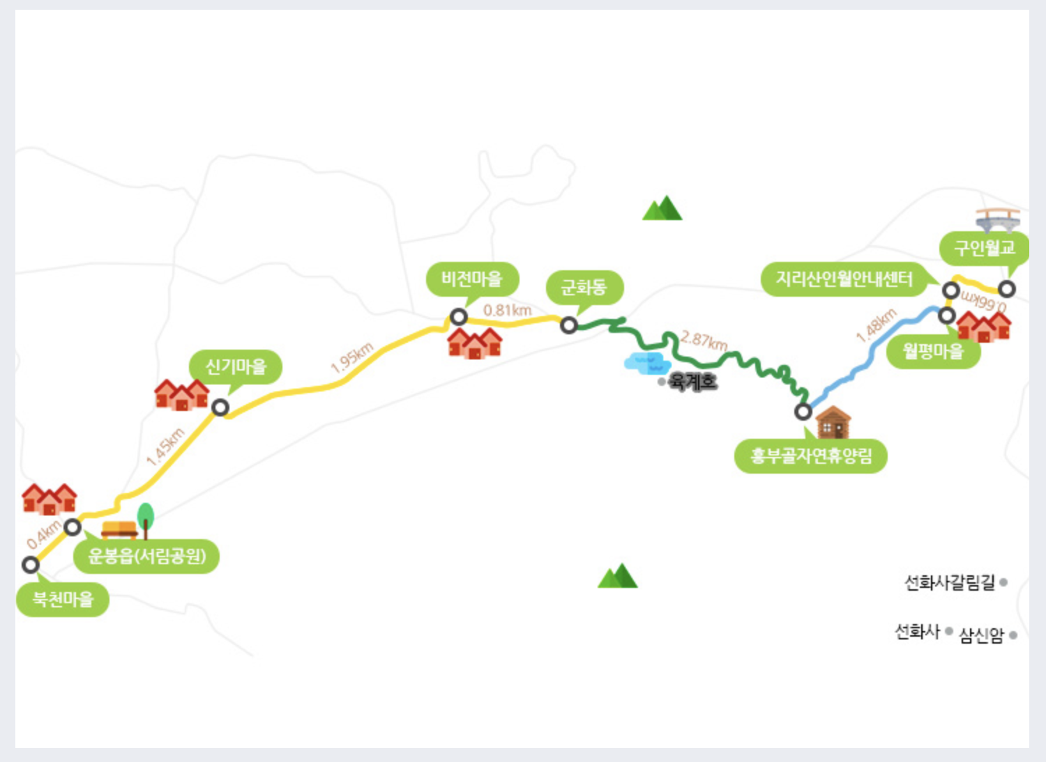 코스 인월 - 지리산 둘레길 2코스(운봉-인월) - 실상사 - 지리산게스트하우스 산장