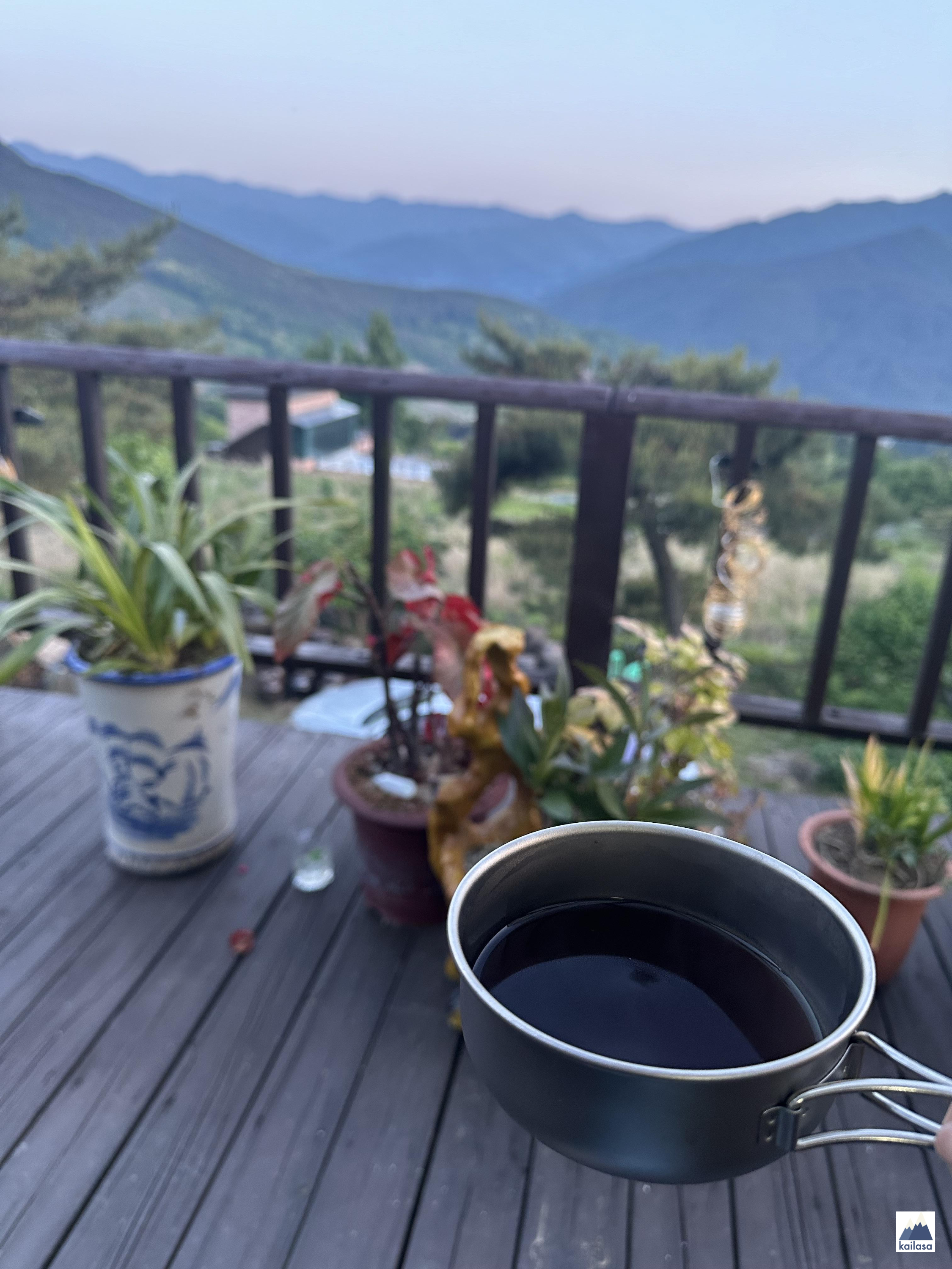뷰 즐기고 싶어서 산 보면서 커피 마시기 :)