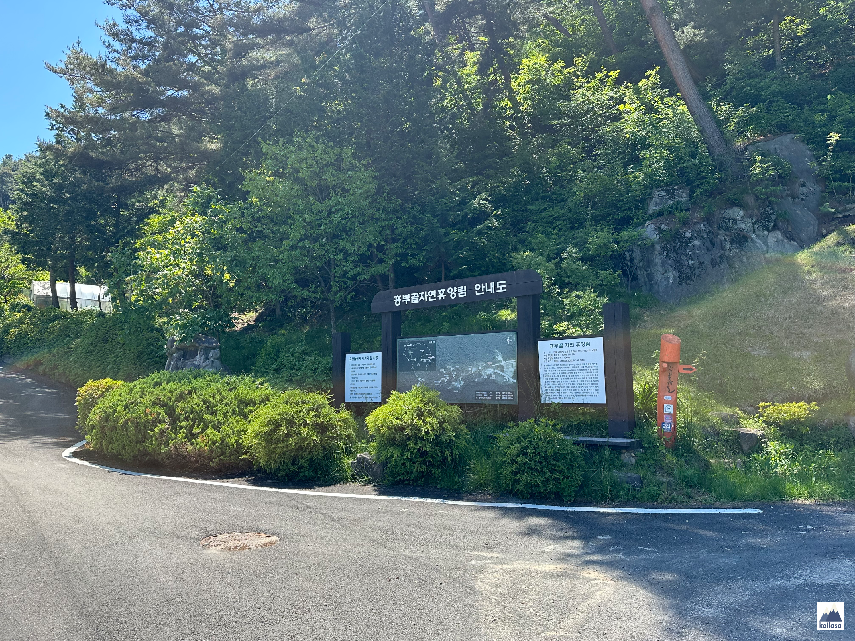 흥부골자연휴양림에 도착했다! 나는 들어가보지는 않았는데 드라마 지리산의 세트장이 있다고 한다.