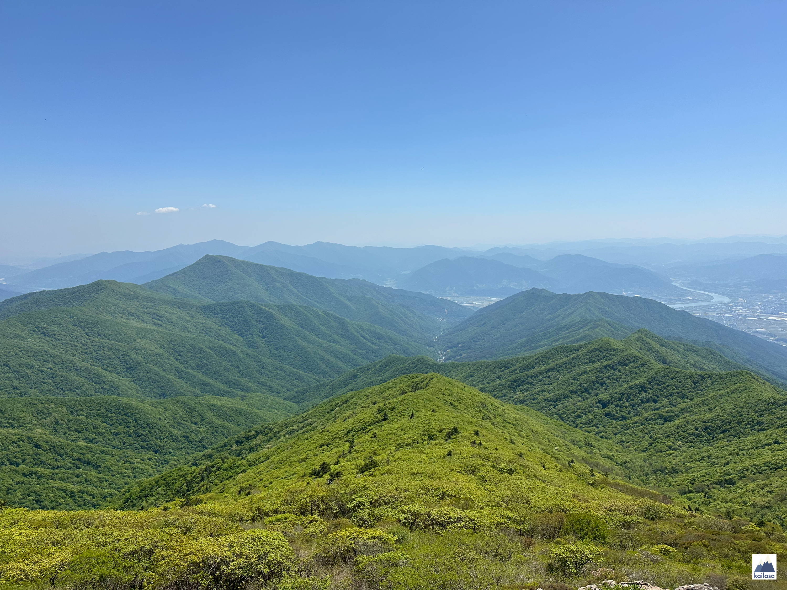5월의 햇볕이 여름 햇볕처럼 따가웠지만 정상에서 과일도 먹고 쉬다 내려감.
