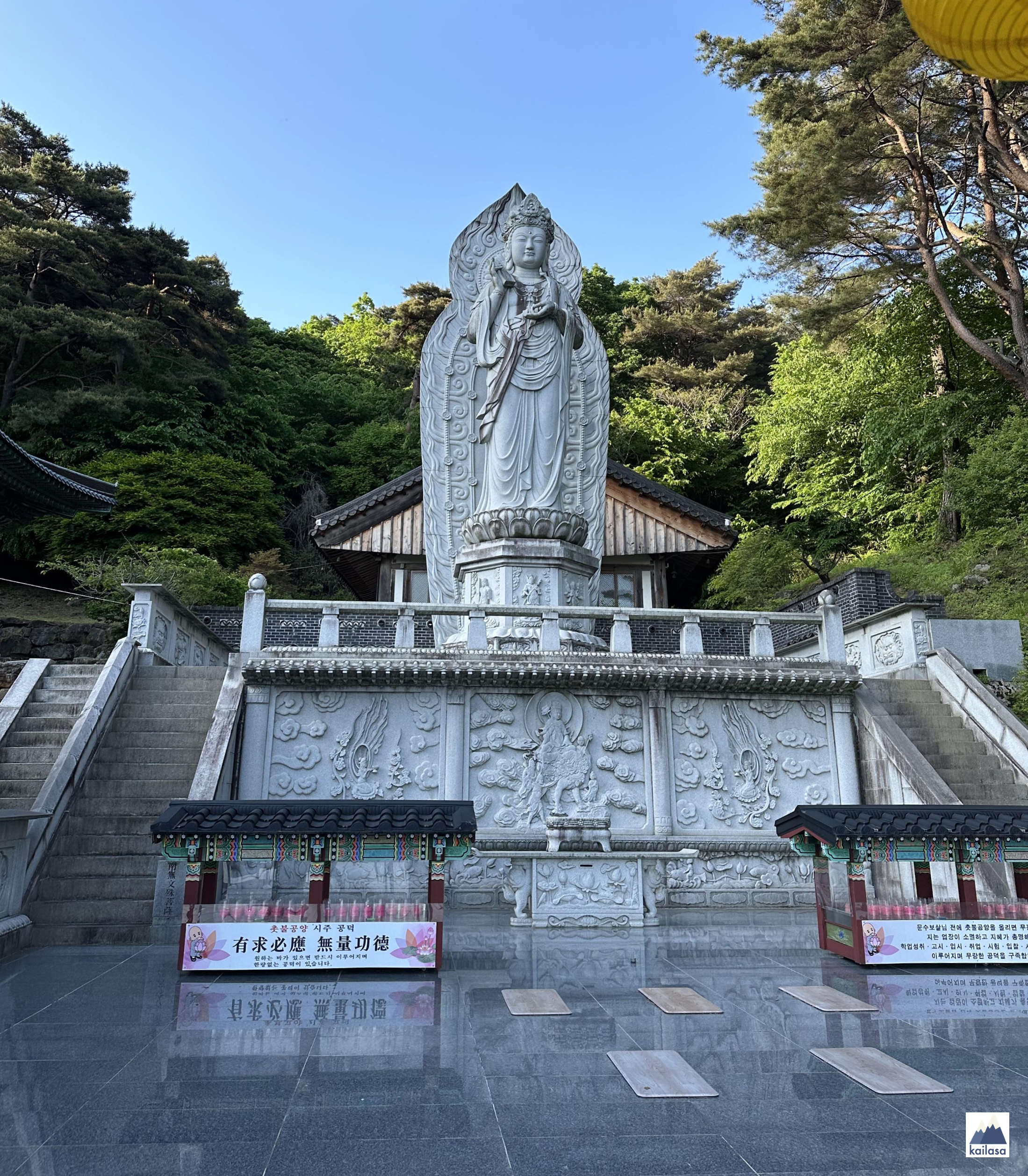 국내 최대 규모인 높이 13m에 달하는 문수보살상. 문수보살은 관세음보살, 보현보살, 지장보살과 함께 4대 보살로 불리며 지혜를 상징한다. 반야를 타고 가는 지혜를 주시기를!