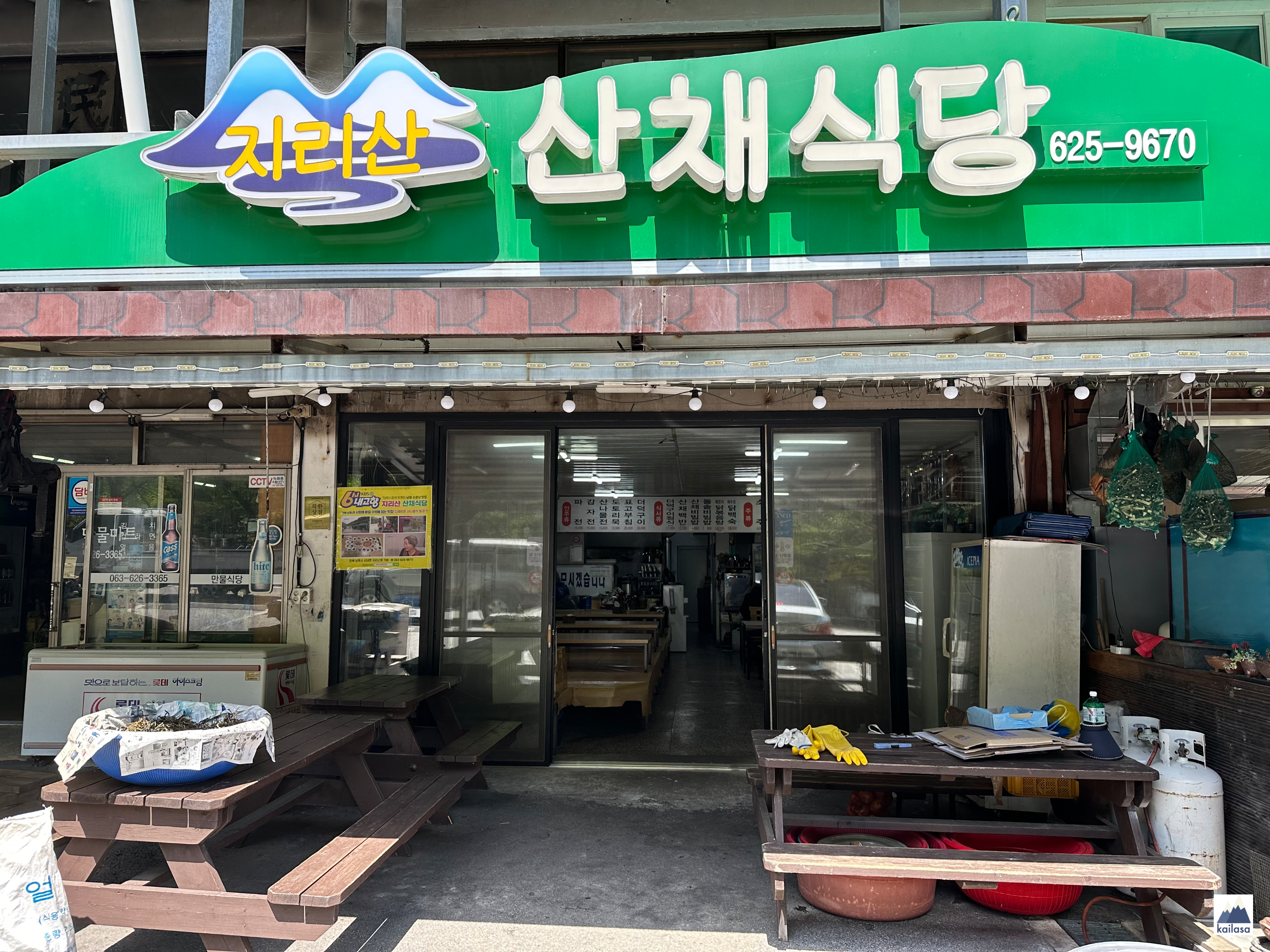 아침 식사하러 들어간 지리산 산채식당. 원래 옆옆에 있는 일출식당이랑 두 곳 다 봐두었는데 일주일 전쯤 큰 화재가 났다고 한다. 인명 피해도 있을 정도로 큰 화재라 일출식당은 복구 작업이 한창이었다. 영업 중이던 지리산 산채식당으로 갔는데 나물 반찬.. 미쳤다 ㅠ