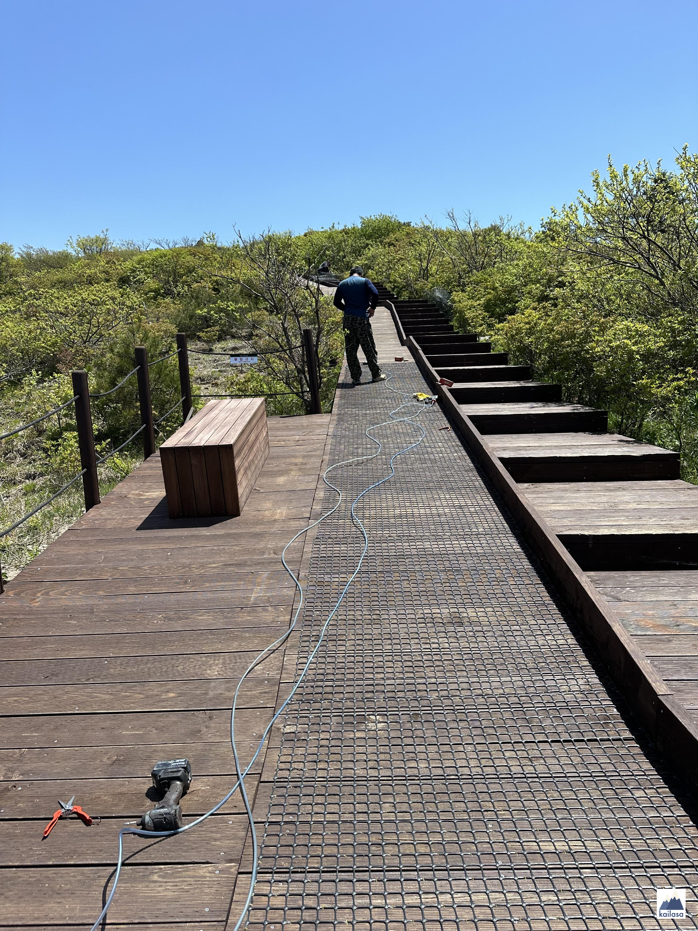 작년에 왔을 때 데크가 많이 낡았다 싶었는데 데크 교체 + 미끄럼 방지 공사를 하고 계셨다. 싹 다 바뀌겠구나~