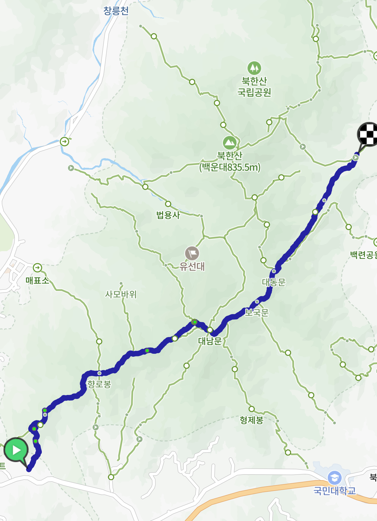 코스 불광역 - 족두리봉 - 사모바위 - 대남문 - 대동문 - 우이동