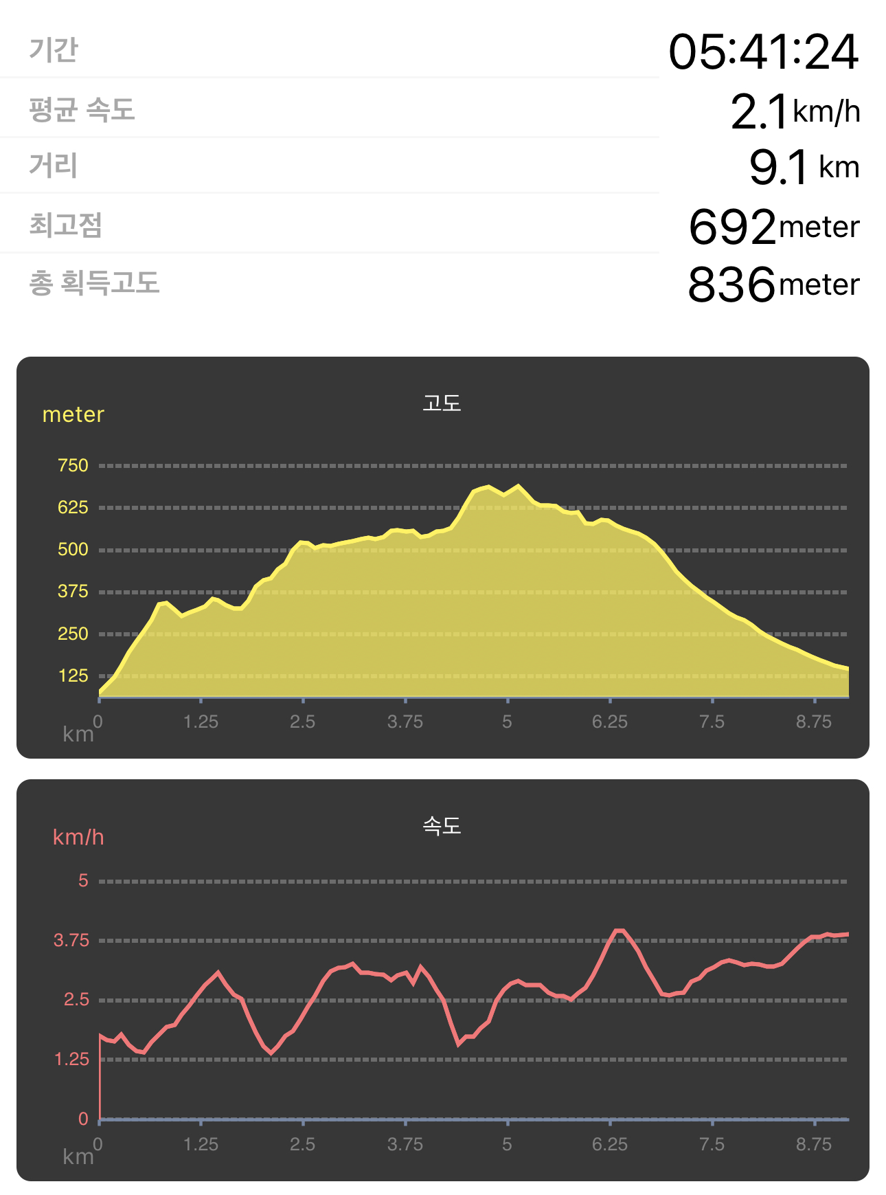 소요 시간 5시간 40분(휴식 1시간 20분 포함)