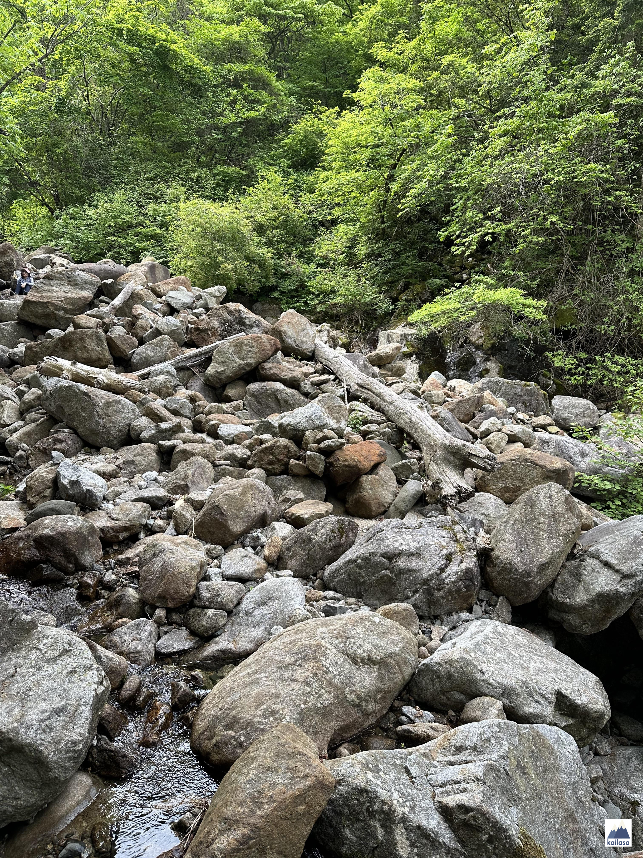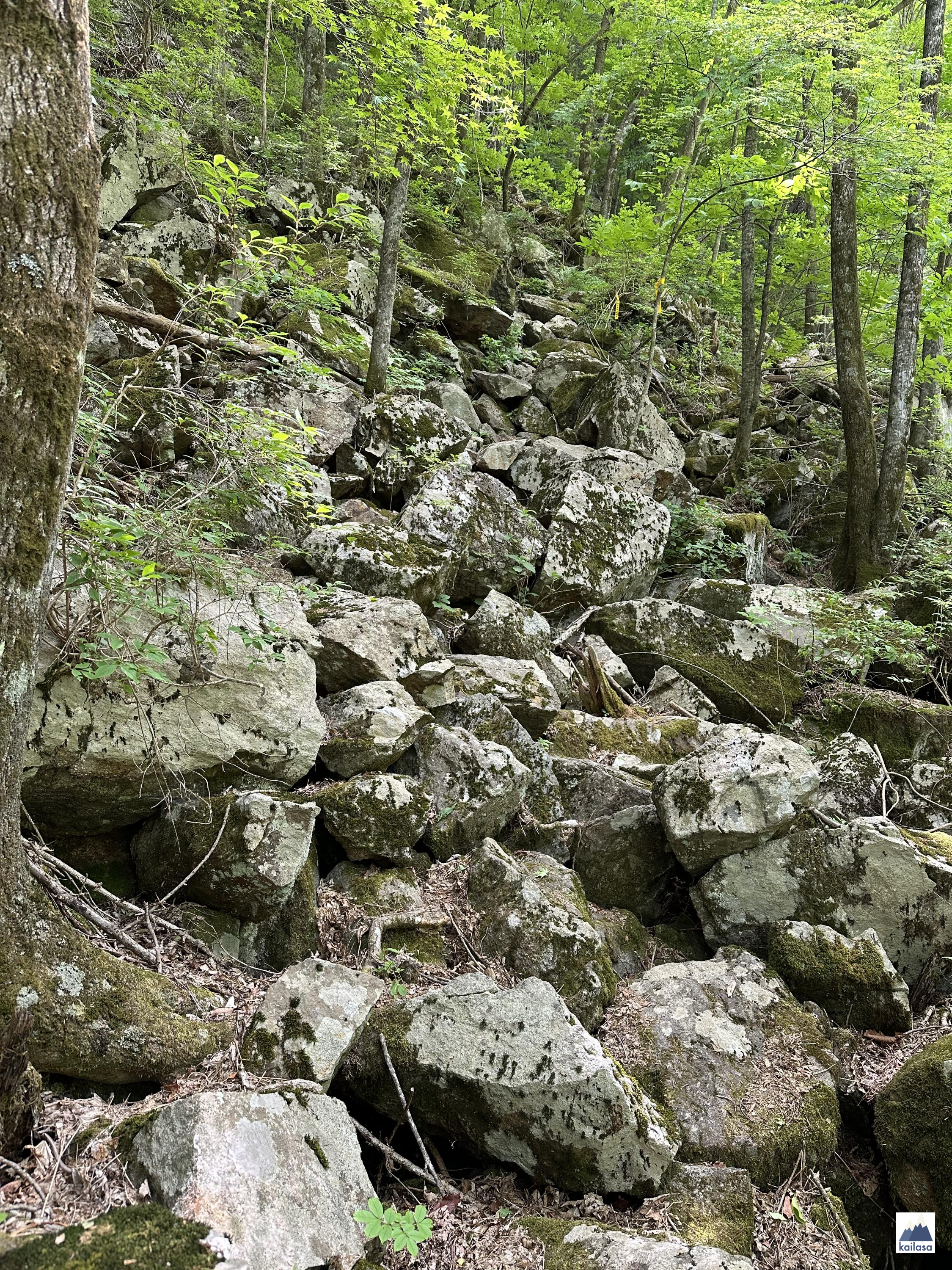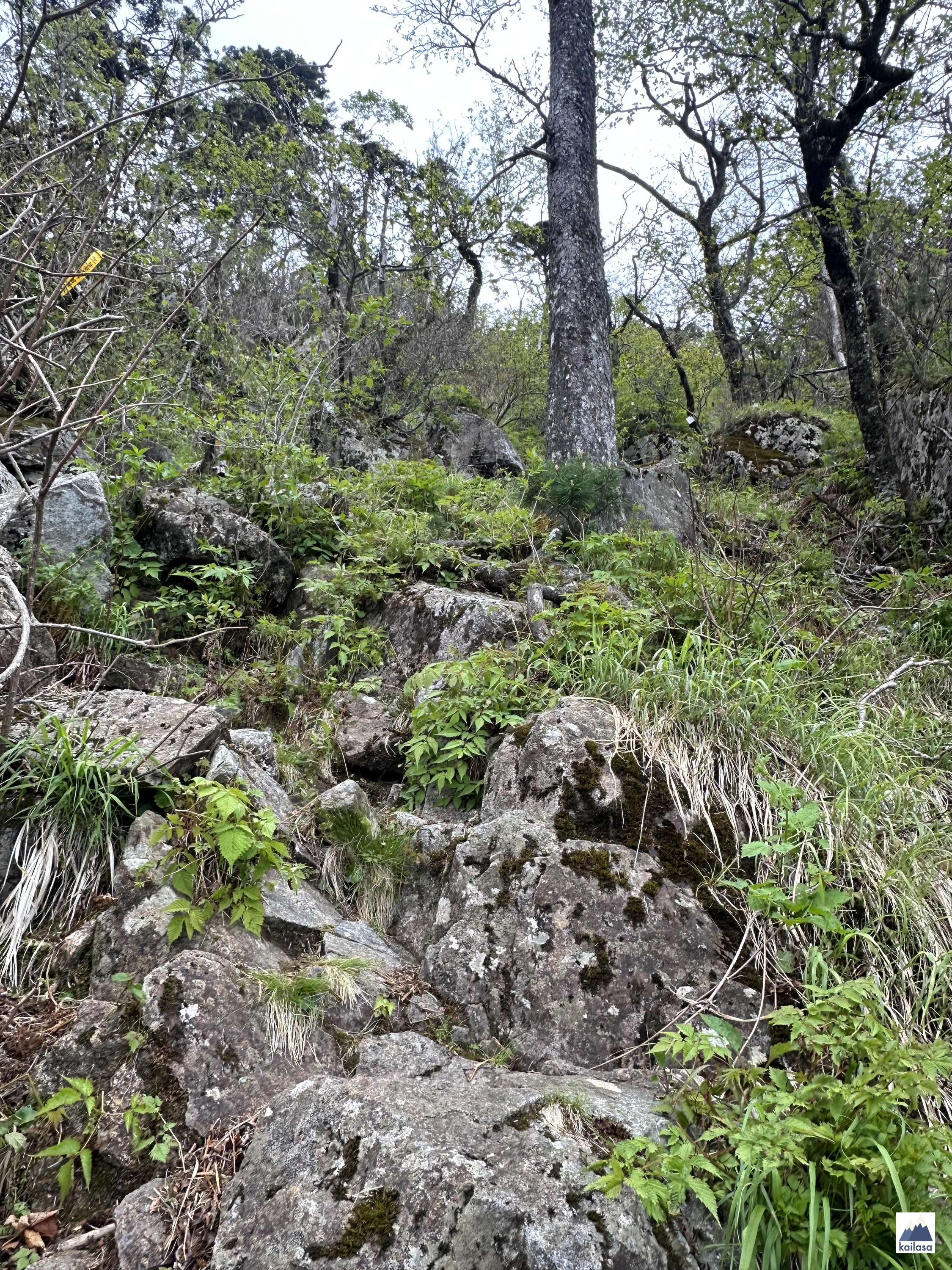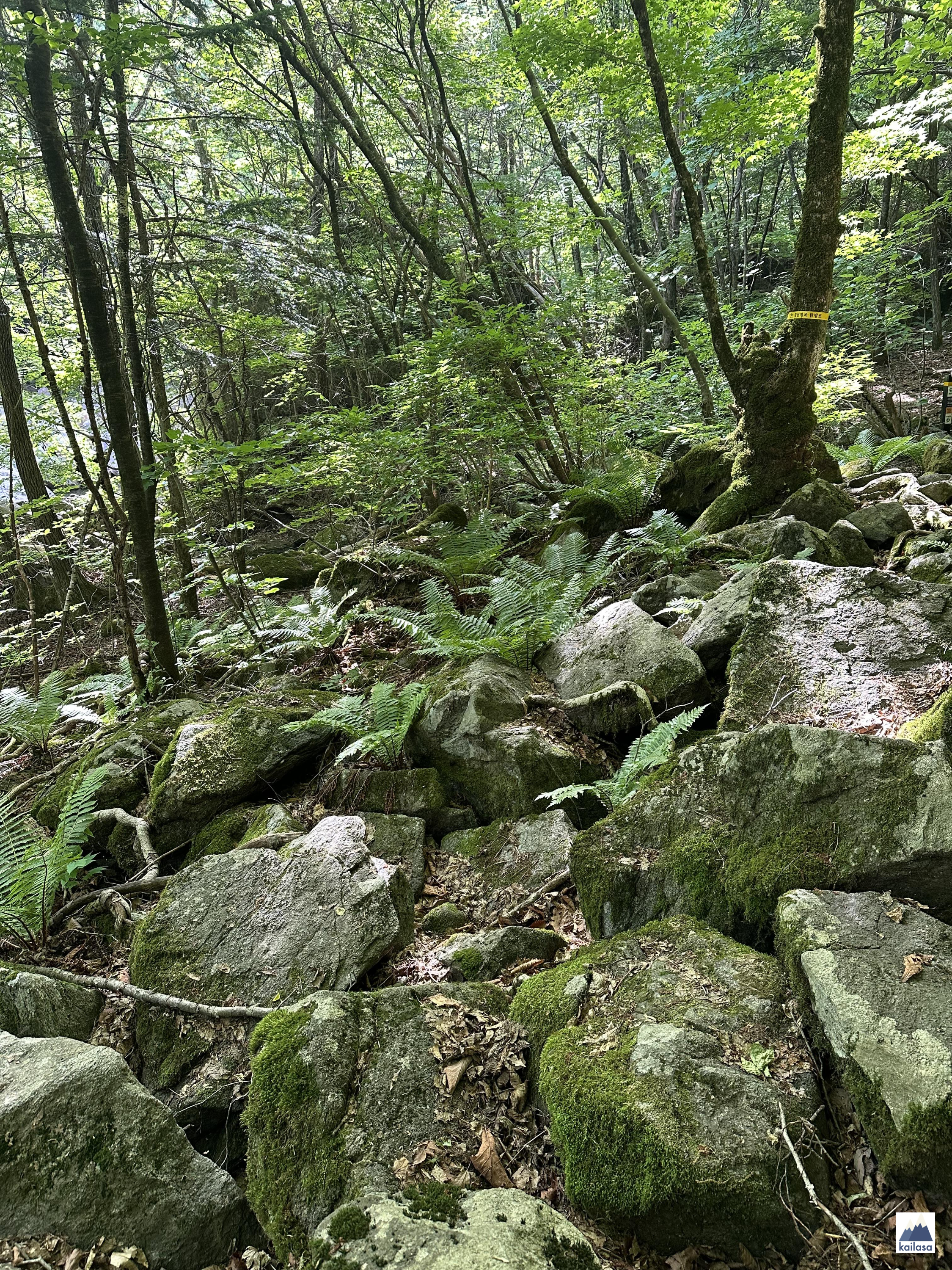 노란 띠로 탐방로 표시가 잘 되어 있다. 그냥 돌탱이들로 보이지만 탐방로임. 만약에 저 노란 띠들 없었으면 어디가 탐방로인지 몰라서 길 헤맬 뻔한 구간이 많이 있었다. 아무튼, 노란 띠만 잘 따라가면 길 잃을 염려는 없다.