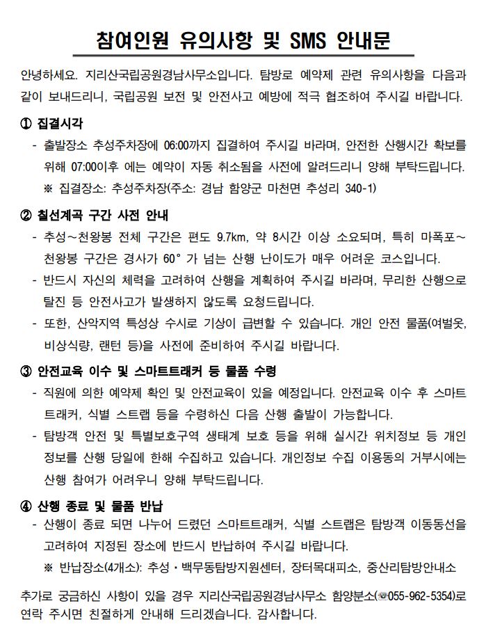 탐방 예약을 하면 날짜가 임박했을 때 국립공원공단으로부터 안내 문자가 온다.