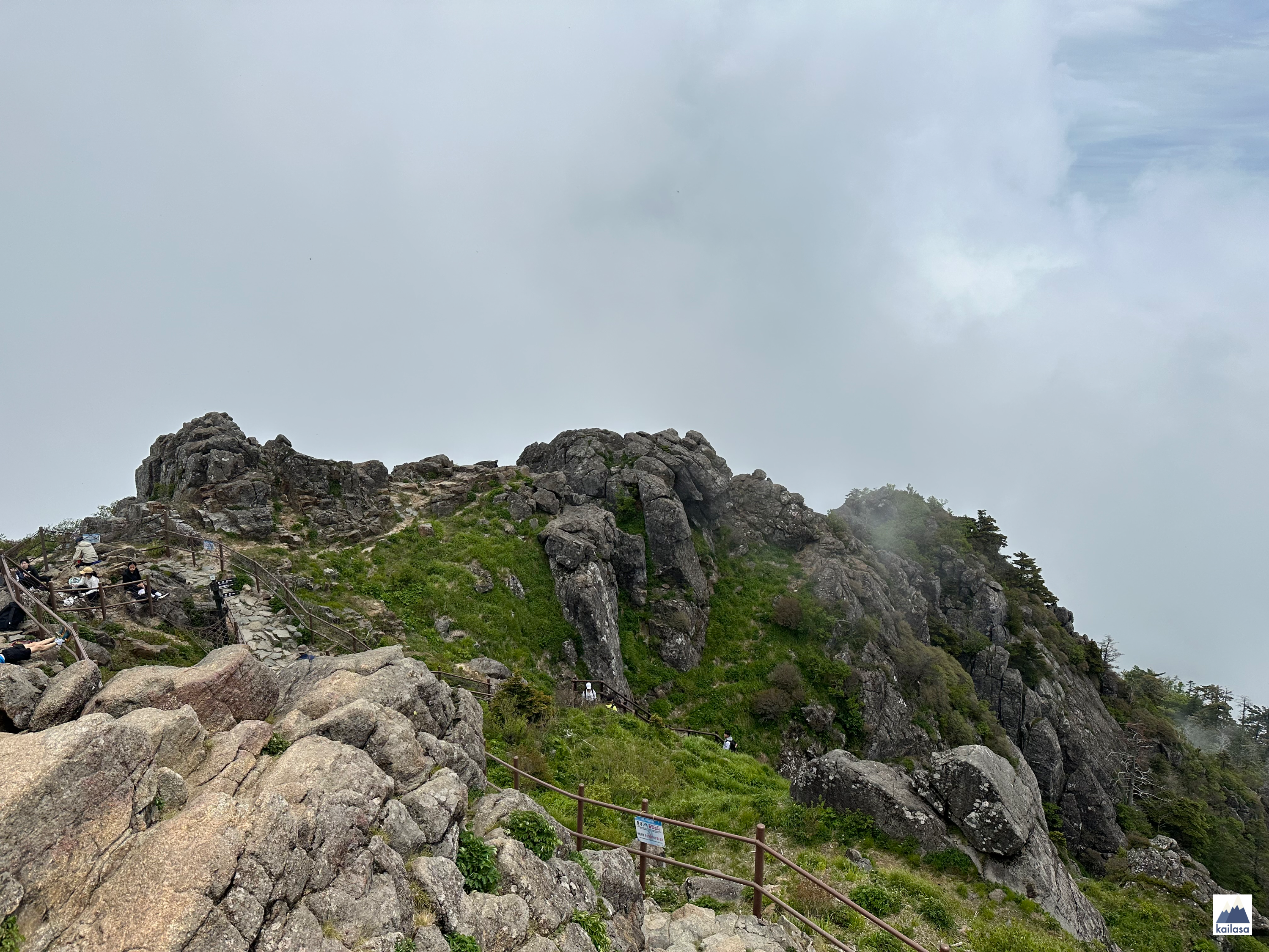 천왕봉 : ) 바람이 어마어마하게 부는 천왕봉에서 잠시 쉬면서 과일 먹고, 신발끈도 고쳐 메고, 줄 서서 인증샷 찍는 사람들도 구경하고...