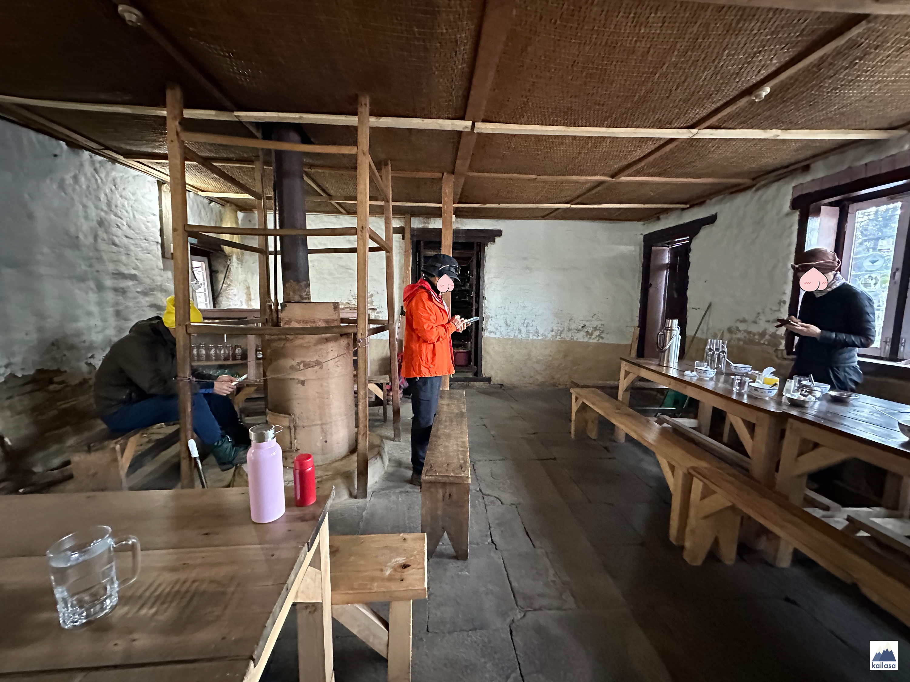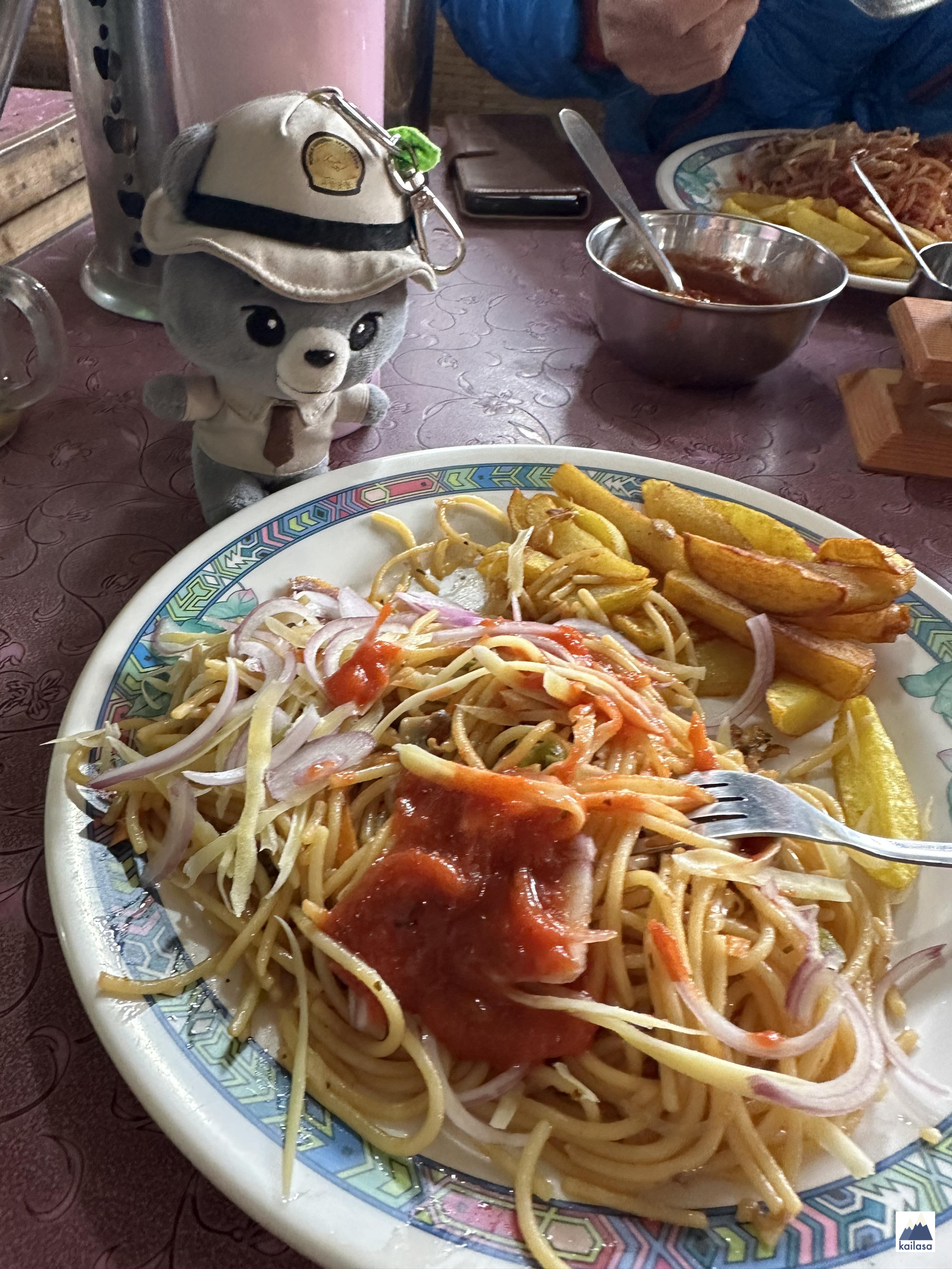 가지고 간 진한 생강차에 꿀 타서 한 잔씩 마시고 점심으로는 파스타와 감자 튀김을 먹었다. 커피 마시며 쉬고 있는데 다른 트레커들도 많이 오기 시작했다.