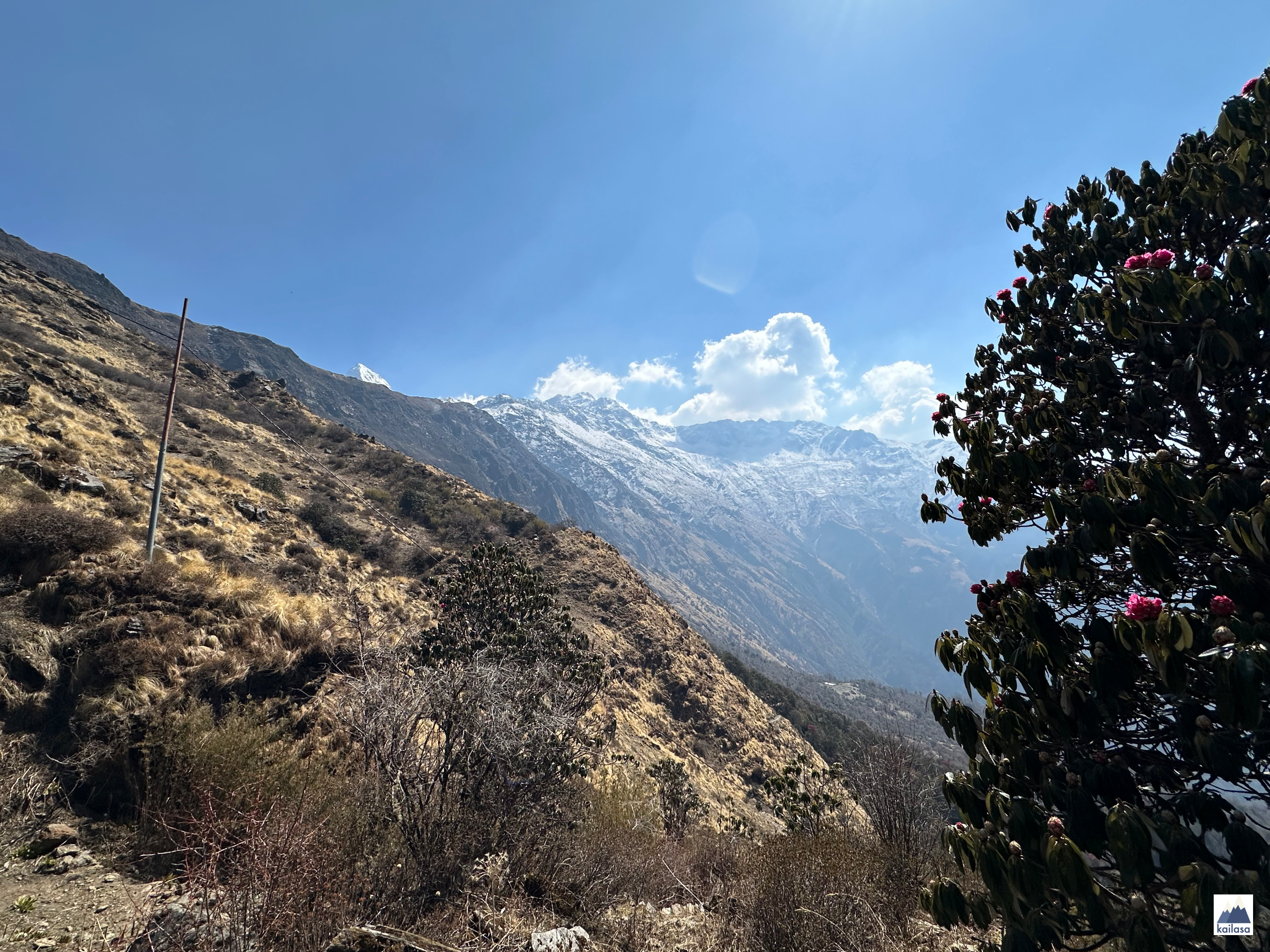 설산은 내일 아침에나 볼 수 있을 줄 알았는데 롯지에 도착하니까 선명한 설산이 반긴다. 눈 앞에 장대한 설산이 펼쳐져있는데 너무나 아름답다.