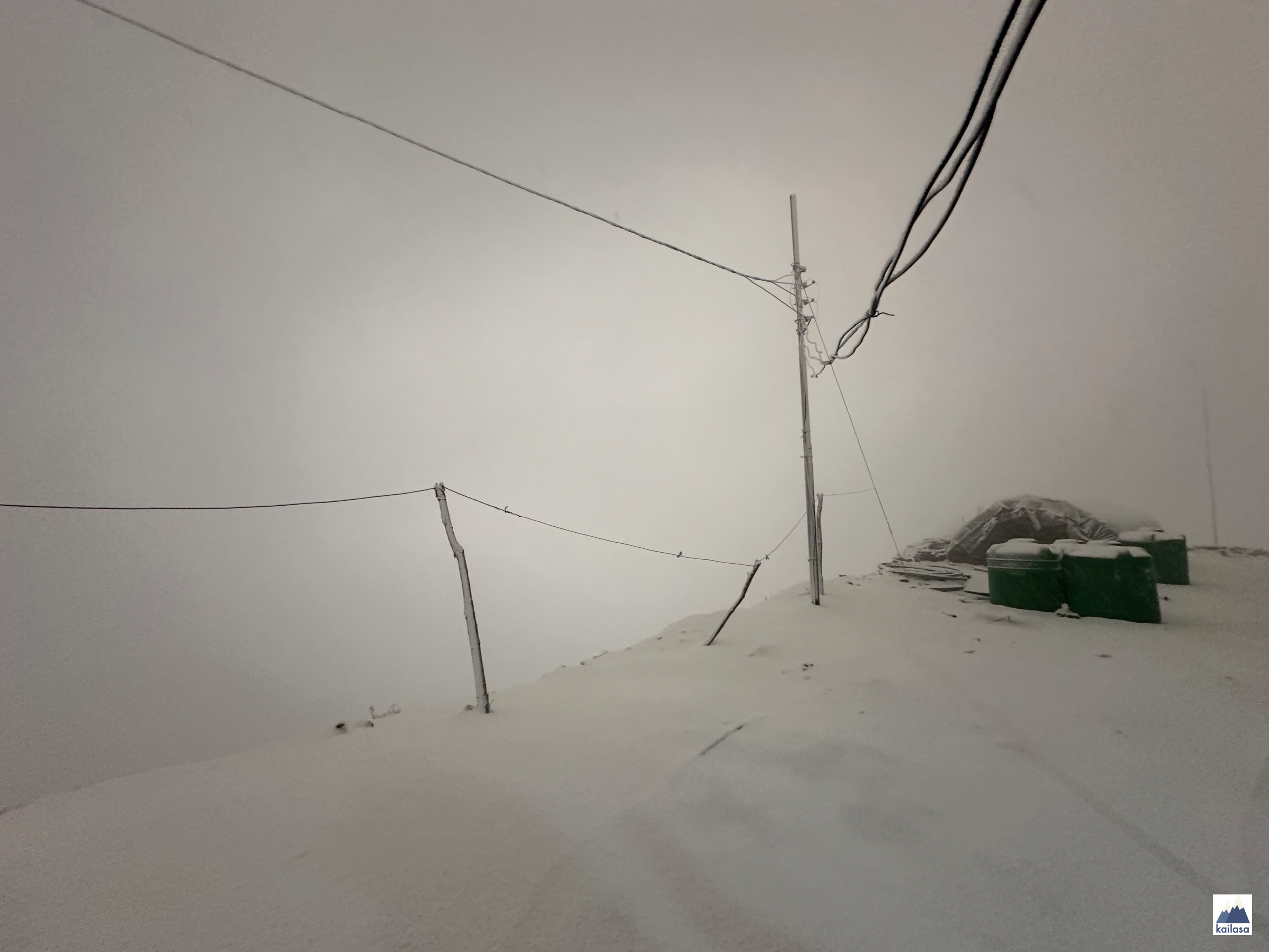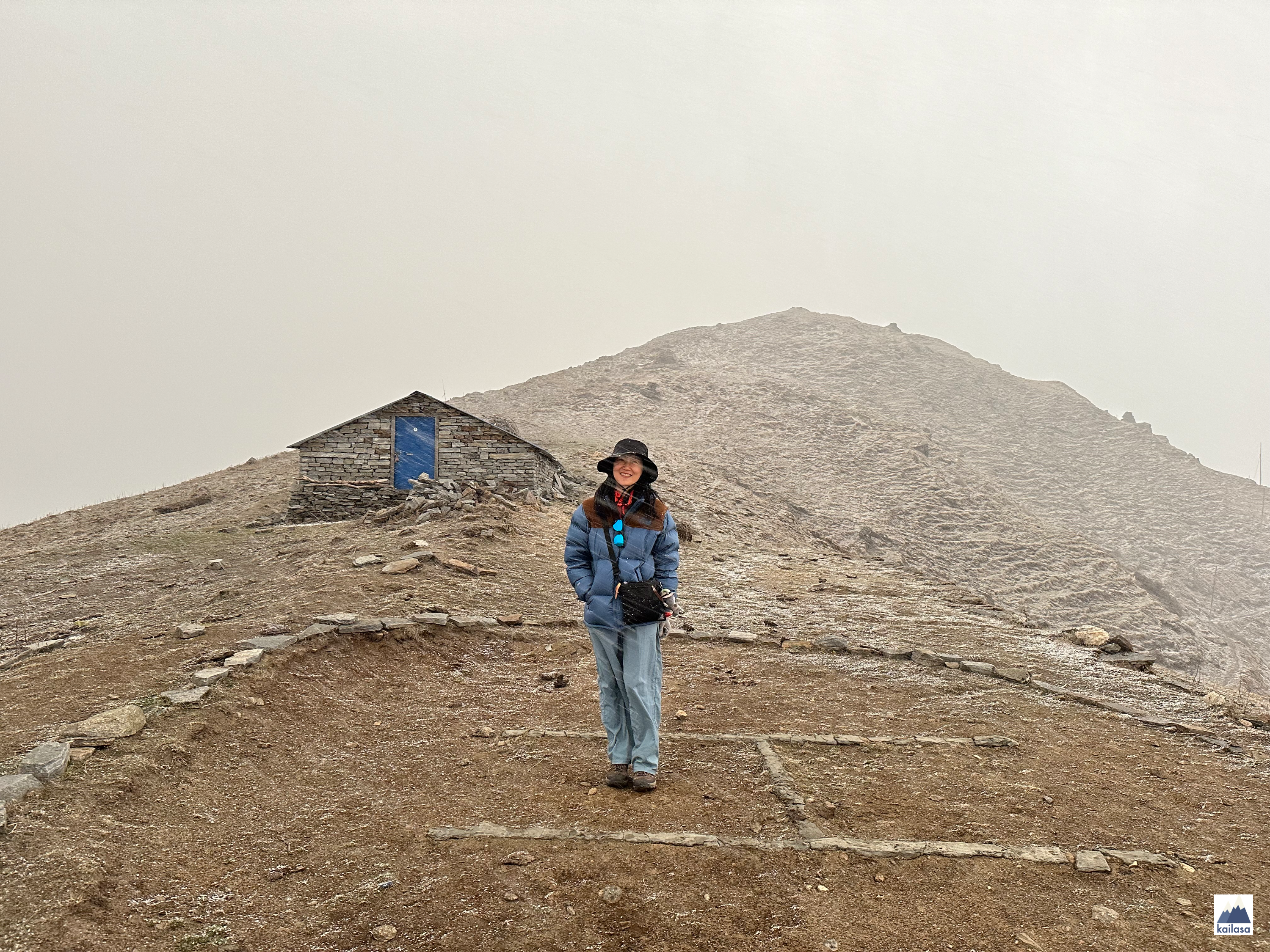 눈발이 날리기 시작하더니 점점 어두워지고 우박이 내렸다. 후두두둑 우박 맞는 소리가 재미있기도 했지만 롯지에 있는 일행이 걱정할 수도 있고 날씨가 점점 궂어져서 걸음을 빨리해서 내려갔다.