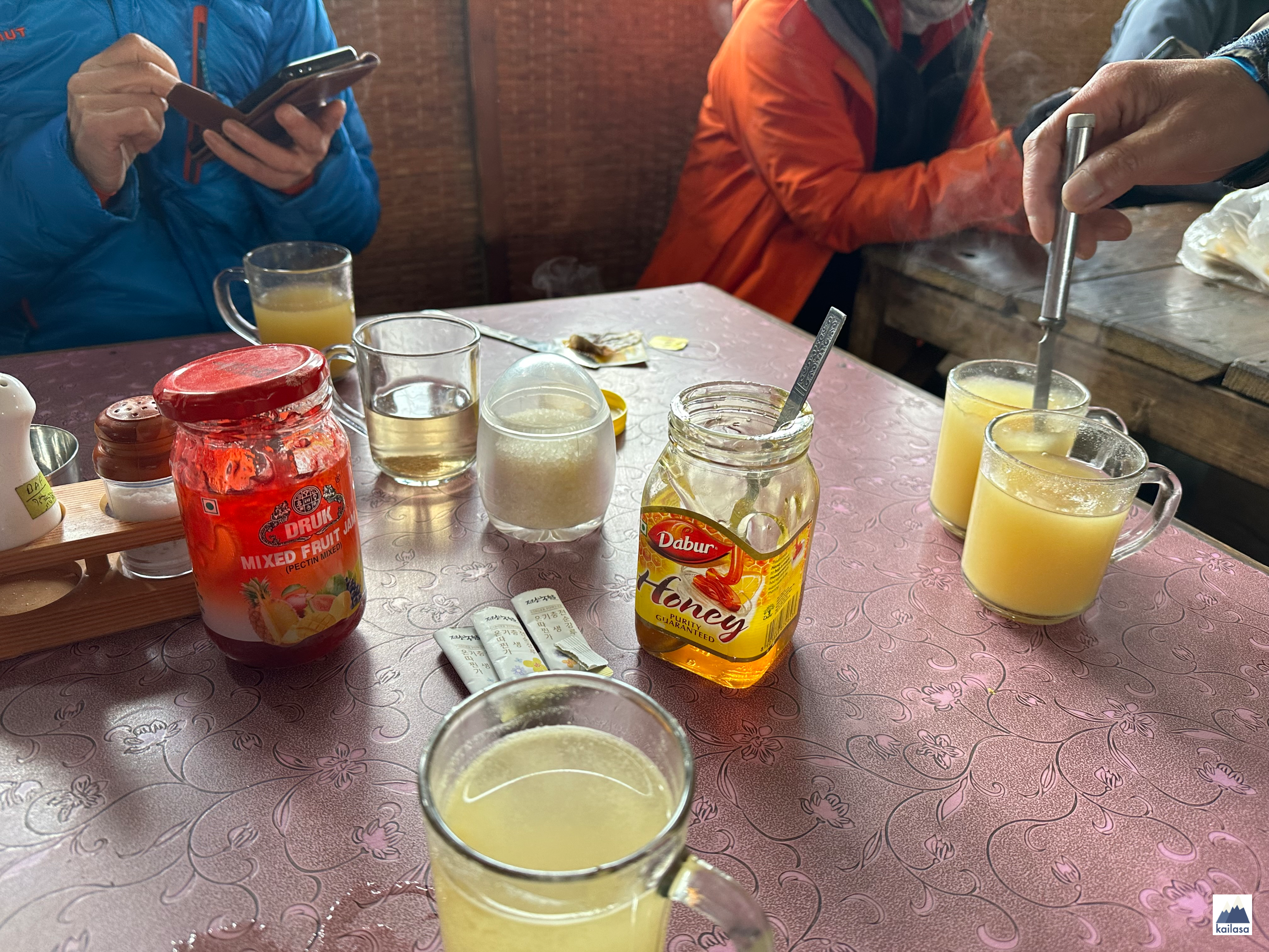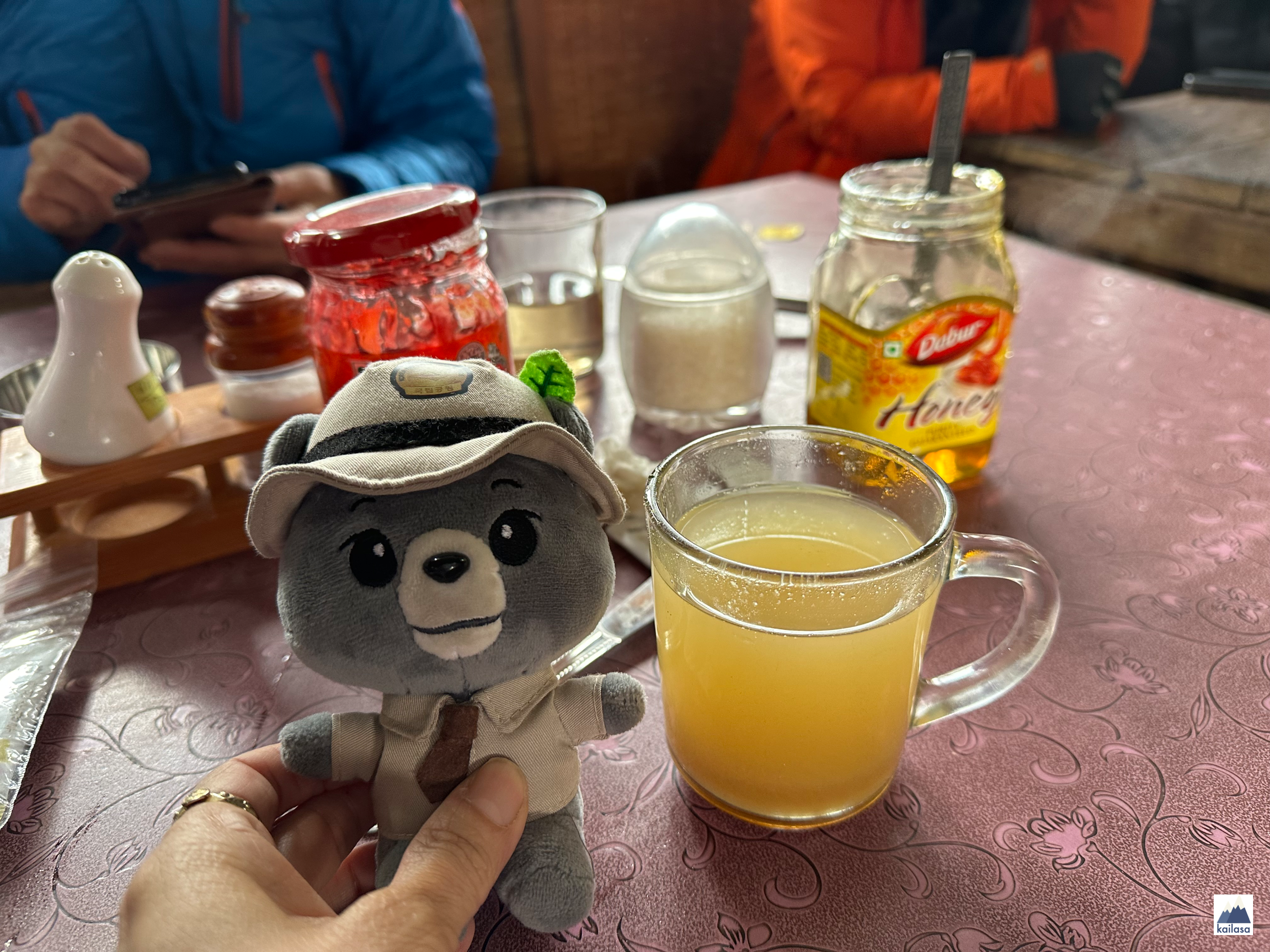 롯지 방 안에 들어가 옷 갈아입고 정리하는 갤루 다이가 레몬티를 가져다주셨다. 롯지에 도착하자마자 갈아입을 수 있도록 꺼낼 짐을 같이 모아놓았는데도 아직도 짐 꺼내서 옷 갈아입고 정리하는데 시간이 꽤 걸린다.