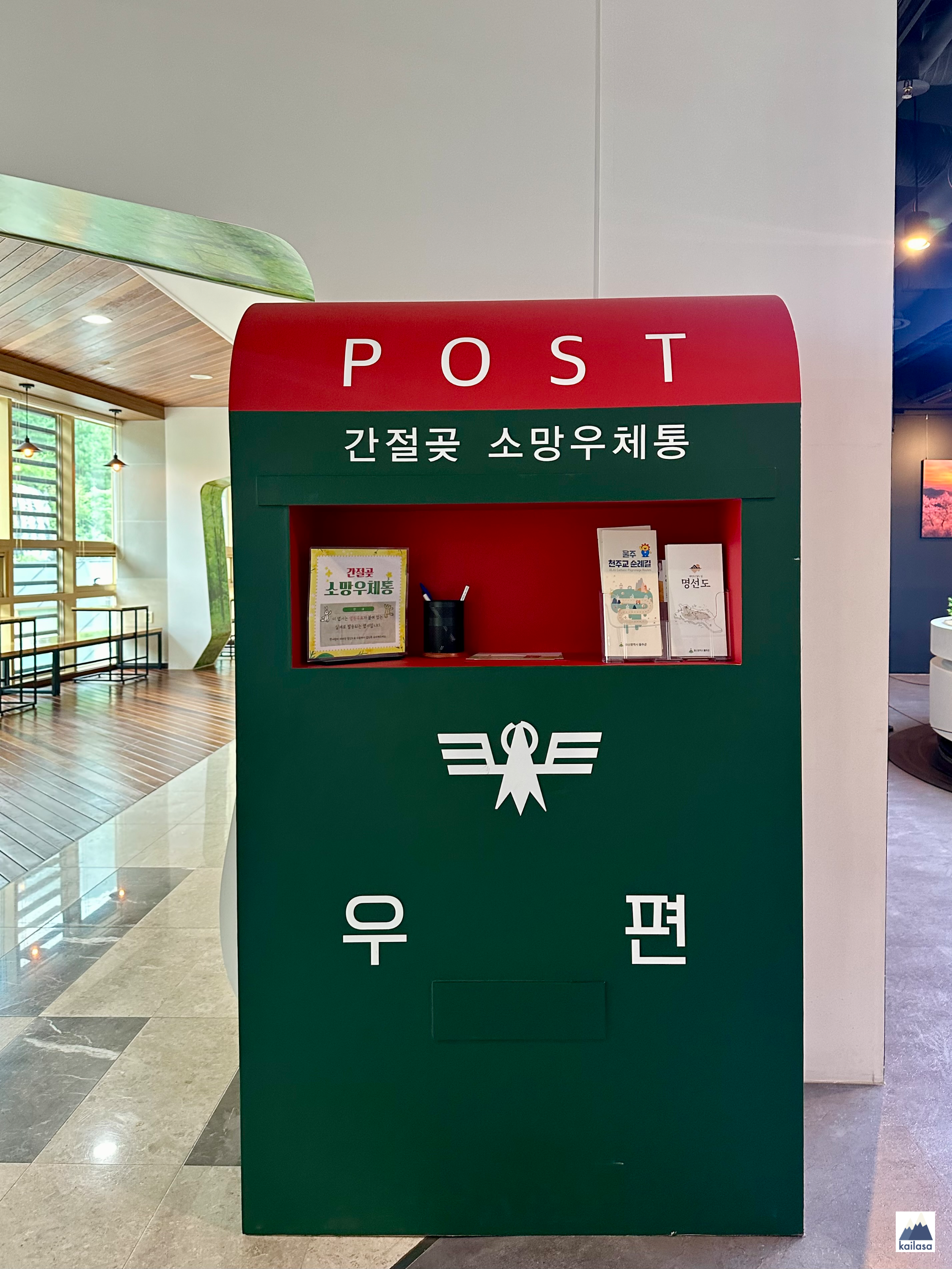 그리고 소망 우체통! 타 지역에서 느린 우체통 많이 봤는데 엽서 한 장 꺼내서 나한테 썼다. 영남알프스에서 쓴 엽서는 한 달도 안되어 배달됐다. 여기는 느린 우체통이 아니었나 보다 :)