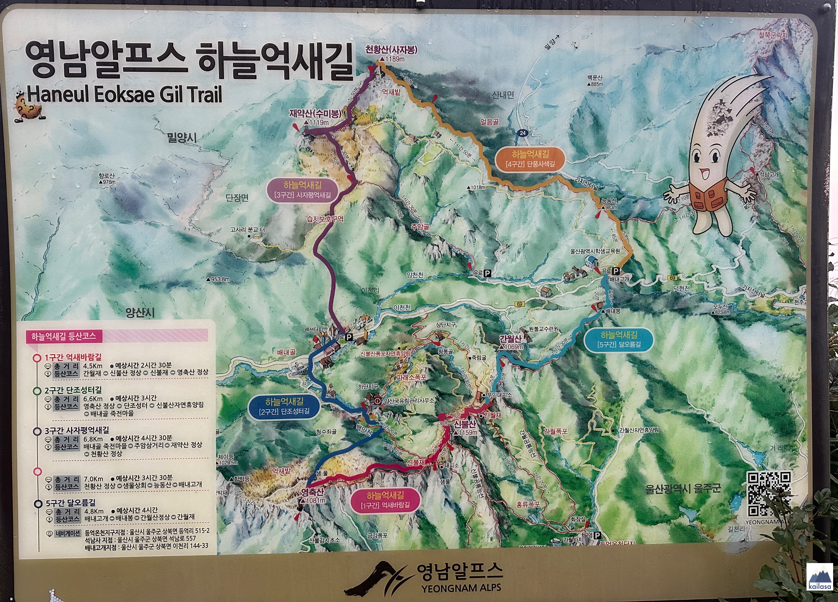 네팔에서 돌아오자마자 산이 그리워서 뛰쳐나갔다. 예전부터 가고 한 번 가보고 싶었던 영남 알프스(영축산 - 신불산 - 간월산) 코스이다. 6월 말에도 가려고 알레 버스를 신청했는데 비가 와서 취소되고 이제야 가게 됐다.