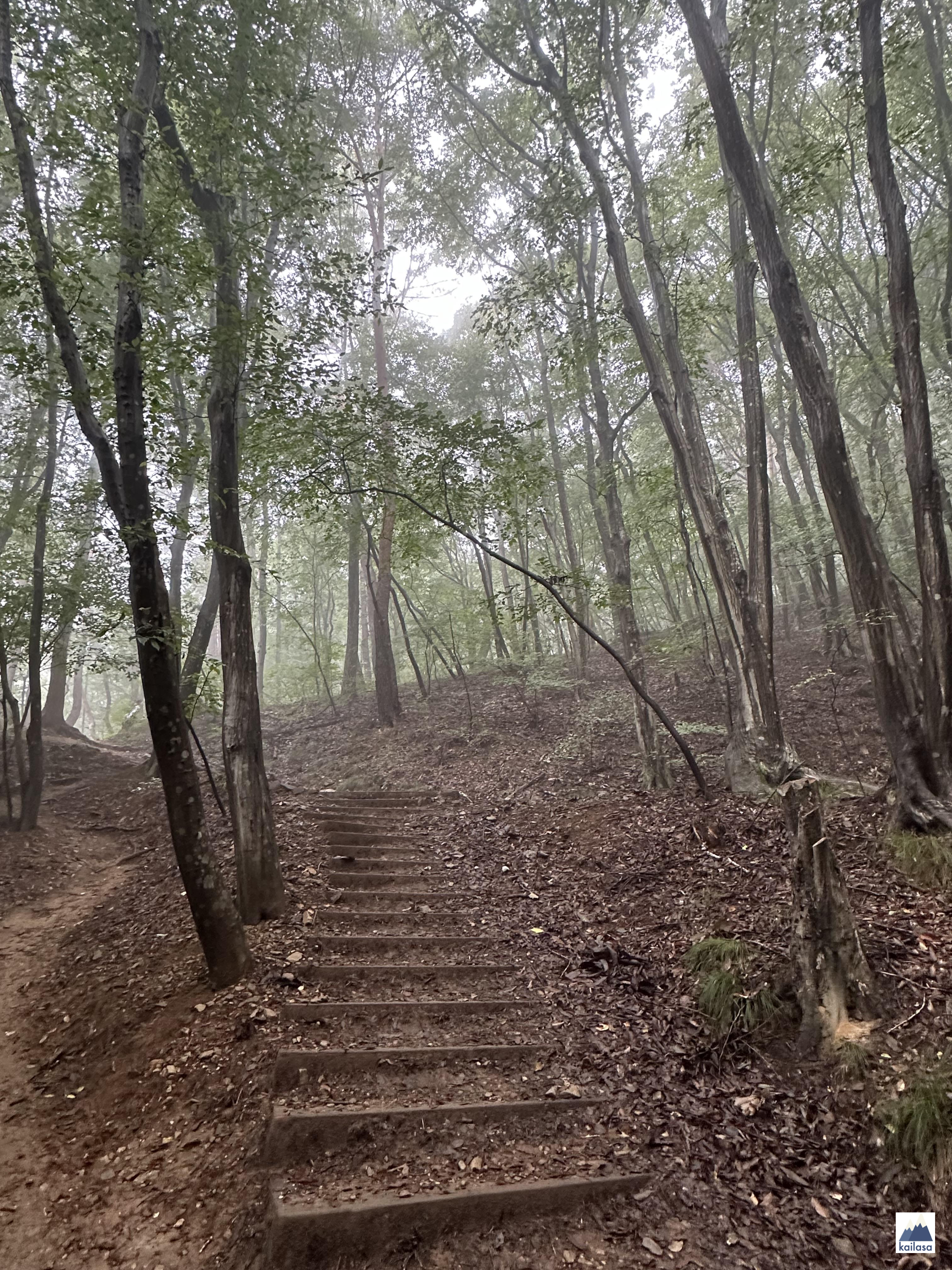 임도가 지나고 숲길로 들어서니 좀 걸을만하다 :) 반대편에서 올라가는 분들이 판타지 영화같다고 신나하면서 오르는 모습을 봤다.