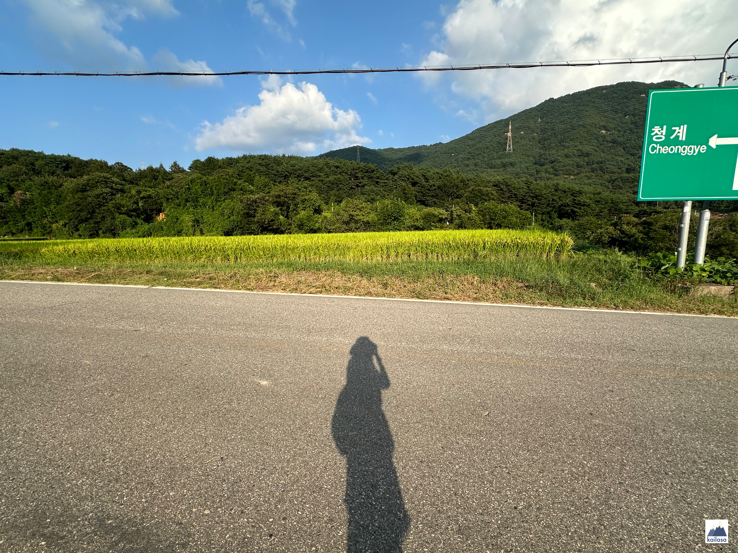 막판에는 너무 힘들어서 길바닥에 주저앉았다. 그렇게 또 한참을 걸어내려가다 드디어 마을이 나왔다. 이제 운리 마을이다. 지난 번에 운리에서 덕산까지 걸을 때 왔는데 이번에는 반대쪽에서 내려온 거다.