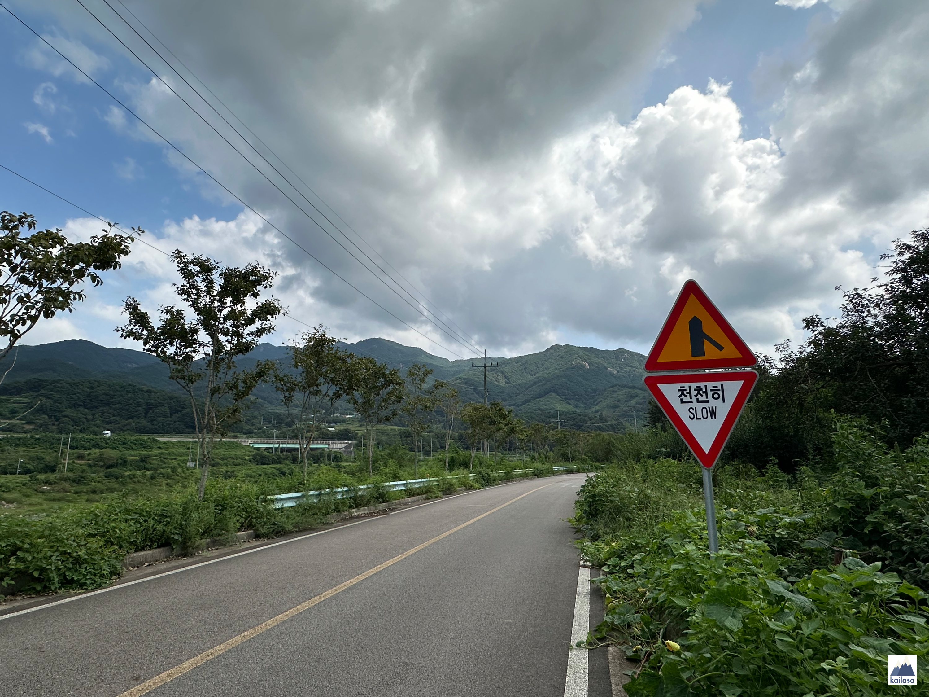 숲길을 지나니 큰길이 나왔다. 폭염주의보가 떨어진 날이 진짜 너무 더웠는데 저 멀리 커피숍이 보인다.