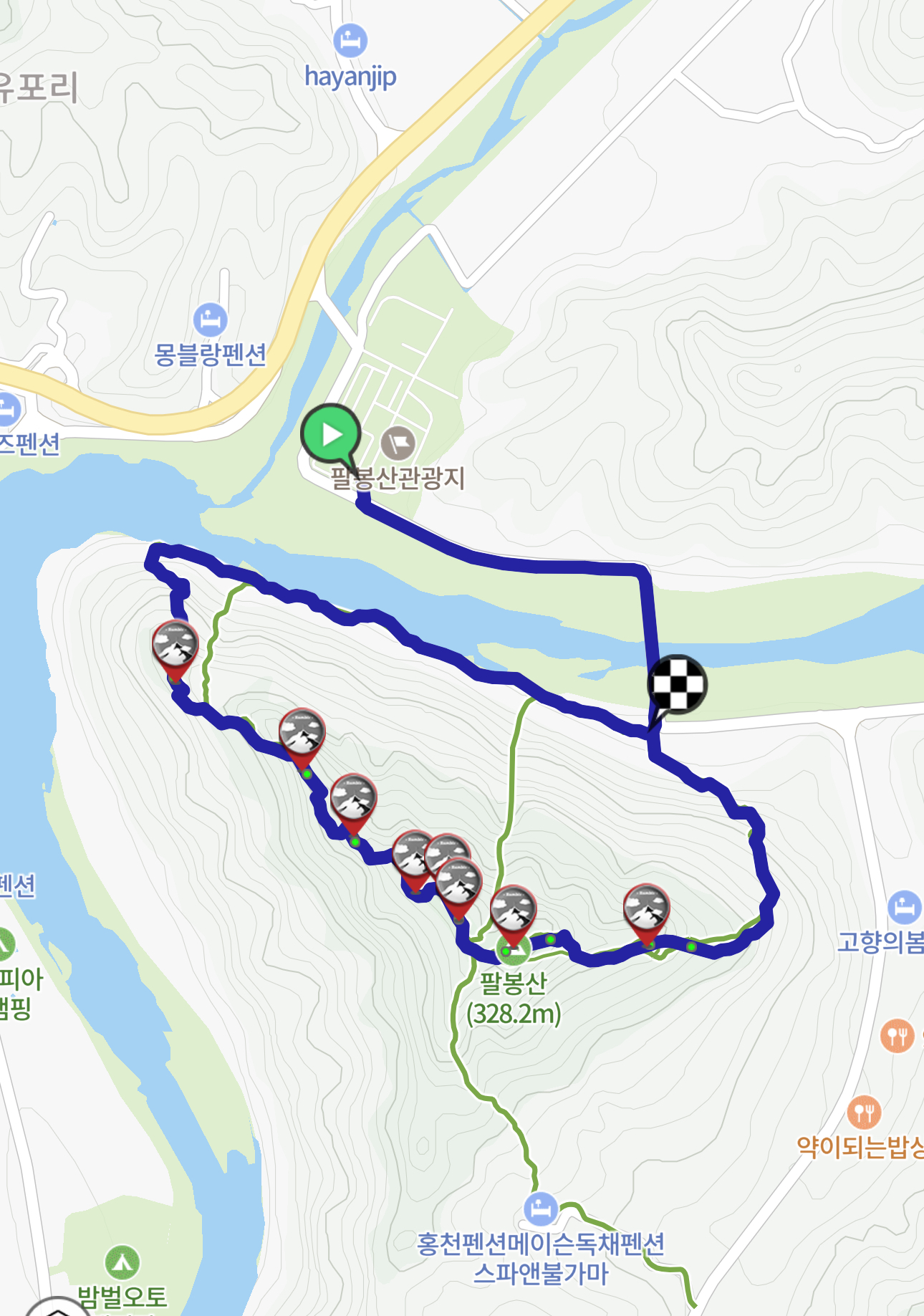 마지막 8봉에 가니까 날이 맑고 쾌청해졌다! 아침에 보슬비부터 안개, 구름, 파란 하늘까지 다채롭게 다 봤다. 여유롭게 쉬면서 탔는데도 왕복 3시간밖에 안 걸렸다. 그 와중에 바위도 타고 아기자기하게 즐길 수 있었던 팔봉산. (관악산 6봉의 이지이지이지 버전 같다 ㅎ)
