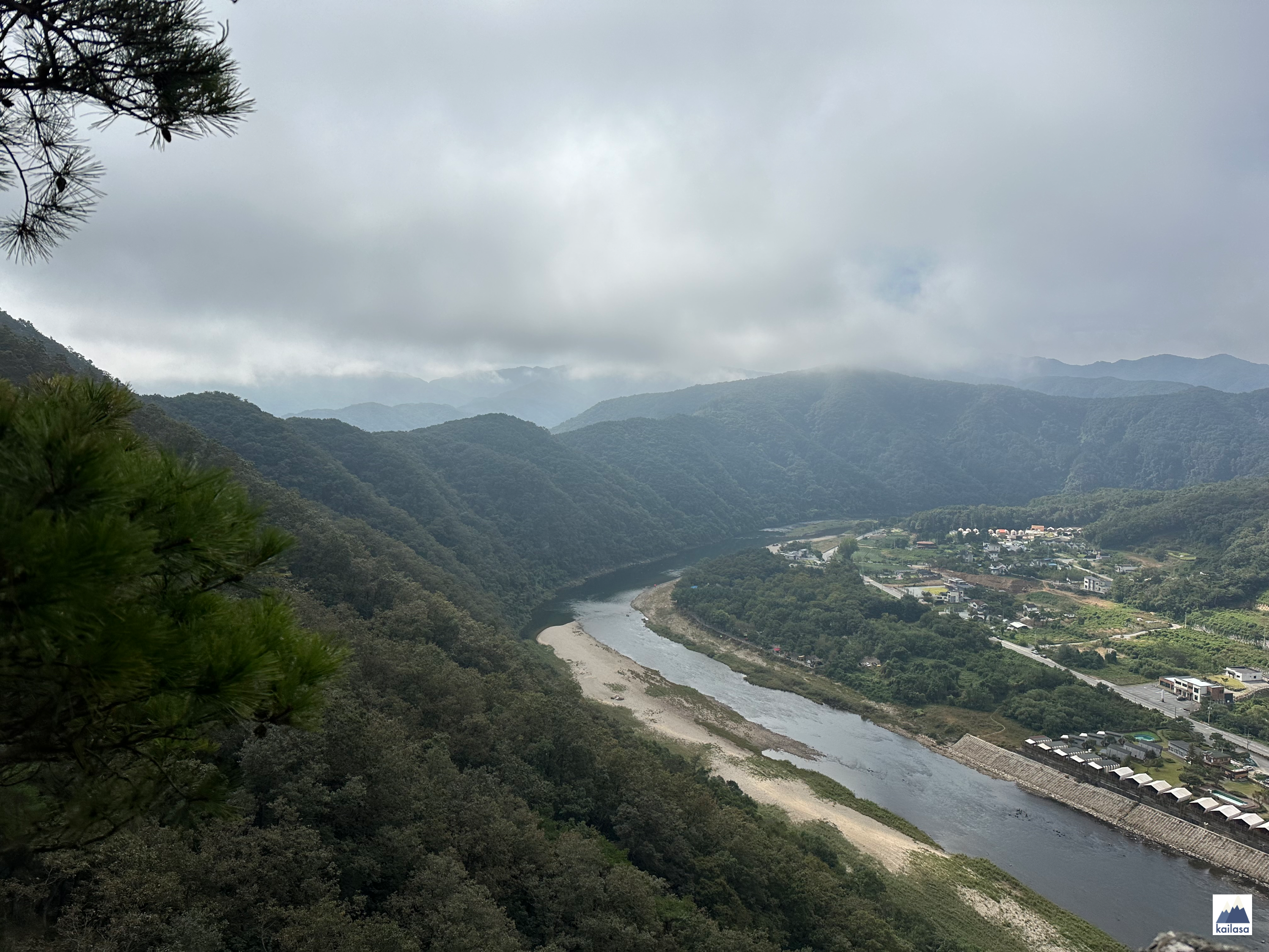 시간이 지나니 하늘이 텄다. 멀리 홍천강도 보이고 마을도 보인다!