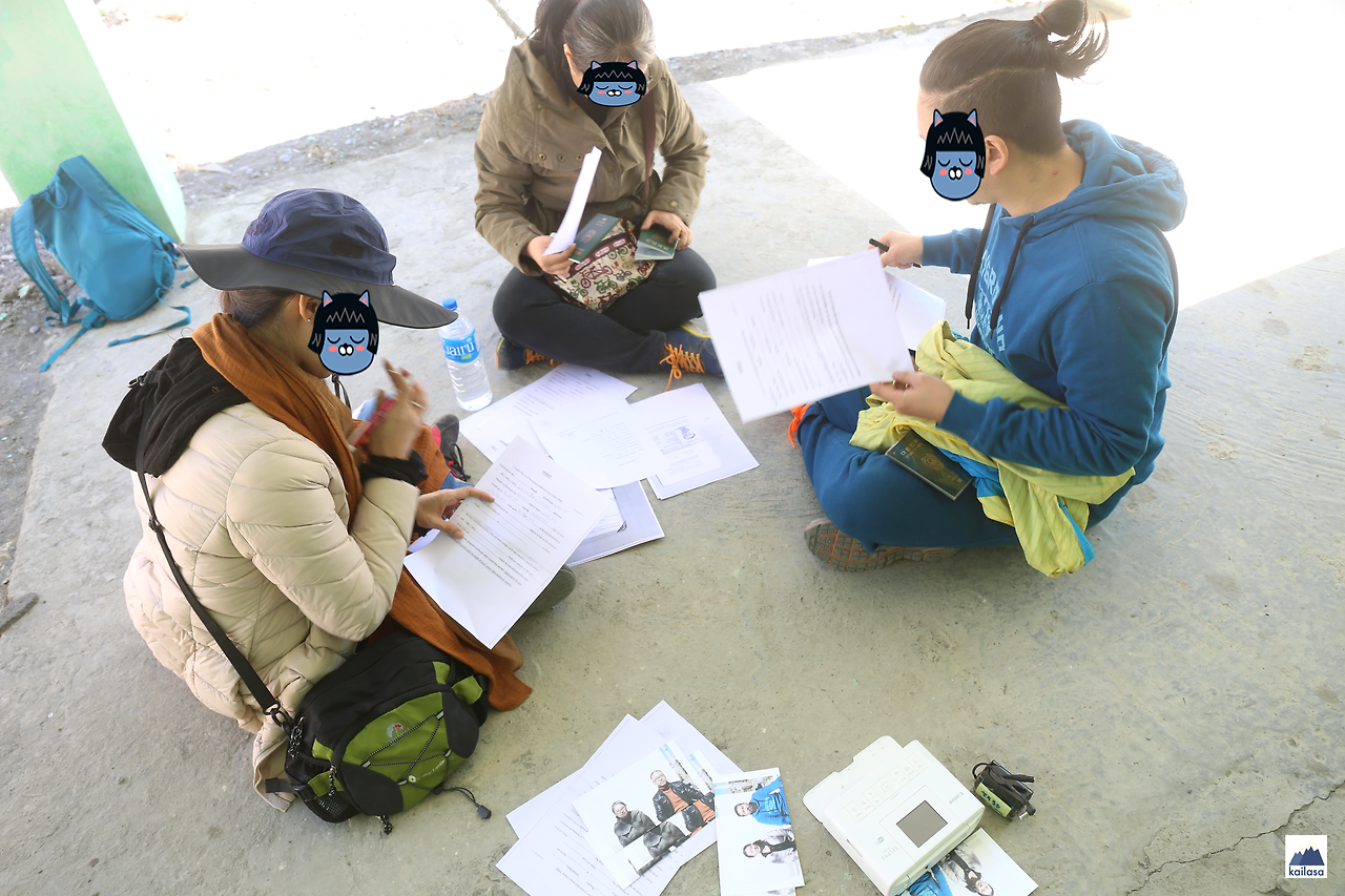여권 사진은 배경이 하얀 색이어야 하는데 마땅한 장소가 없었다. 그나마 가장 비슷한 분홍색 벽에서 노출 날리고 두 명씩 앉아서 사진 찍고 포토 프린터로 인화했다. 퍼밋 받는 건물 옆에 철푸덕 앉아서 퍼밋 신청서 열심히 작성하고 이제 신청하러 고!