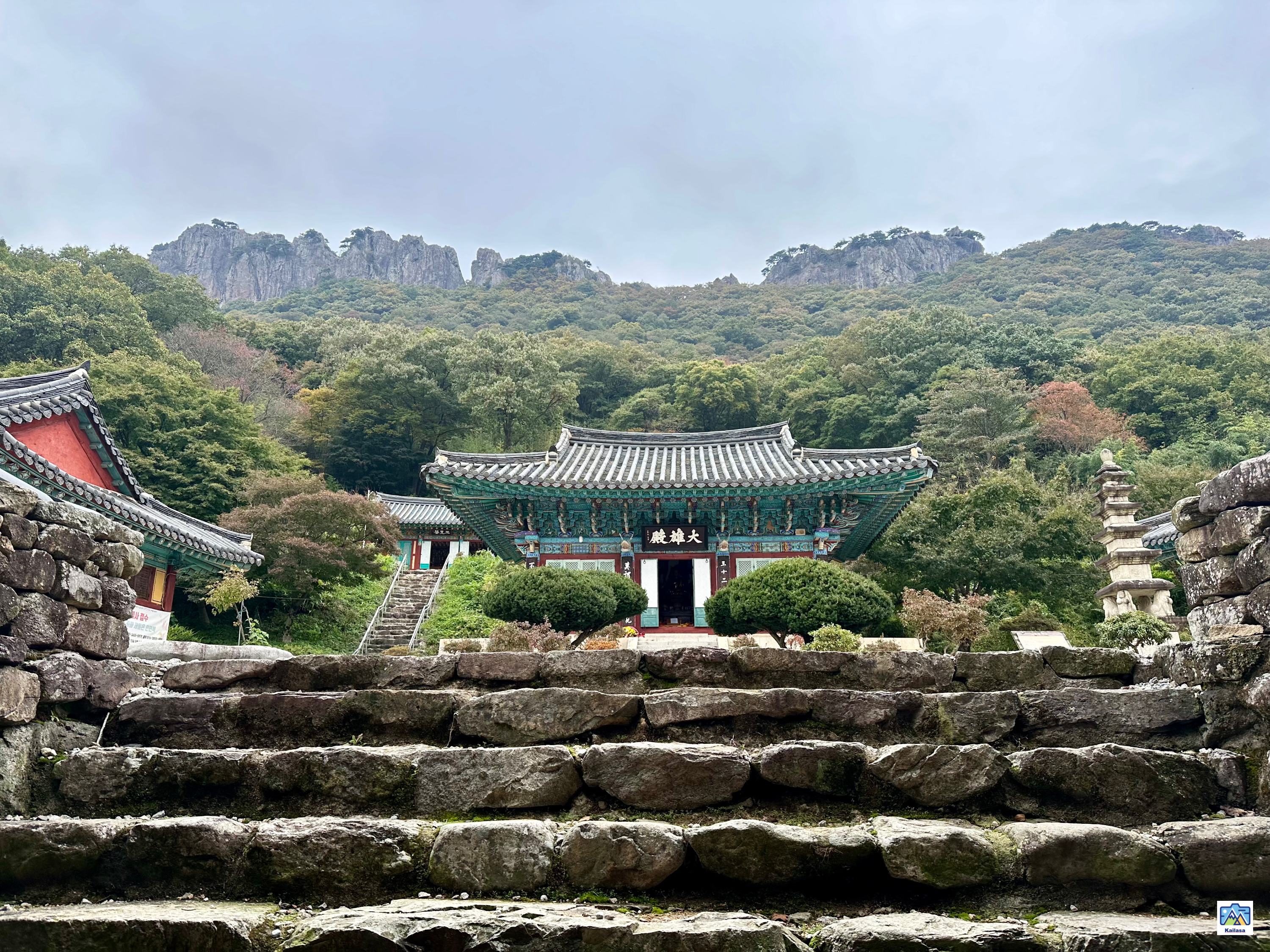 벽련암. 뒤편으로 병풍처럼 둘러 선 서래봉이 보인다.