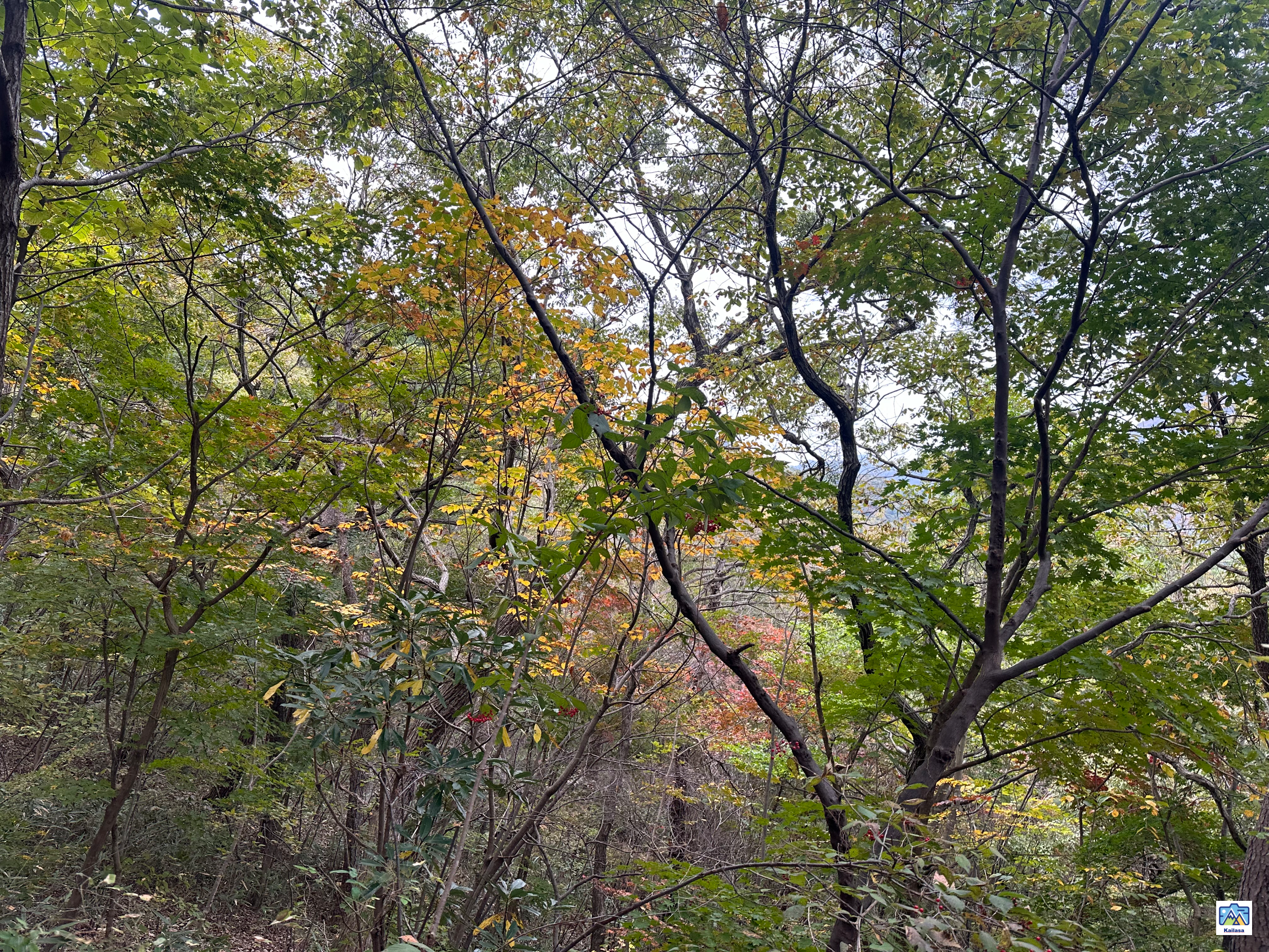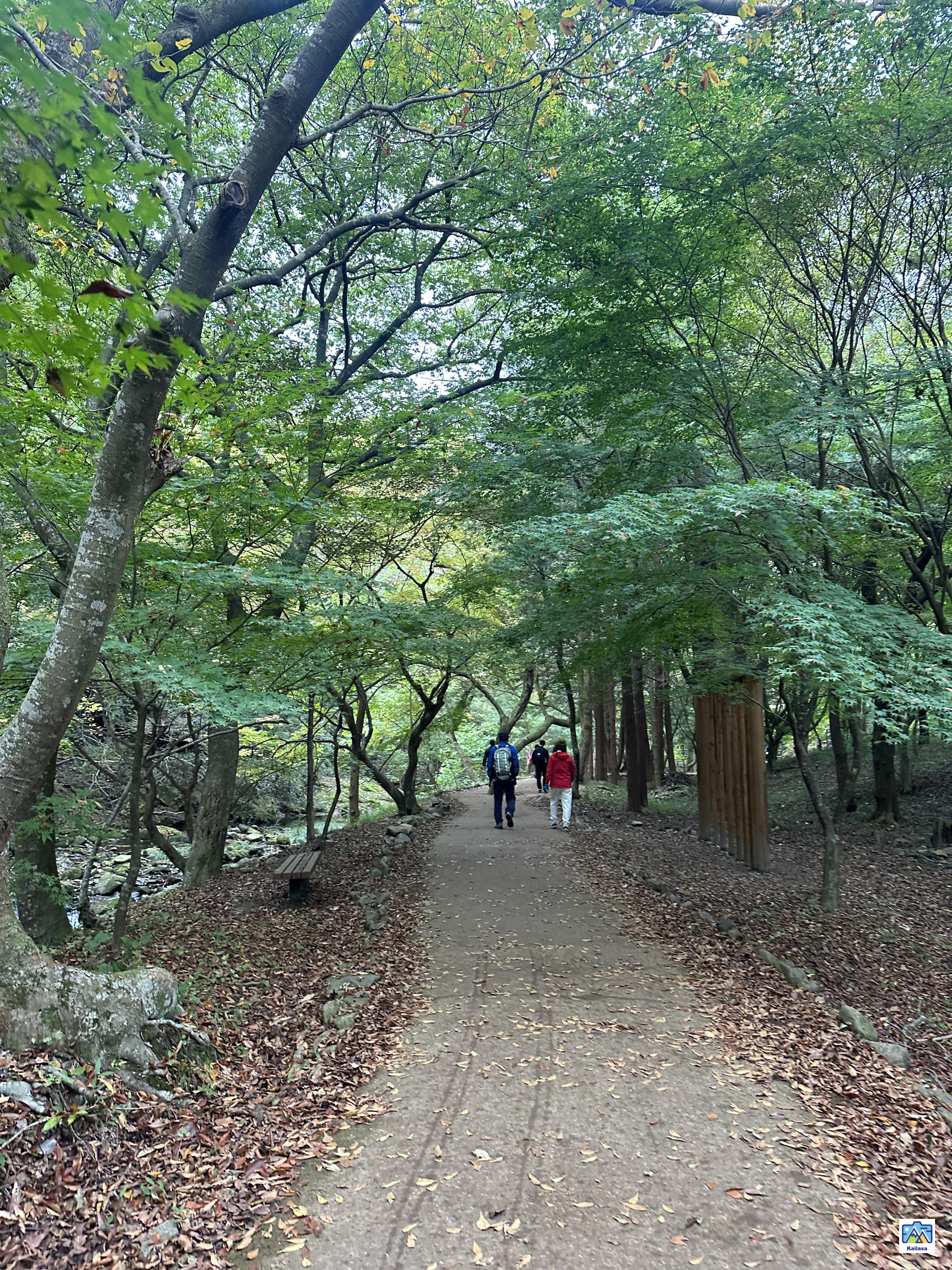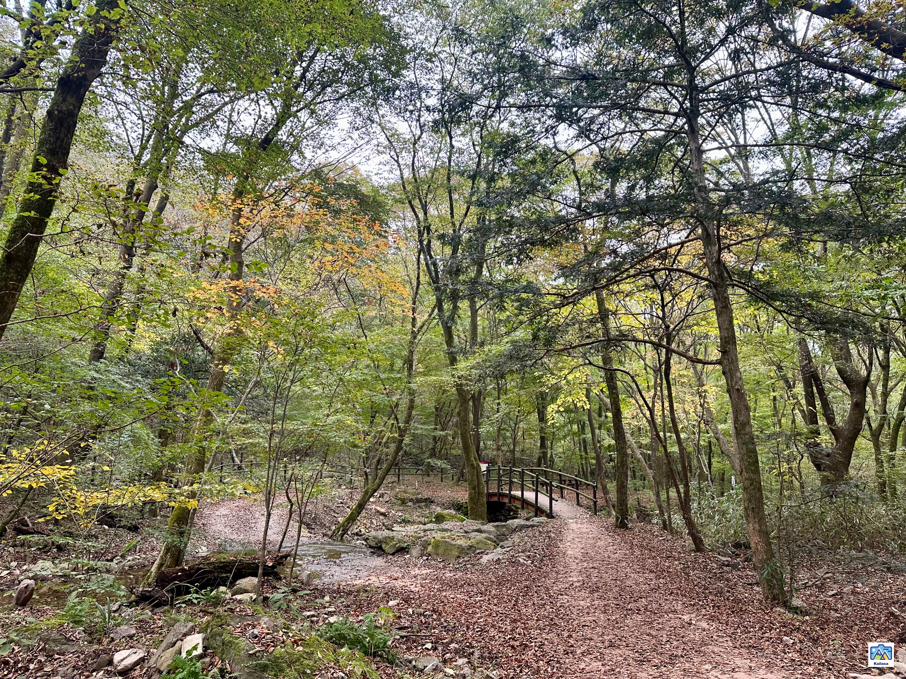 식당가, 단풍 터널, 내장사까지 사람들로 북적였던 것에 비해 막상 등산로에 들어오니 인적이 드물어 한적하고 좋았다. 사람 없는 조용한 숲길을 걸으니 마음이 차분해져서 기분 좋게 걷고 있는데 뭔가 이상했다. 알레 버스 이용자 가이드에 적혀있던 것과 다른 것 같아서 앱 켜고 확인해보니 길을 잘못 들었다. 내장사에서 오른편으로 가서 신선봉을 향해 갔어야 했는데 내장사 둘러보다가 신선봉에 올라가지 않는 다른 루트로 빠진 것이다.