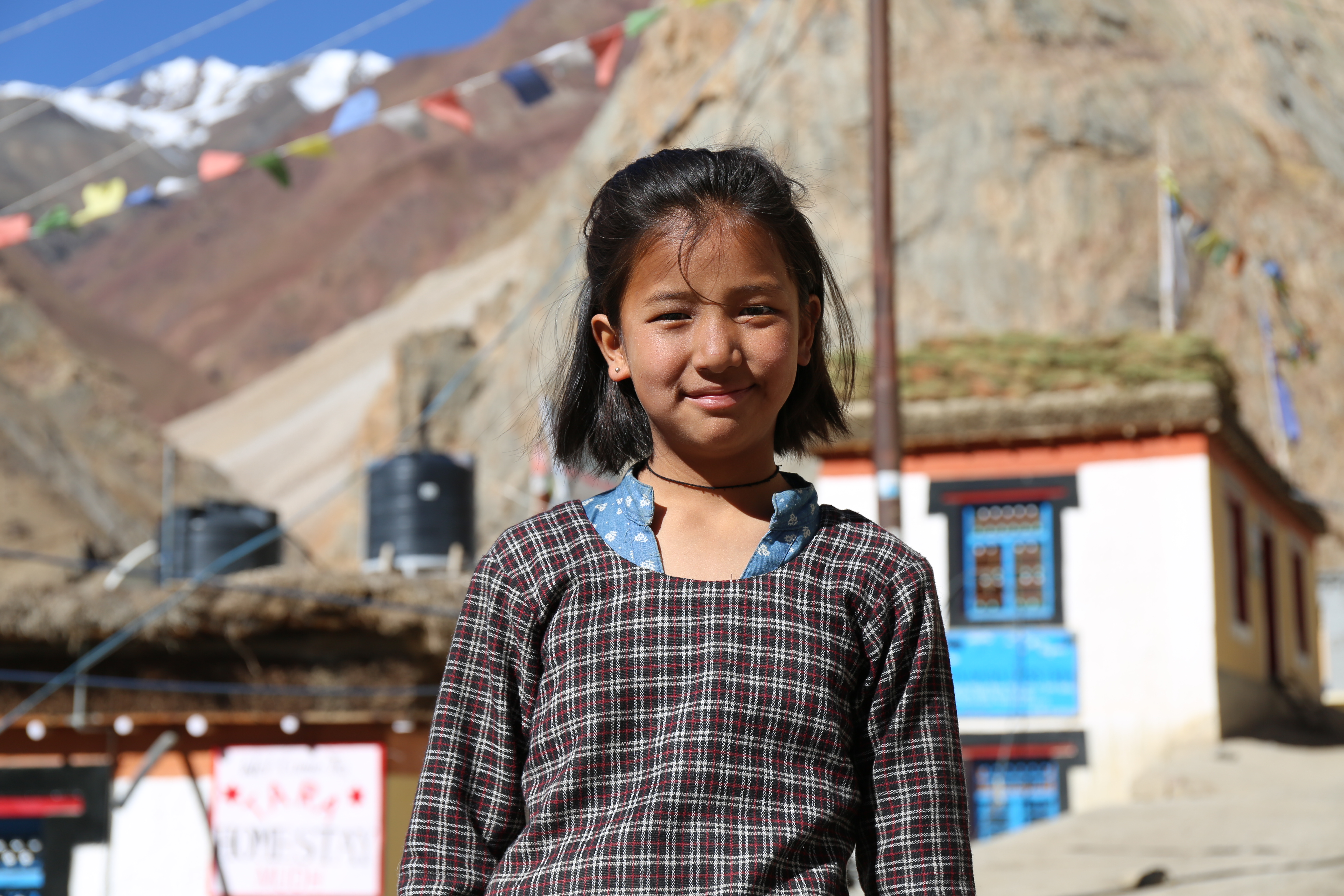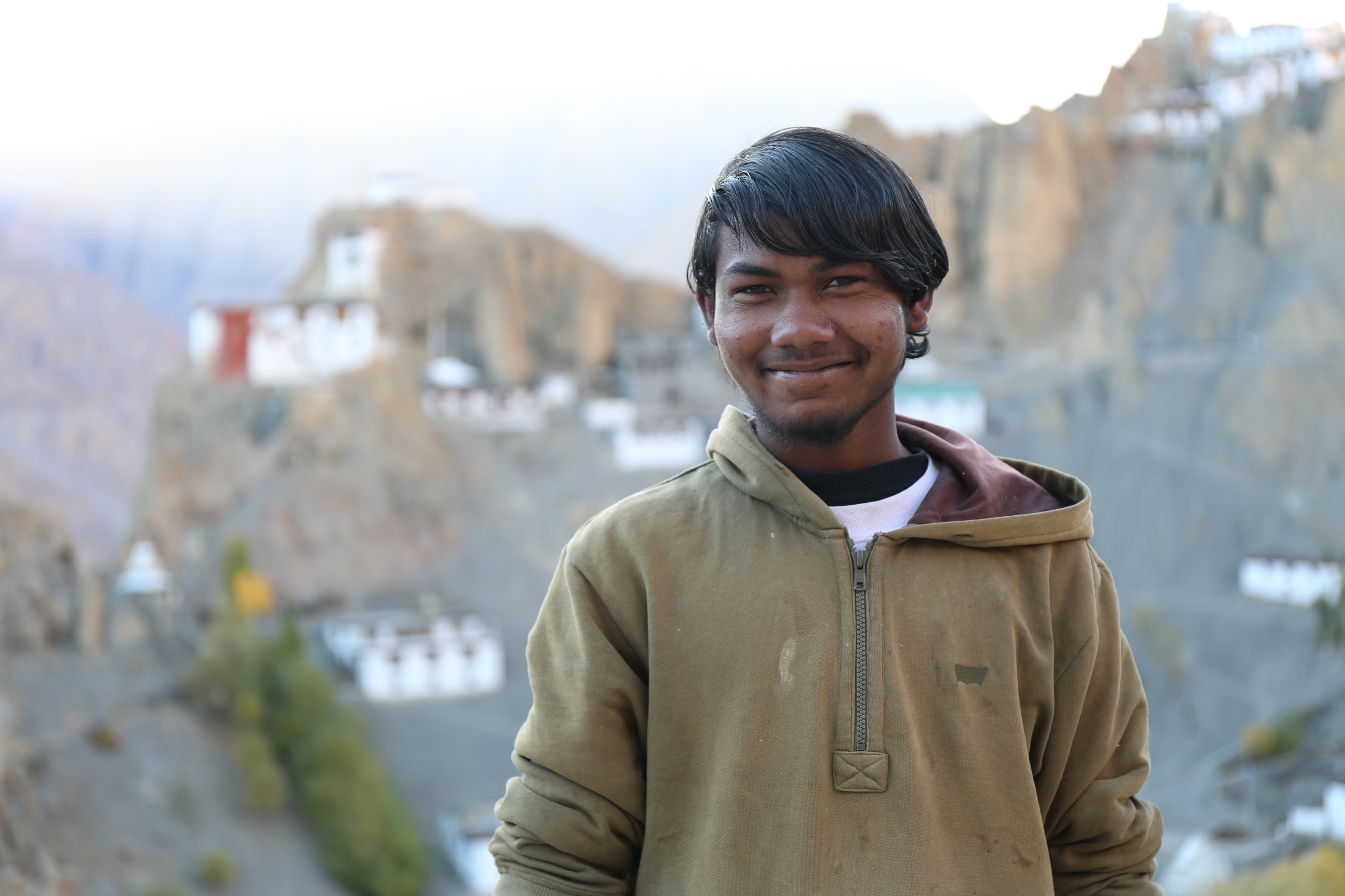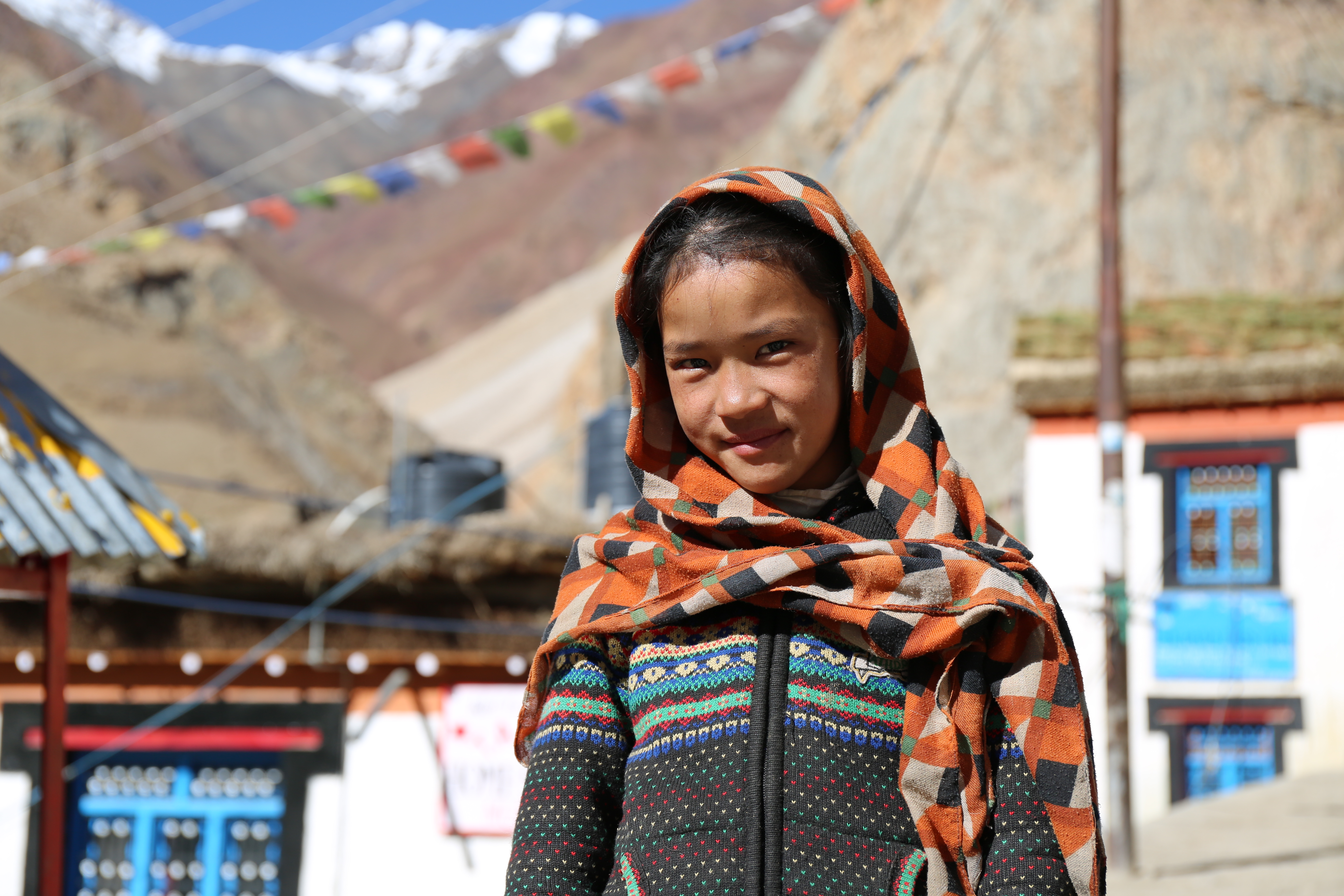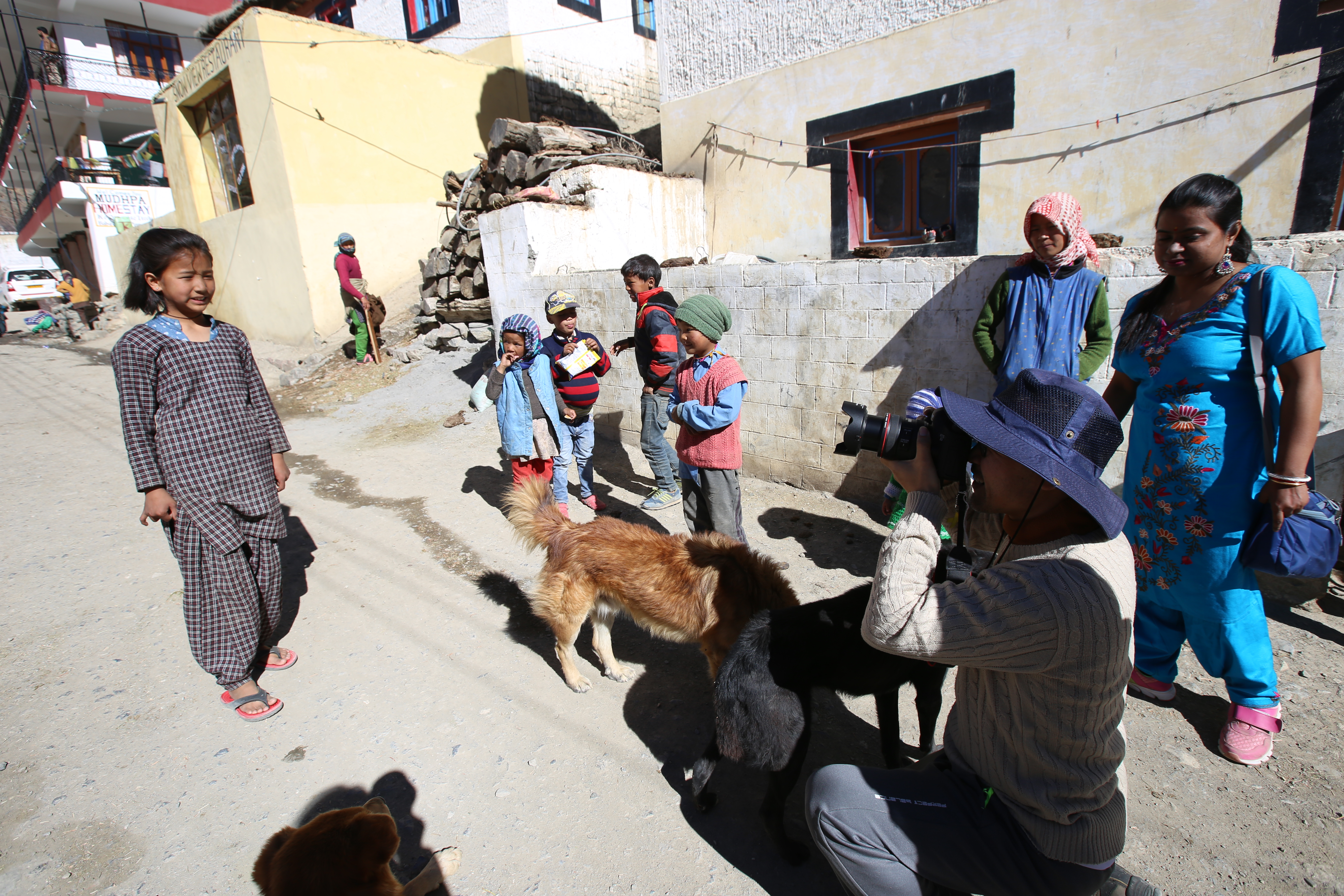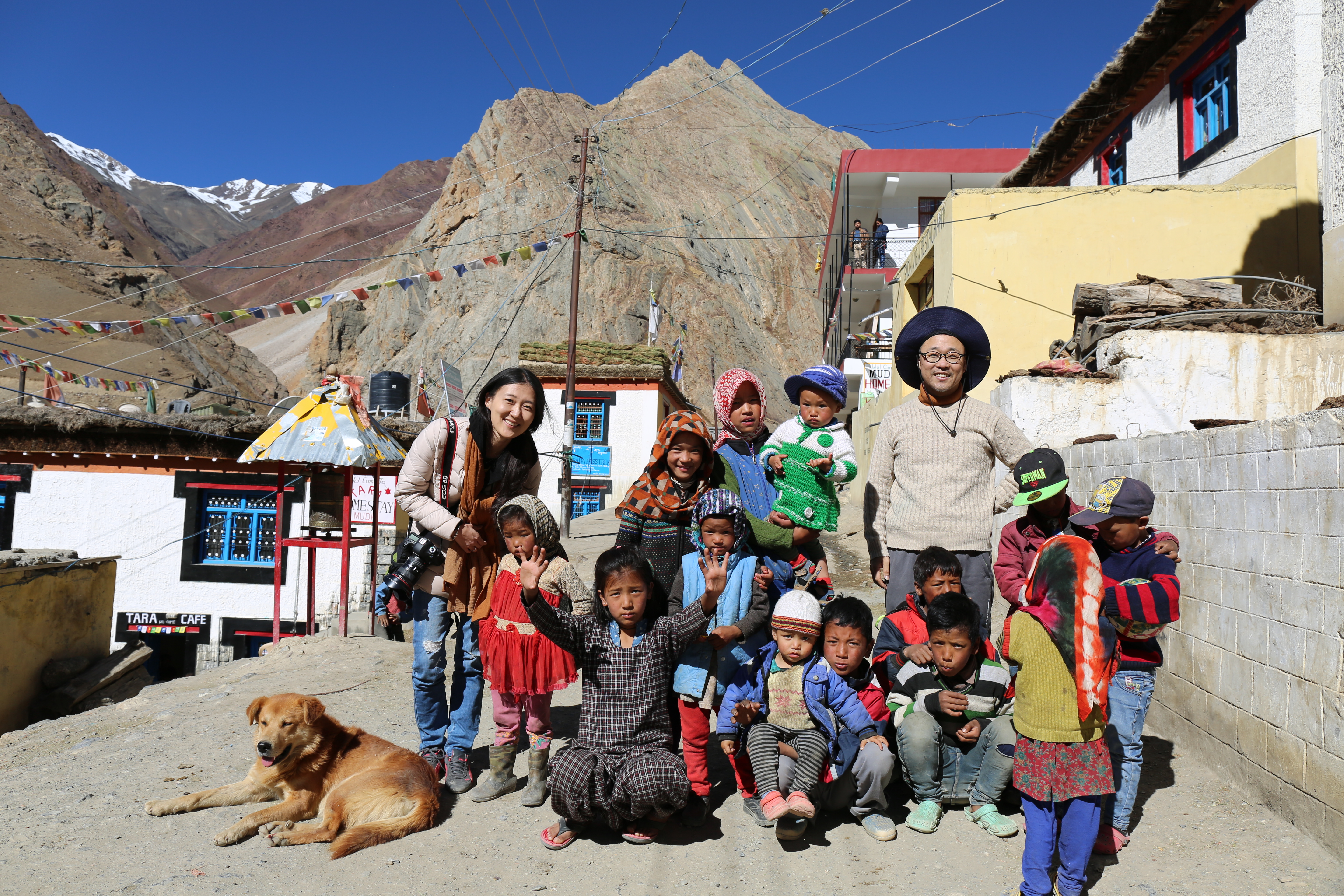 가는 길 내내 탄성을 지르며 가다 몇몇 마을 지나 스피티 밸리의 마지막이라고 하는 무드(Mudh)에 도착했다. 저 멀리 뻗은 산. 그 길로 트레킹을 한다고 한다. 이 아름다운 마을에서 묵었어도 좋았을 것 같다. 짜이 한 잔 시키고 쉬는데 L이 동네 아이들과 신나게 사진 찍는 모습이 보였다.