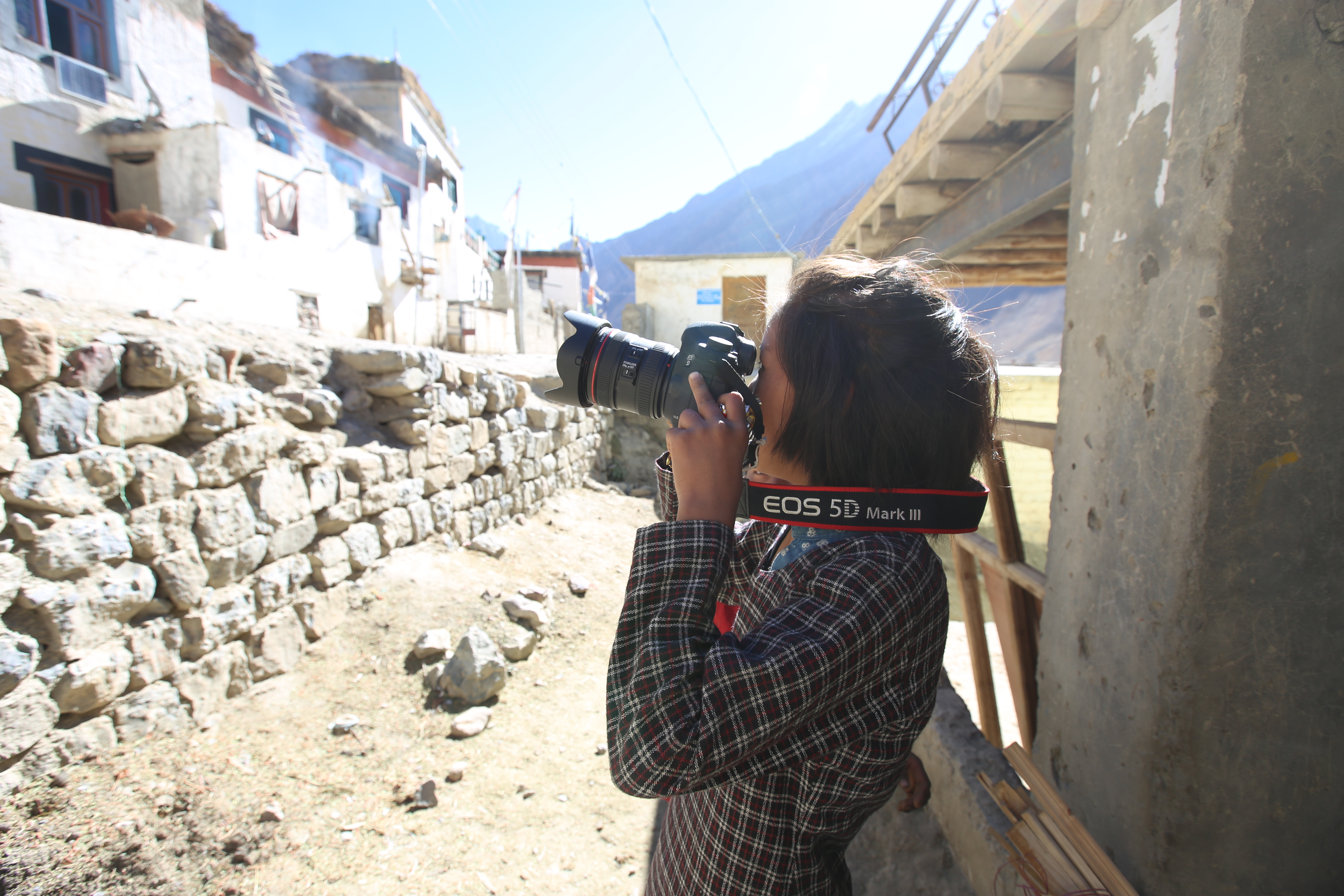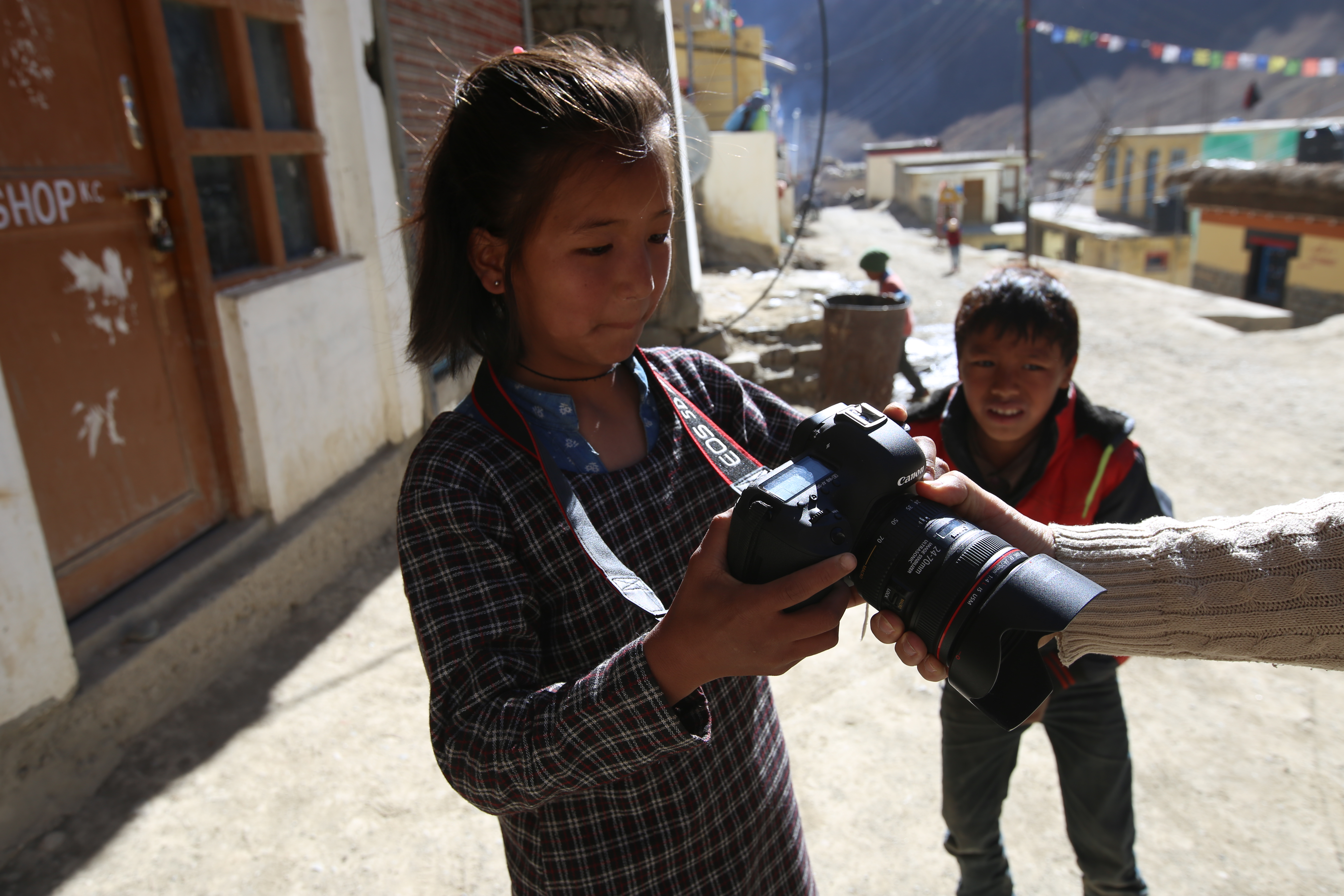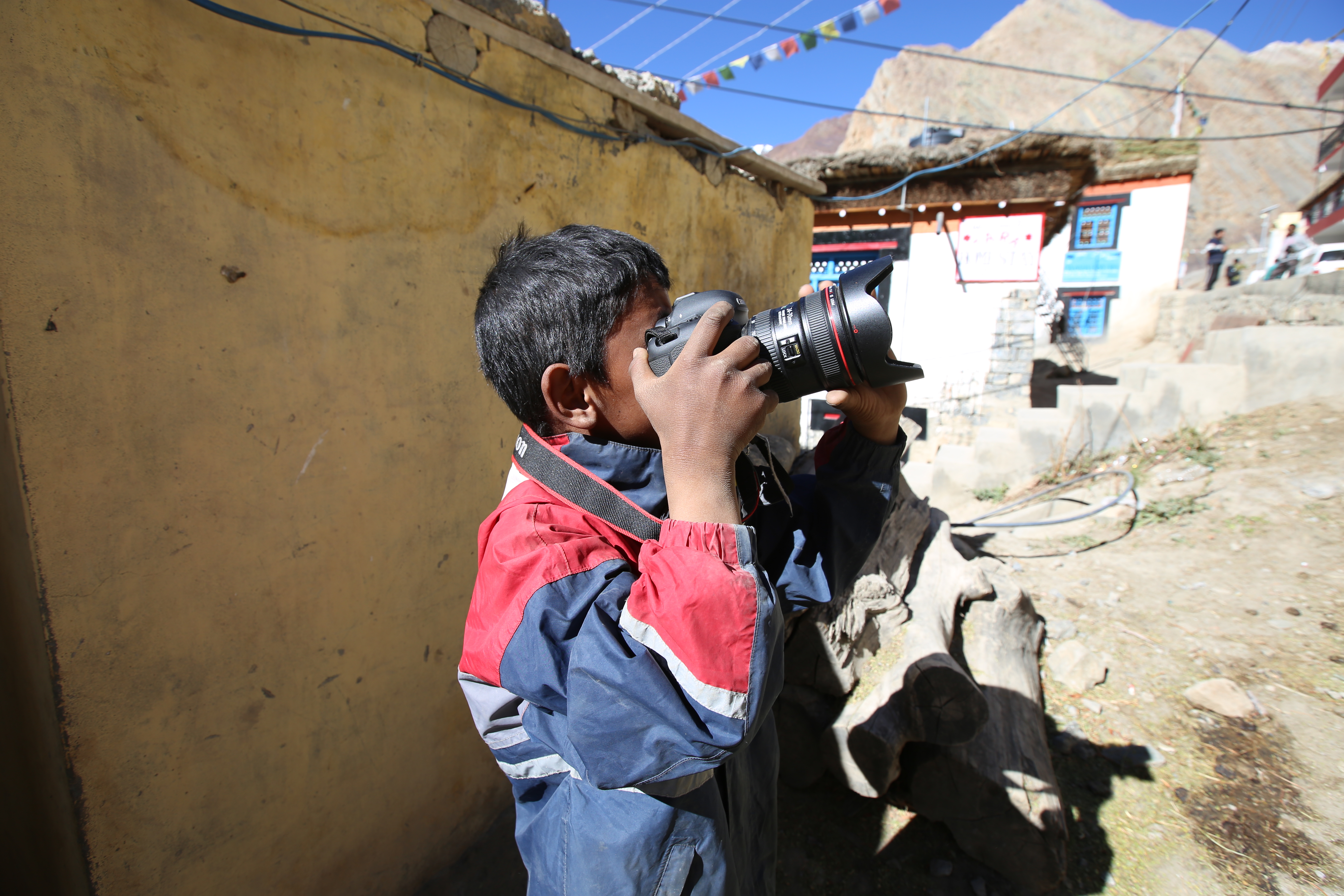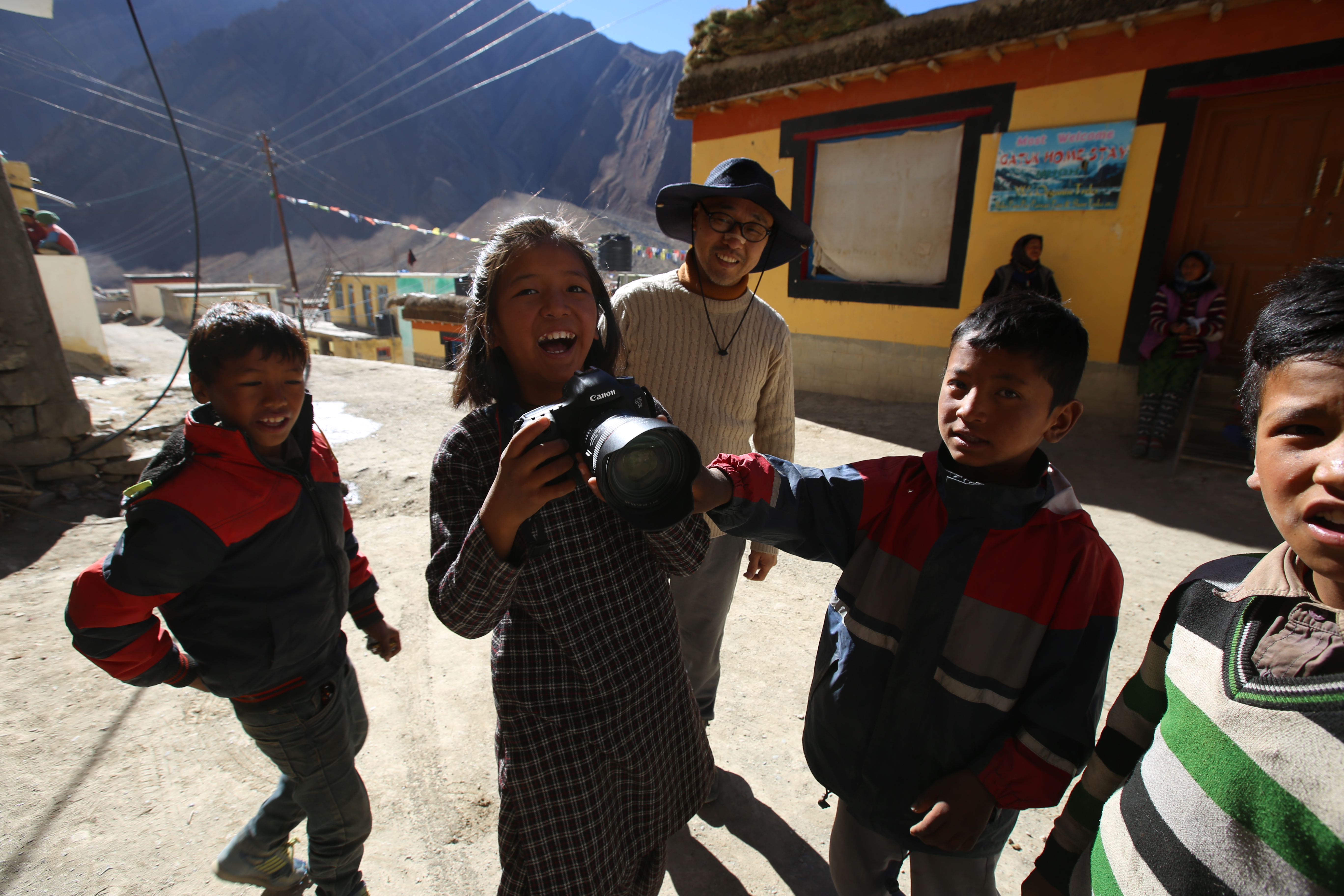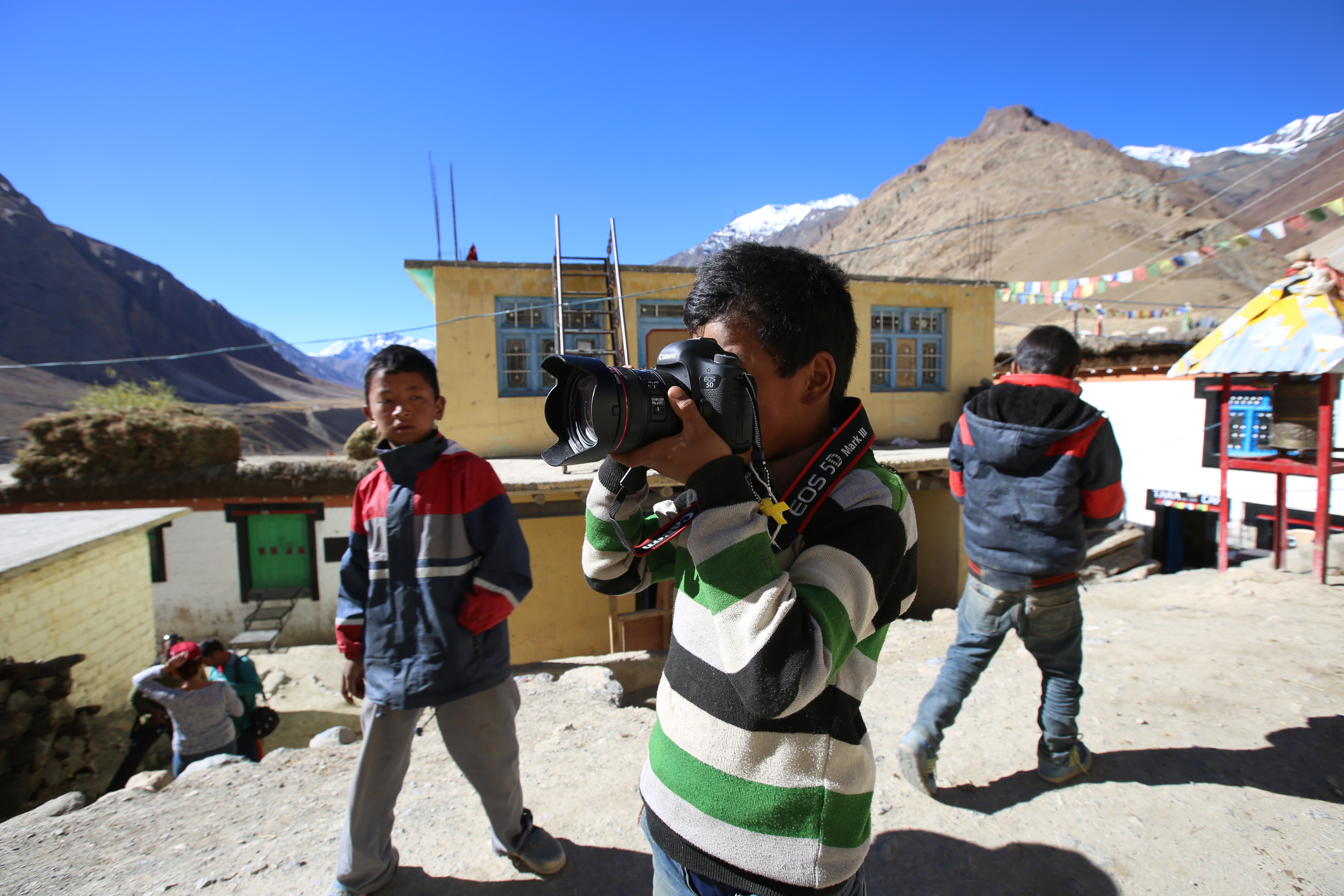 노르부, 텐진, 남걀과 파드마. 넷은 순서 지켜 L의 DSLR 카메라를 가지고 사진 찍었다.