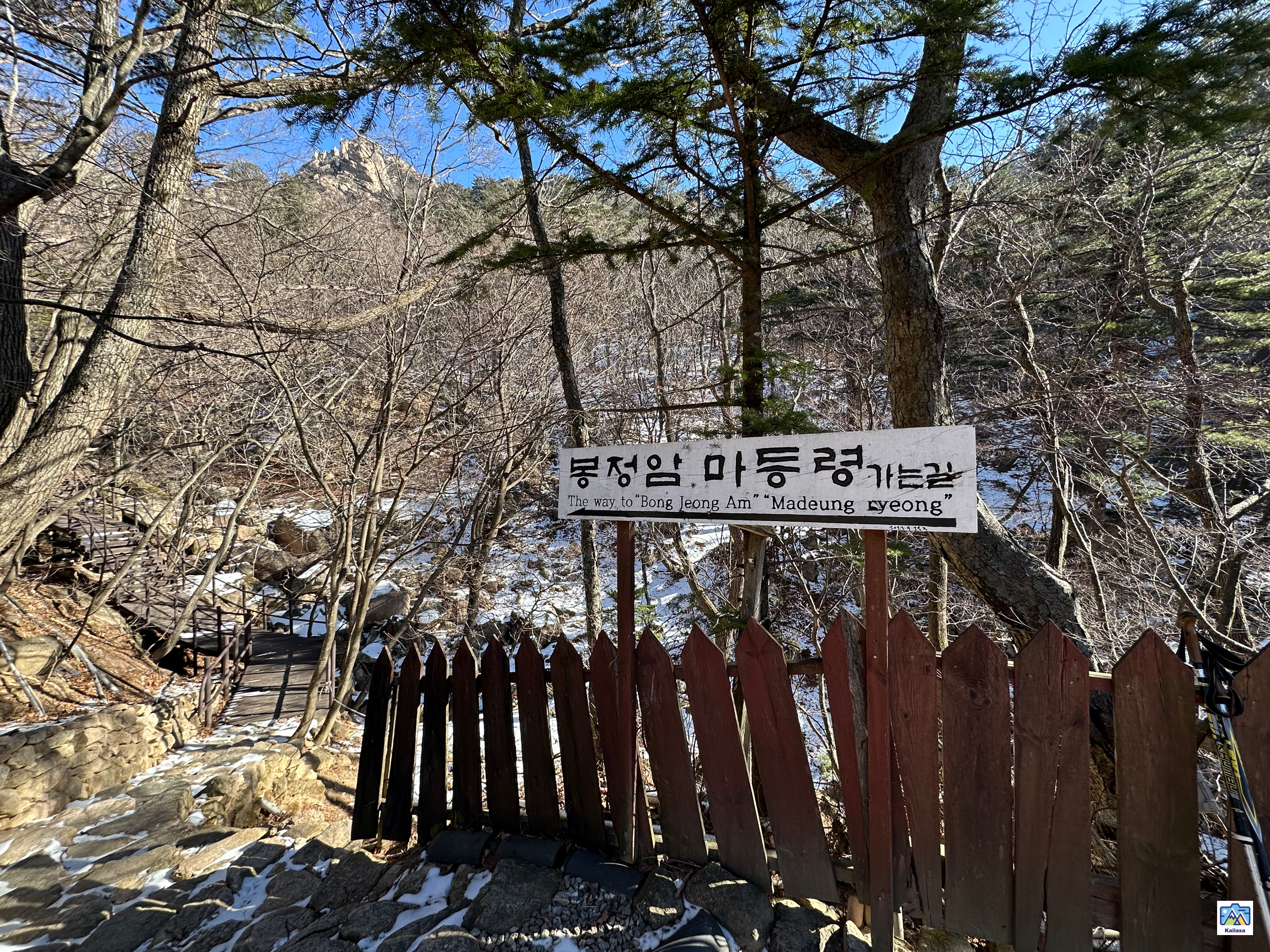백담사에 도착해서부터 본격적인 산행 시작이다. 백담사부터 영시암까지는 비교적 편안하고 완만한 길이 이어진다. 눈 쌓인 겨울 설악산이 절경이라기에 왔는데 오늘은 눈이 거의 없었다.