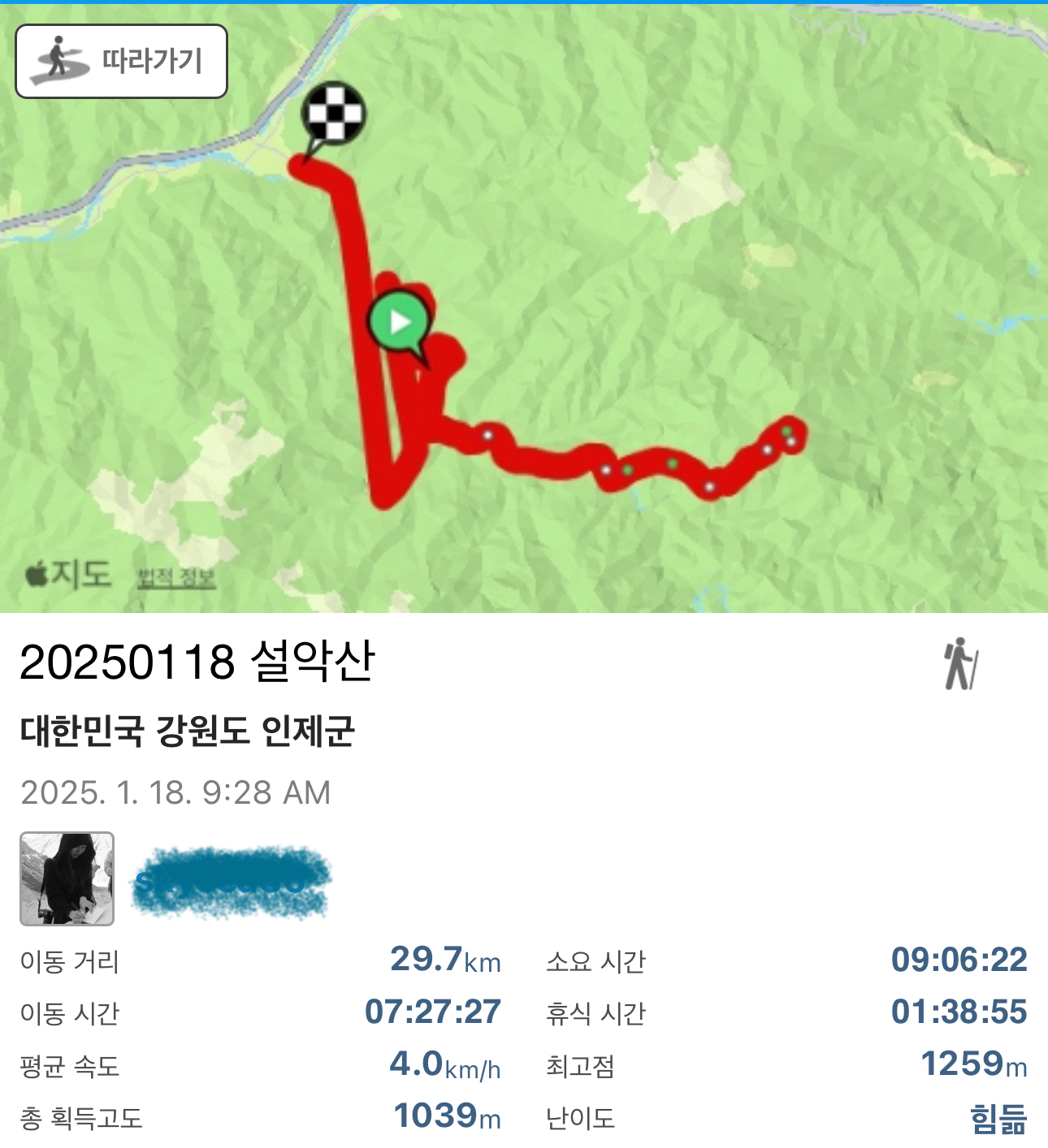 소요 시간 9시간 6분(휴식 1시간 40분 포함)