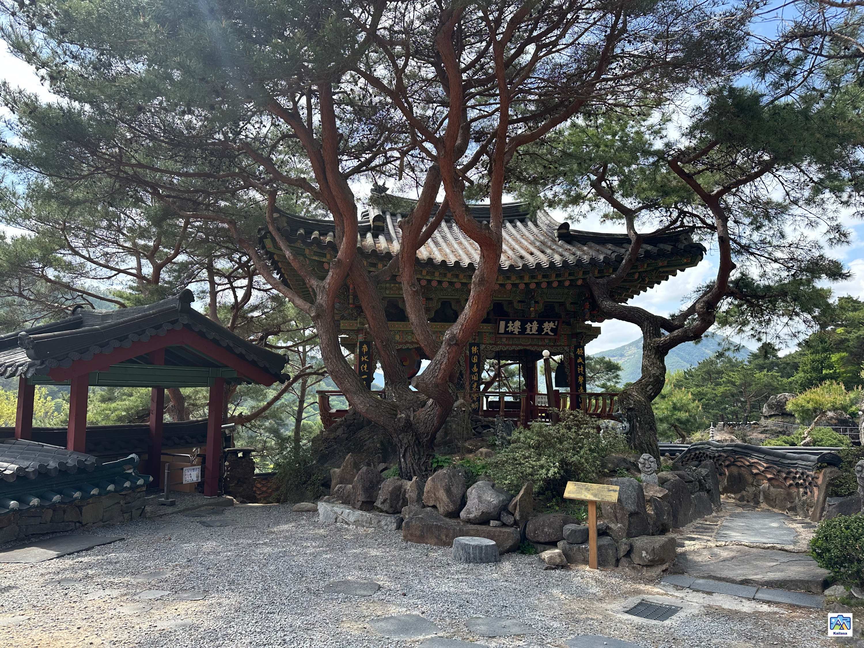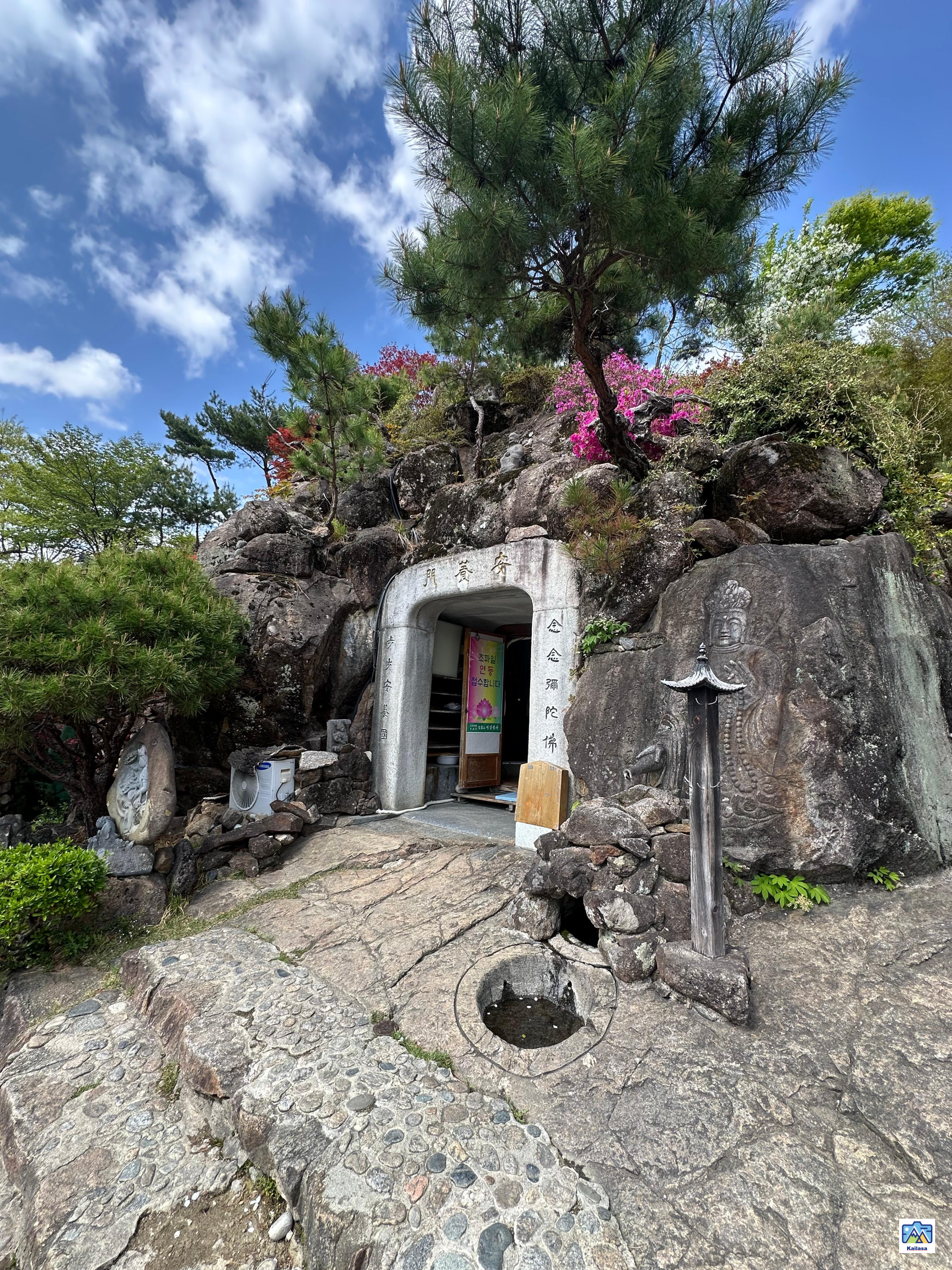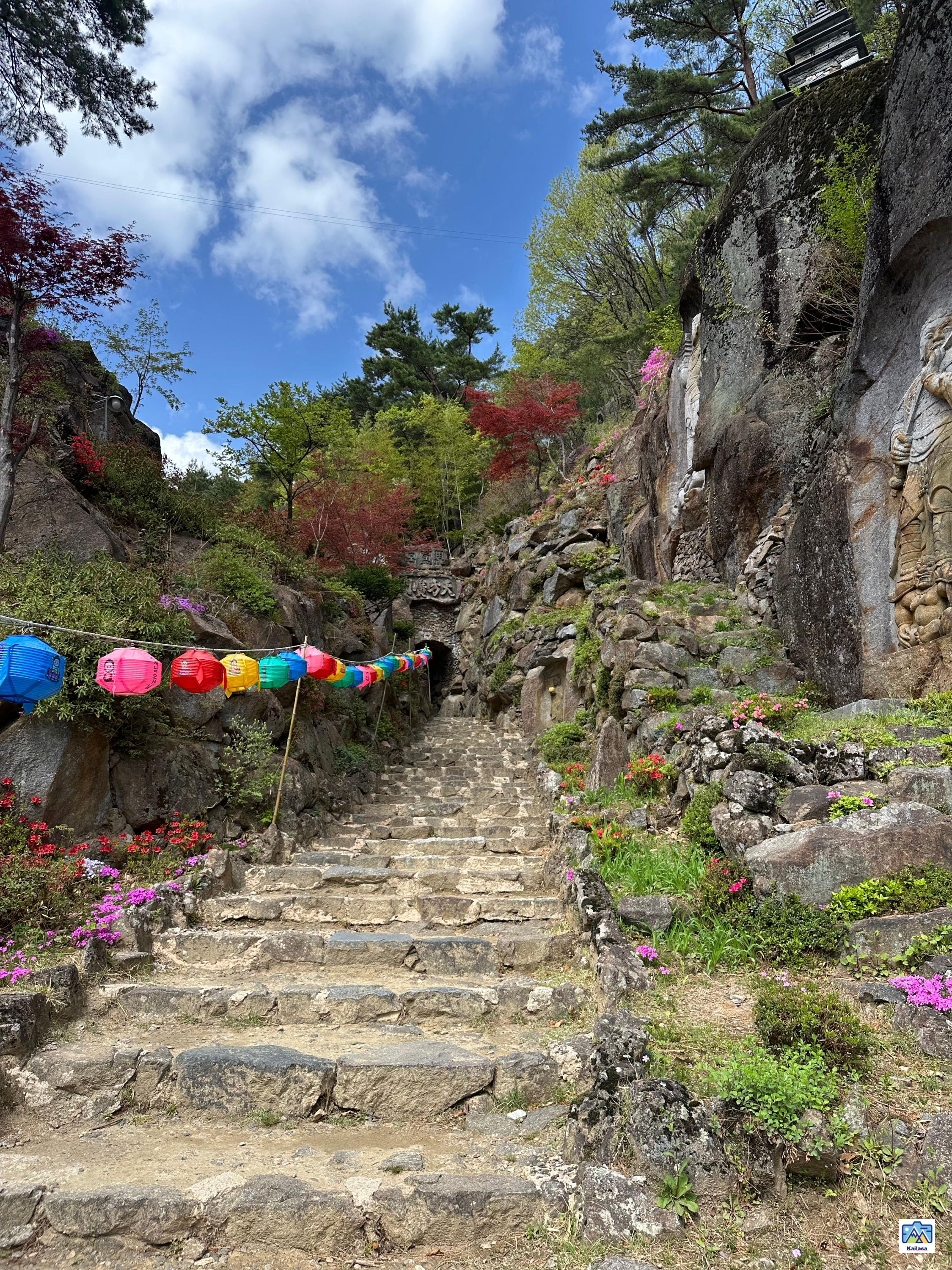 석굴 법당인 '극락전' (극락전 내부는 촬영할 수 없다.) 주위에 바위를 이용하여 사천왕문, 비로전, 산신각 등 다양한 내용이 새겨져 있다.