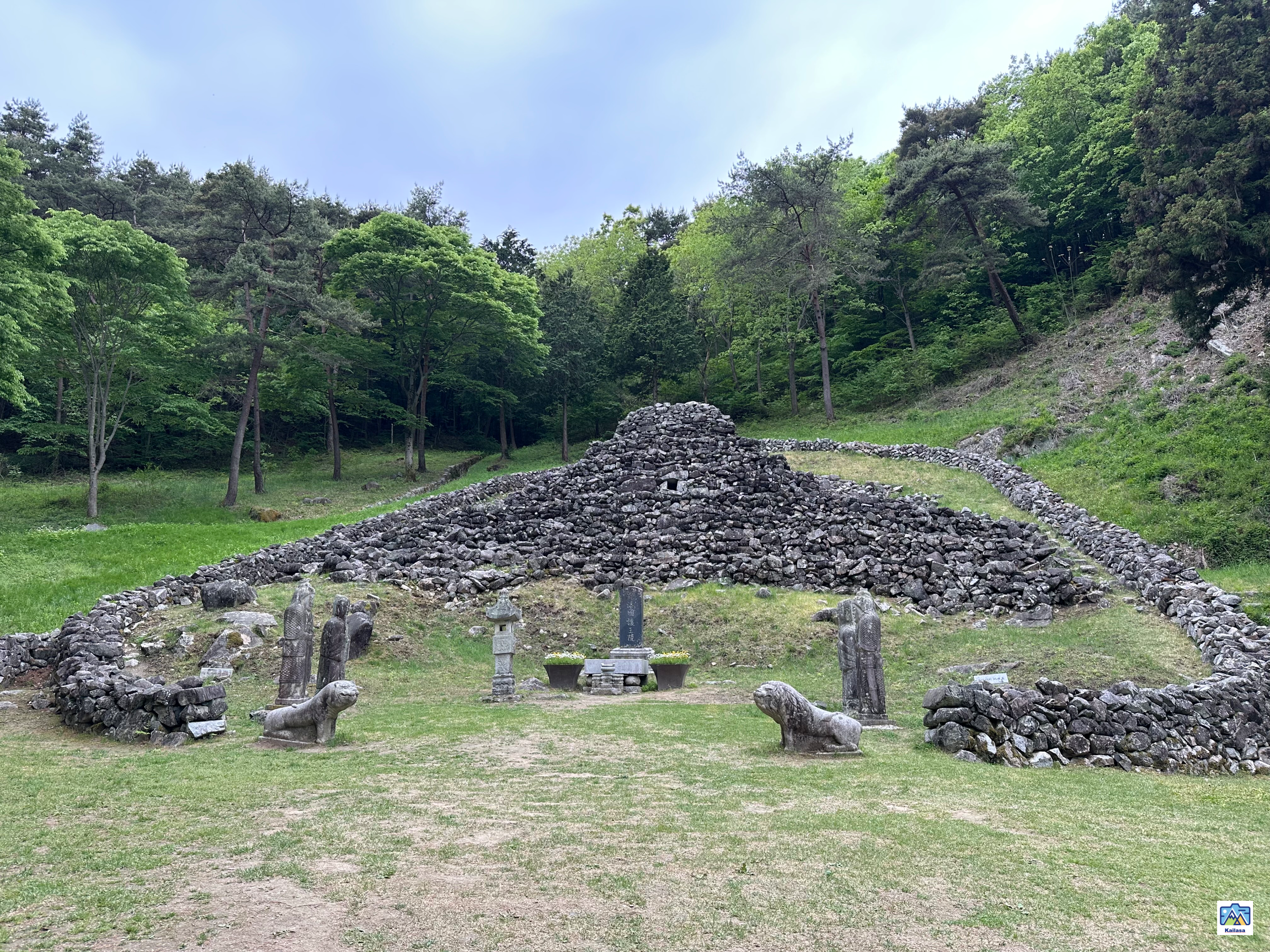 가야 10대 임금인 구형왕의 무덤으로 전해지는 돌무덤. 구형왕은 양왕이라 하는데 김유신의 증조부인다. 가야의 왕이 되어 532년 신라 법흥왕에게 영토를 넘겨줄 때까지 11년간 왕으로 있었다.