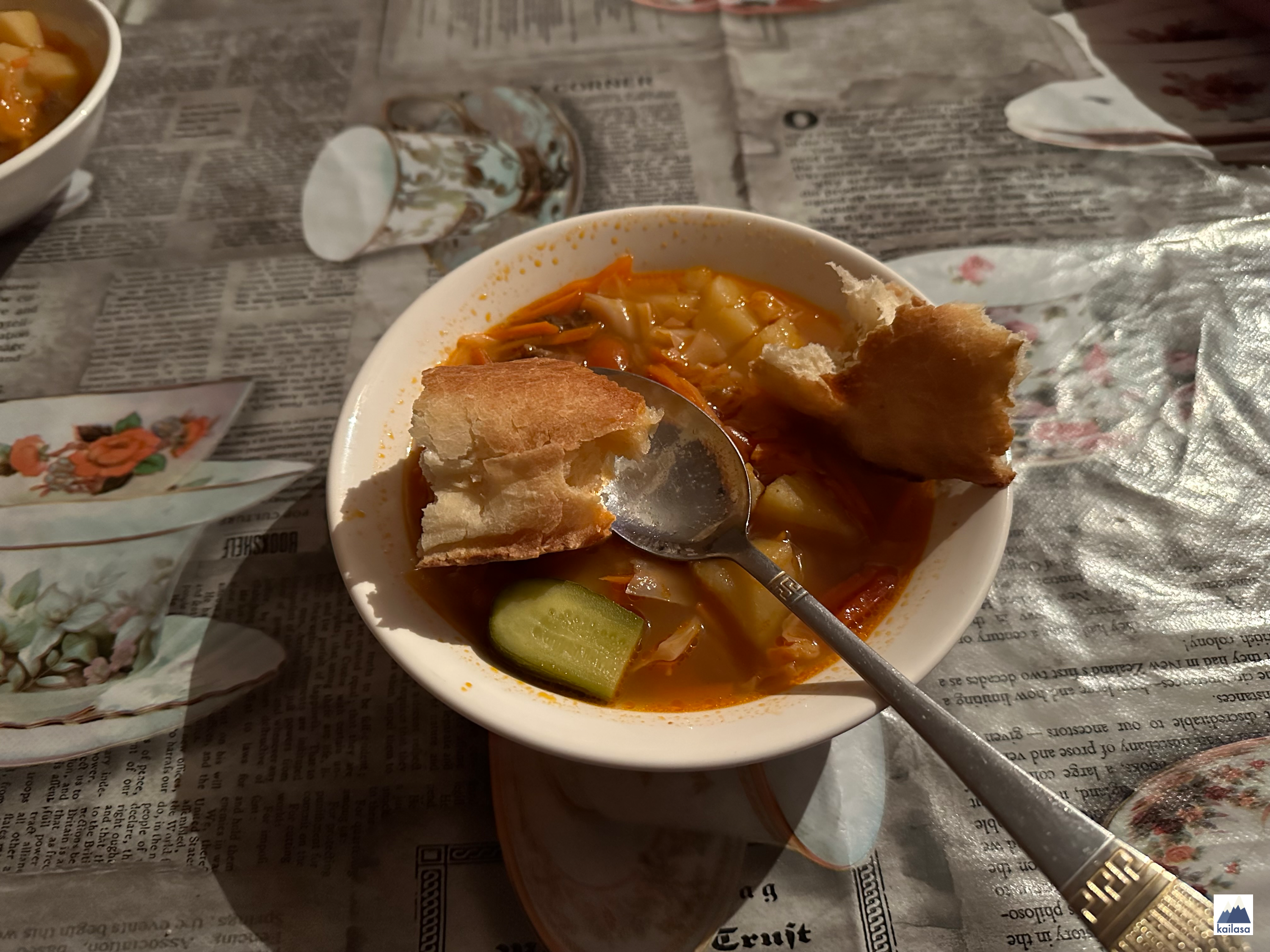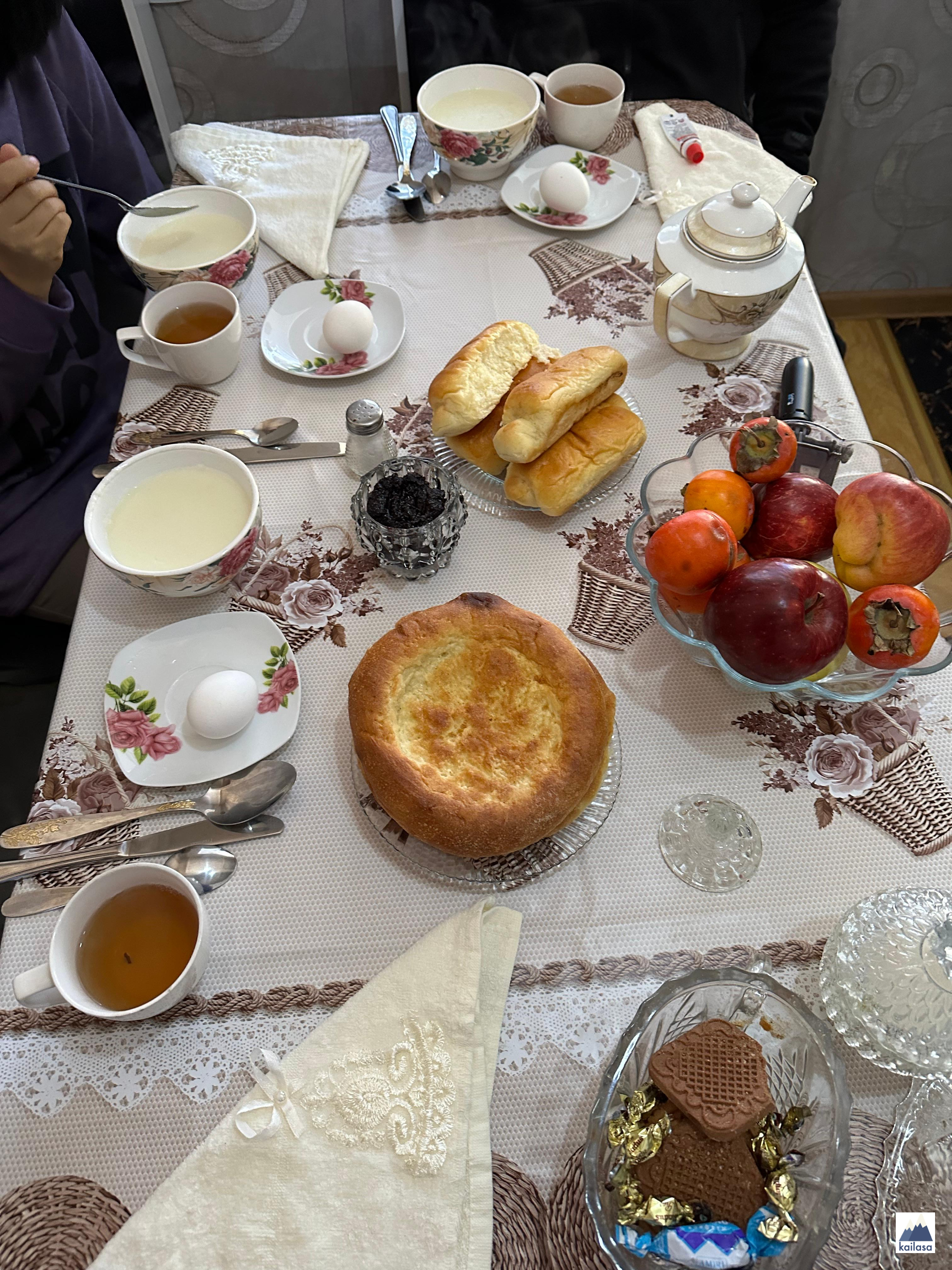 스프는 고기가 덜 들어가서 훨씬 덜 느끼했고 감자, 양배추, 당근이 들어가 있으니까 좋다! 이걸로 식사가 끝인 줄 알았는데 밥, 야크 고기가 일인당 한 접시씩 나와서 우리는 셋이서 하나를 같이 먹겠다고 했다. 그런데 거기에서 끝이 아니고 양 고기가 또 나와서 우리는 손도 못 댔다. 타지크 사람들은 먹을 걸 참 풍성히 준다 ^^