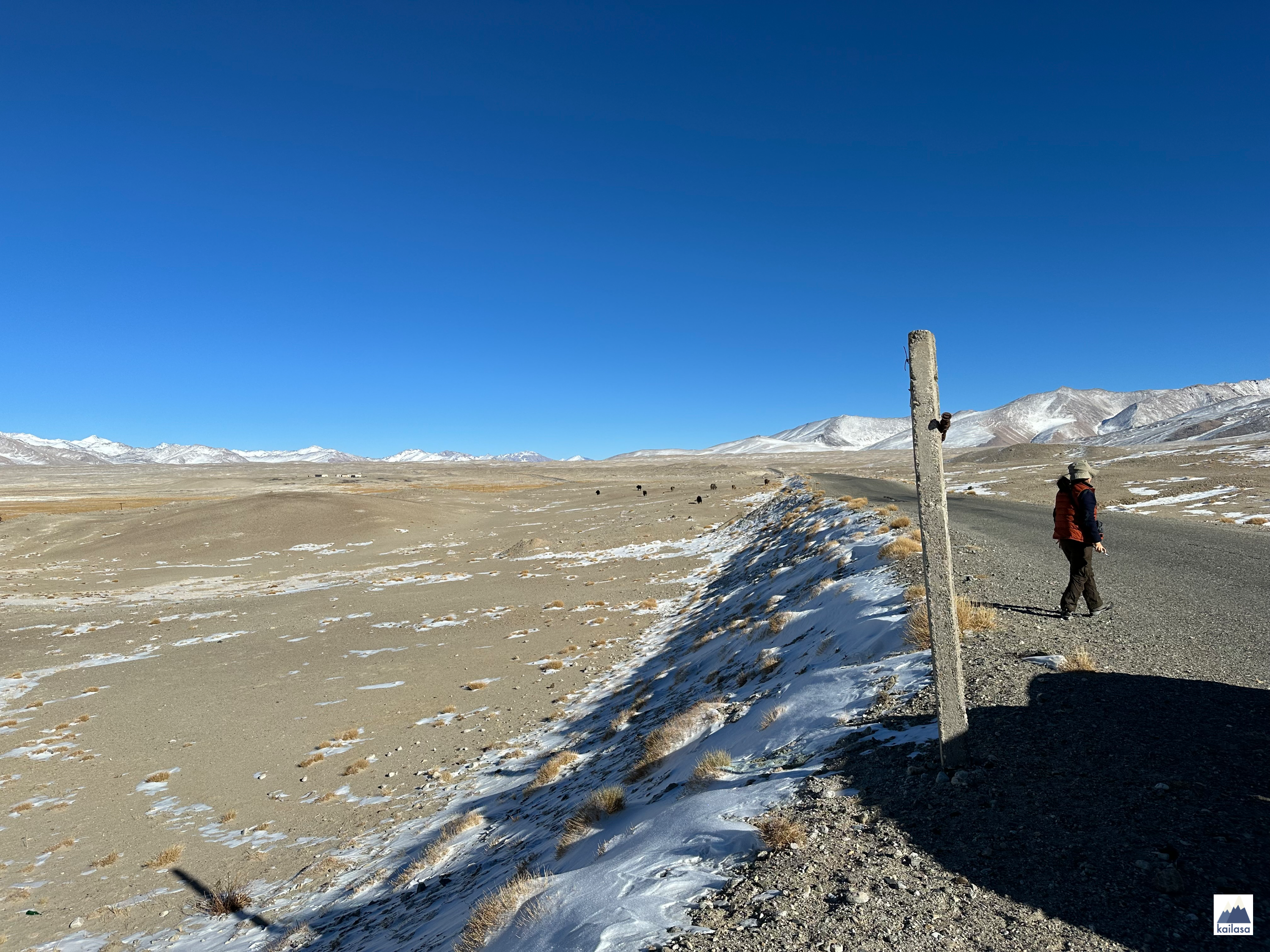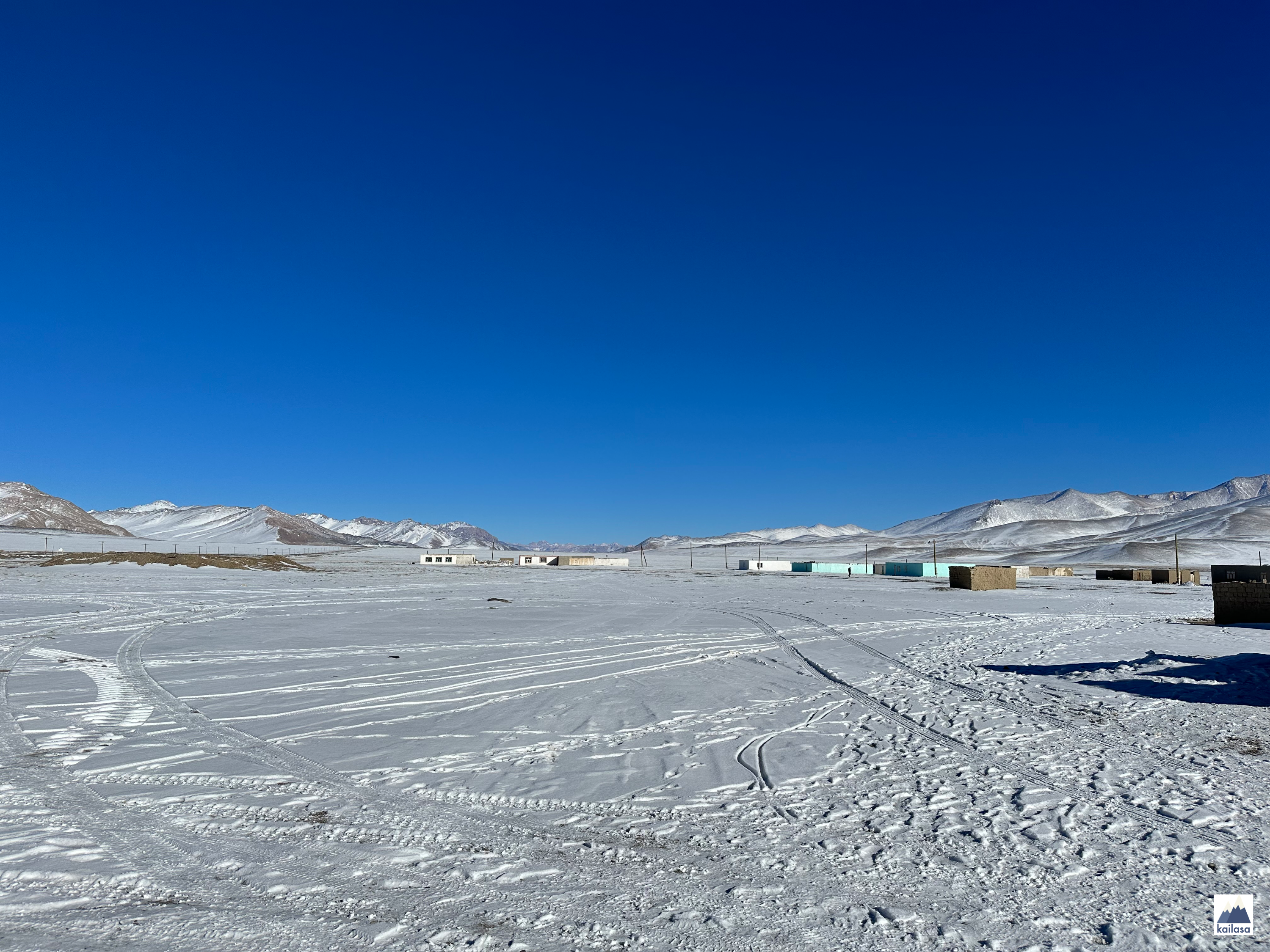저 멀리 황량한 산이 보이고 집은 몇 채만 있다. J의 표현을 빌자면 이곳의 집들은 성냥갑처럼 네모나게 생겼다. 추위 때문에 지붕도 없이 단층으로 단순하게 지은 집들만 덩그러니 몇 채 있는데 이런 곳에서는 정말로 움직이는 것이 별로 없다.