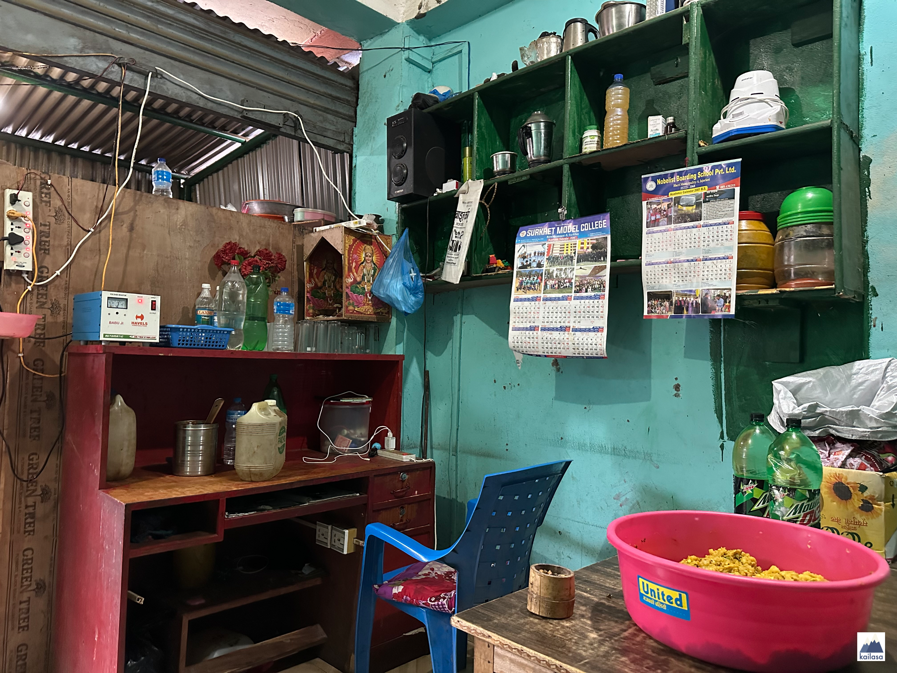 정비 기다리는 동안 식당에서 저녁 식사를 하기로 했다. 달밧 주문했는데 나오는데도 한 시간은 넘게 걸린 것 같다. 차 정비하고 밤에 떠나면 위험하기도 하고 너무 늦어져서 결국 하루 묵어가기로 했다.