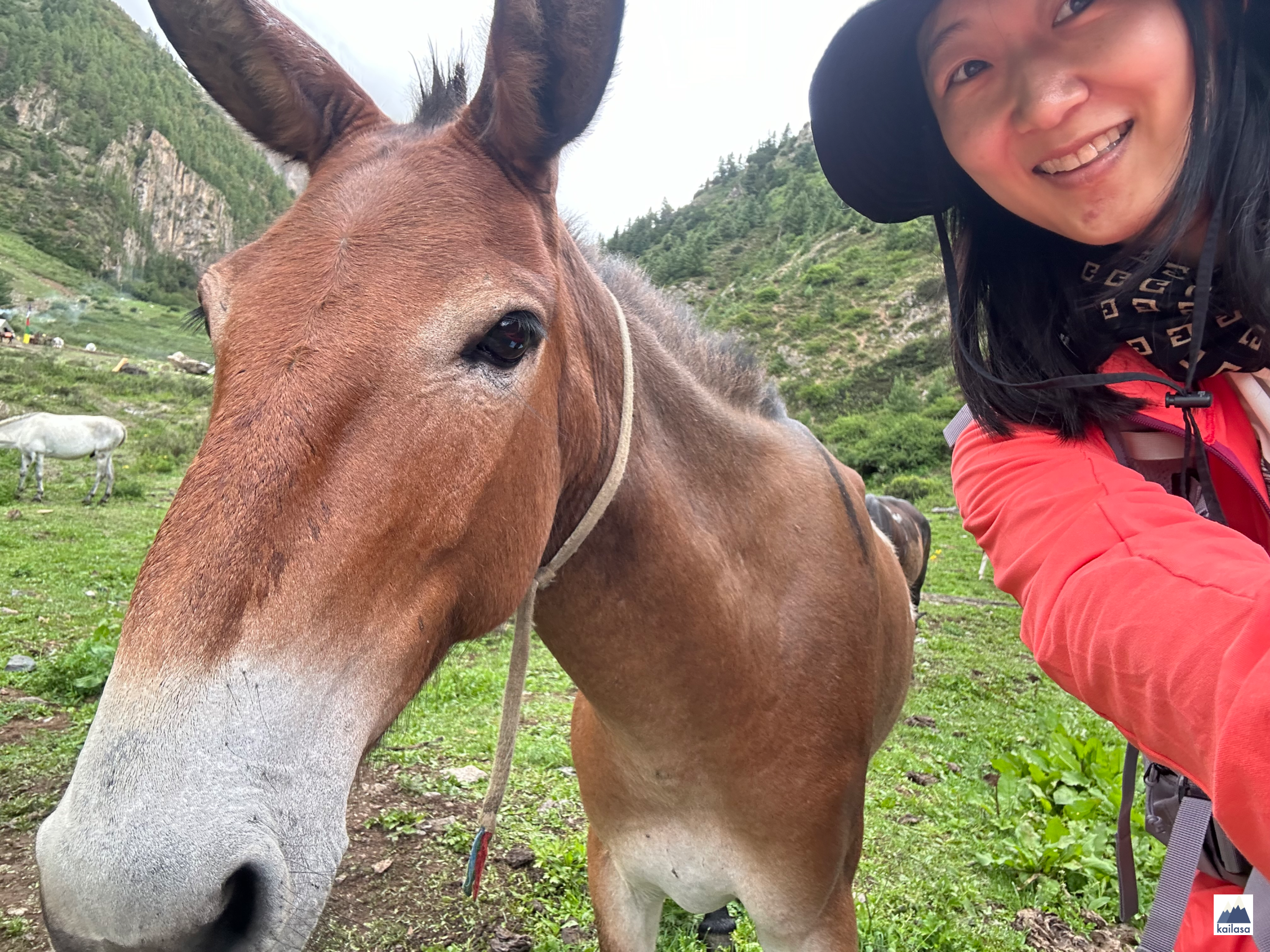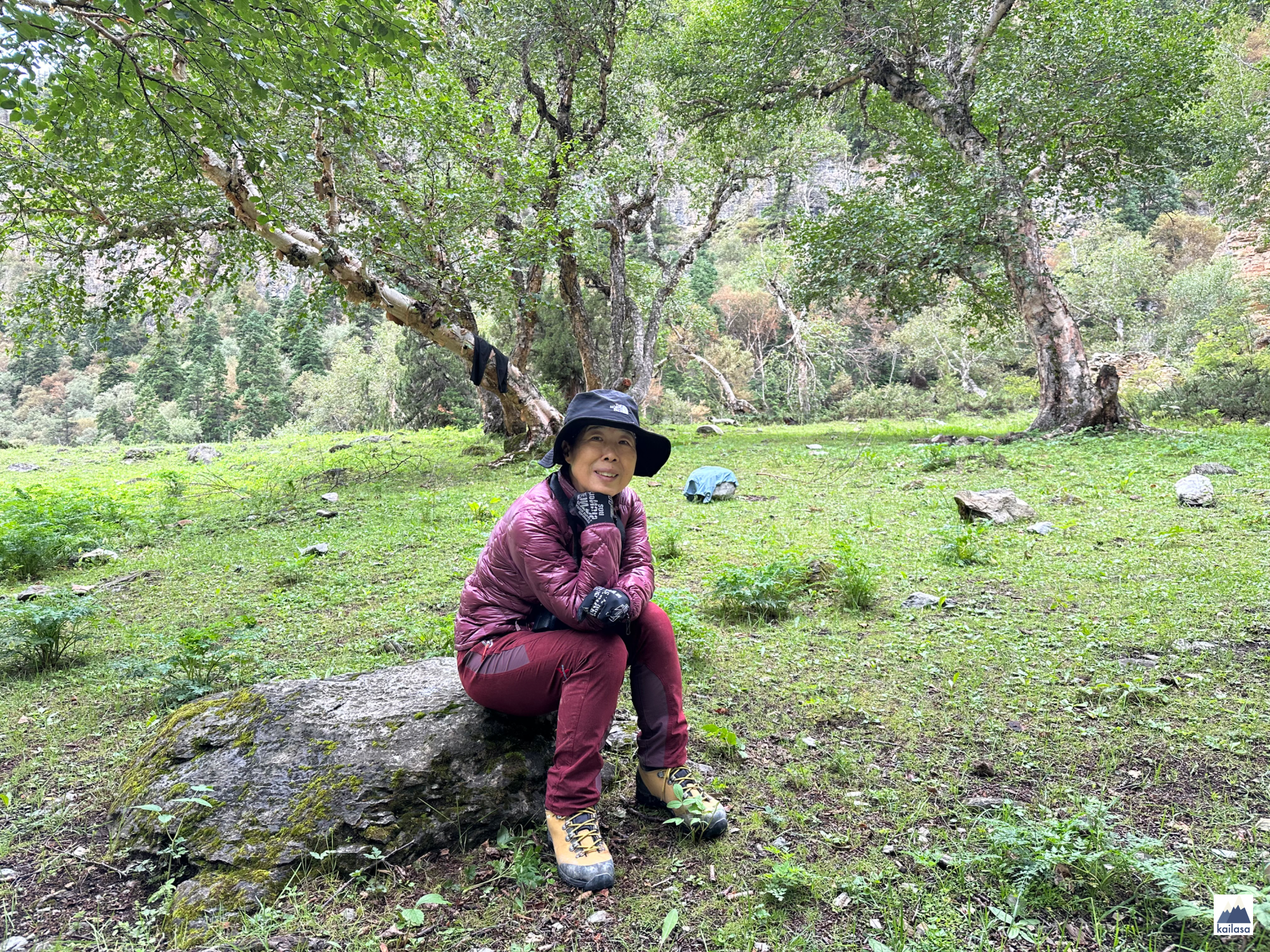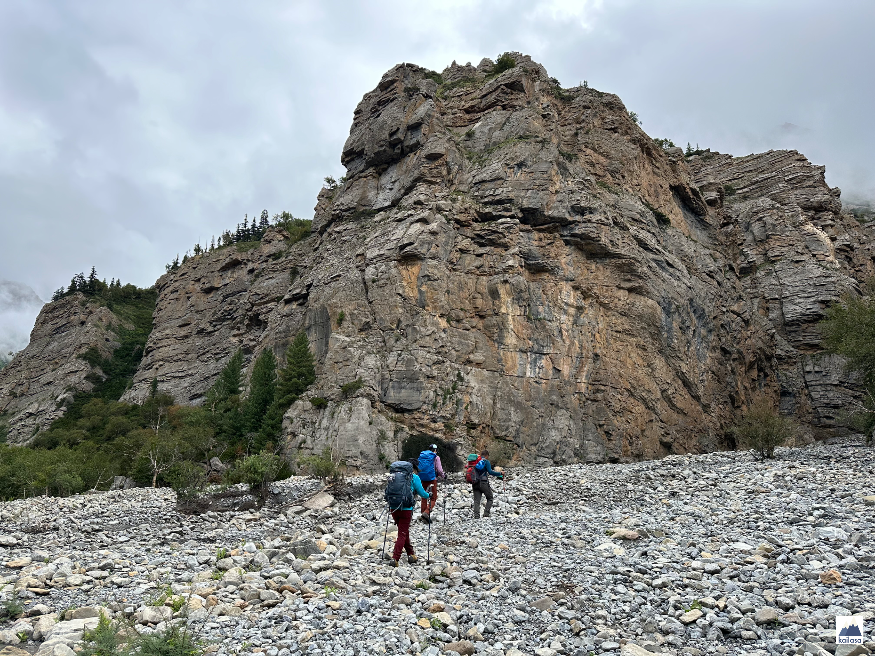 캉라를 오르지 않기로 했기에 우리는 오른편으로 가지 않고 계곡 따라 가서 물을 건넜다. 나는 물 건너면서 바지가 폭샥 젖었다.