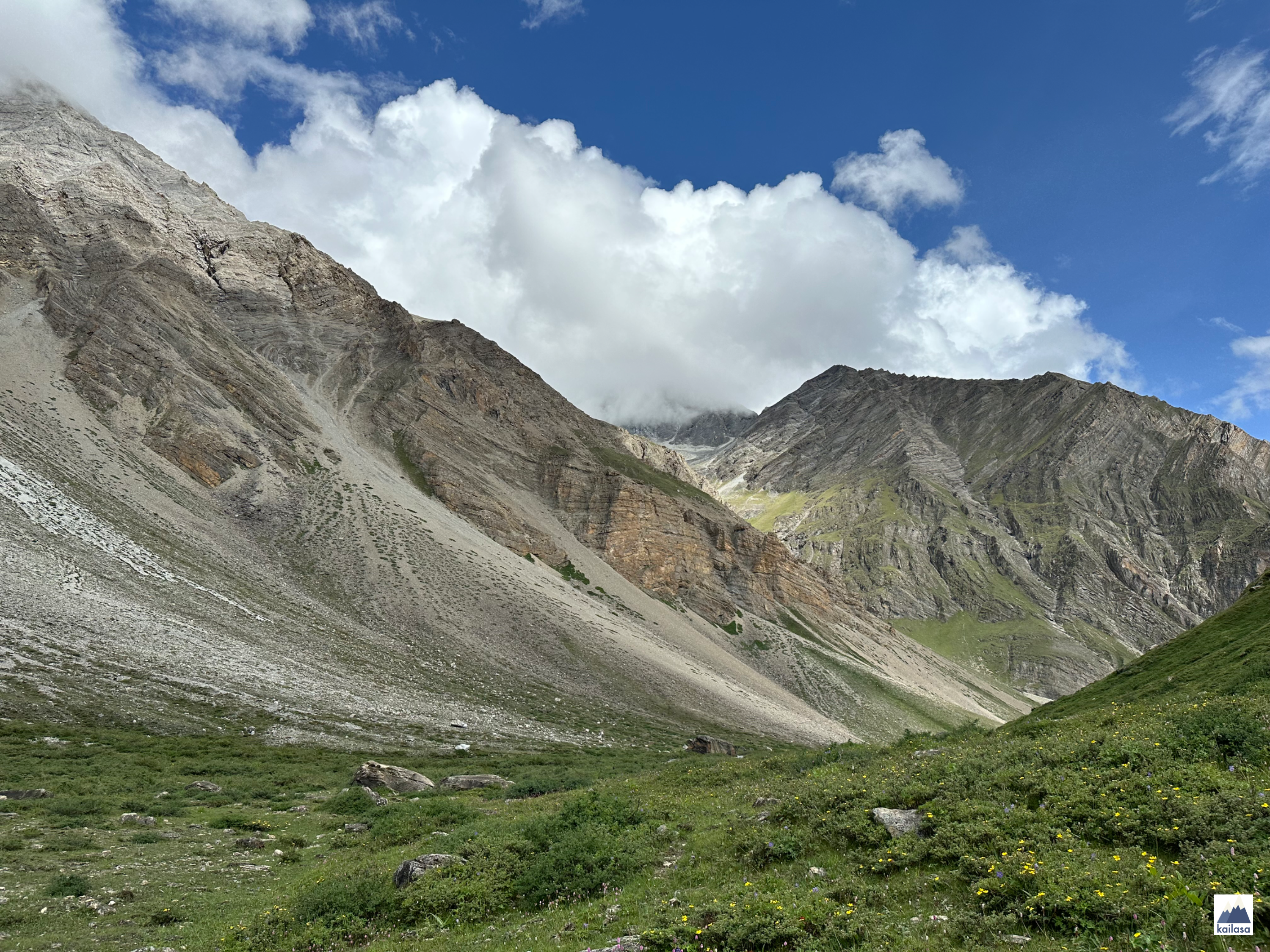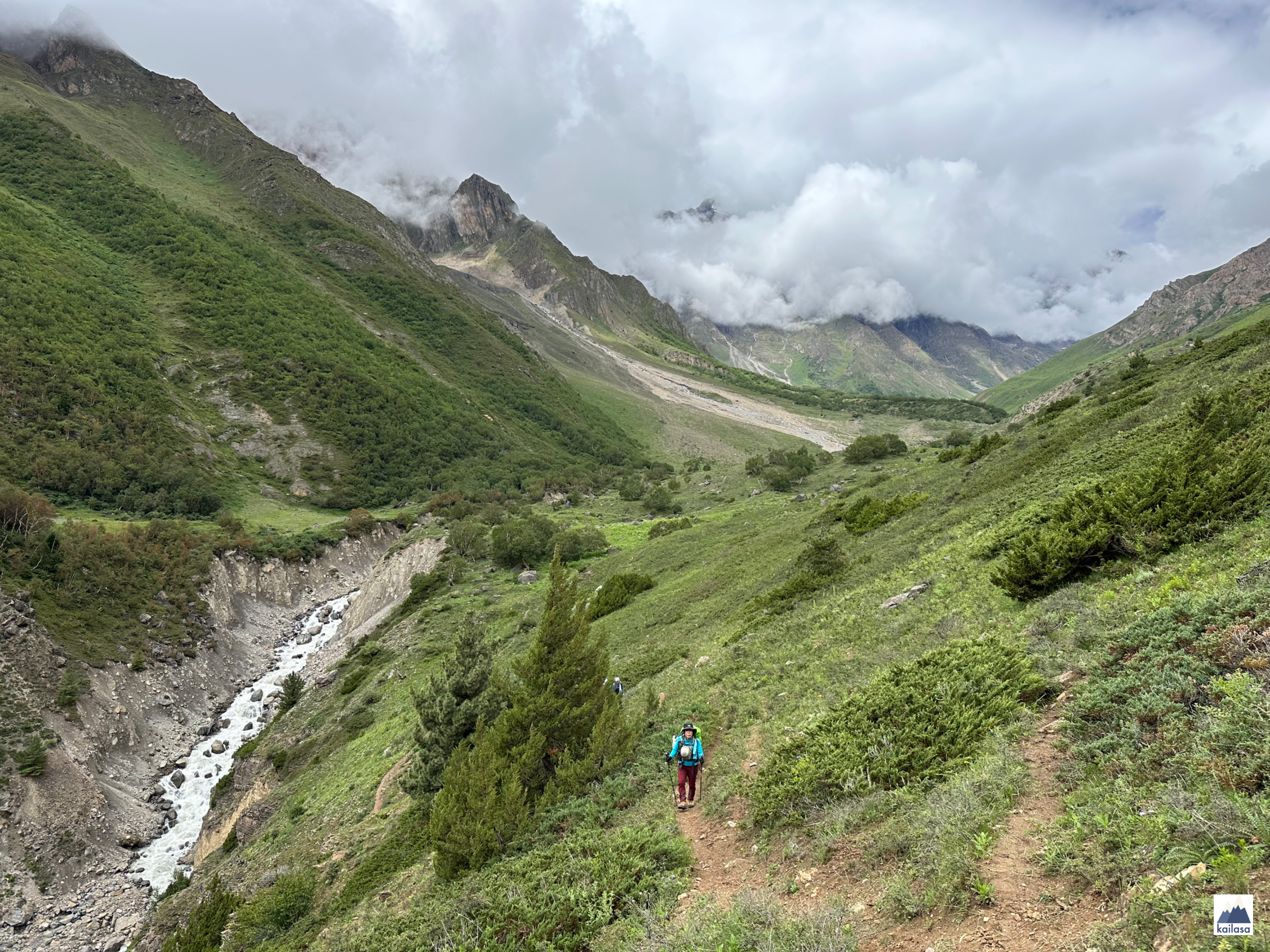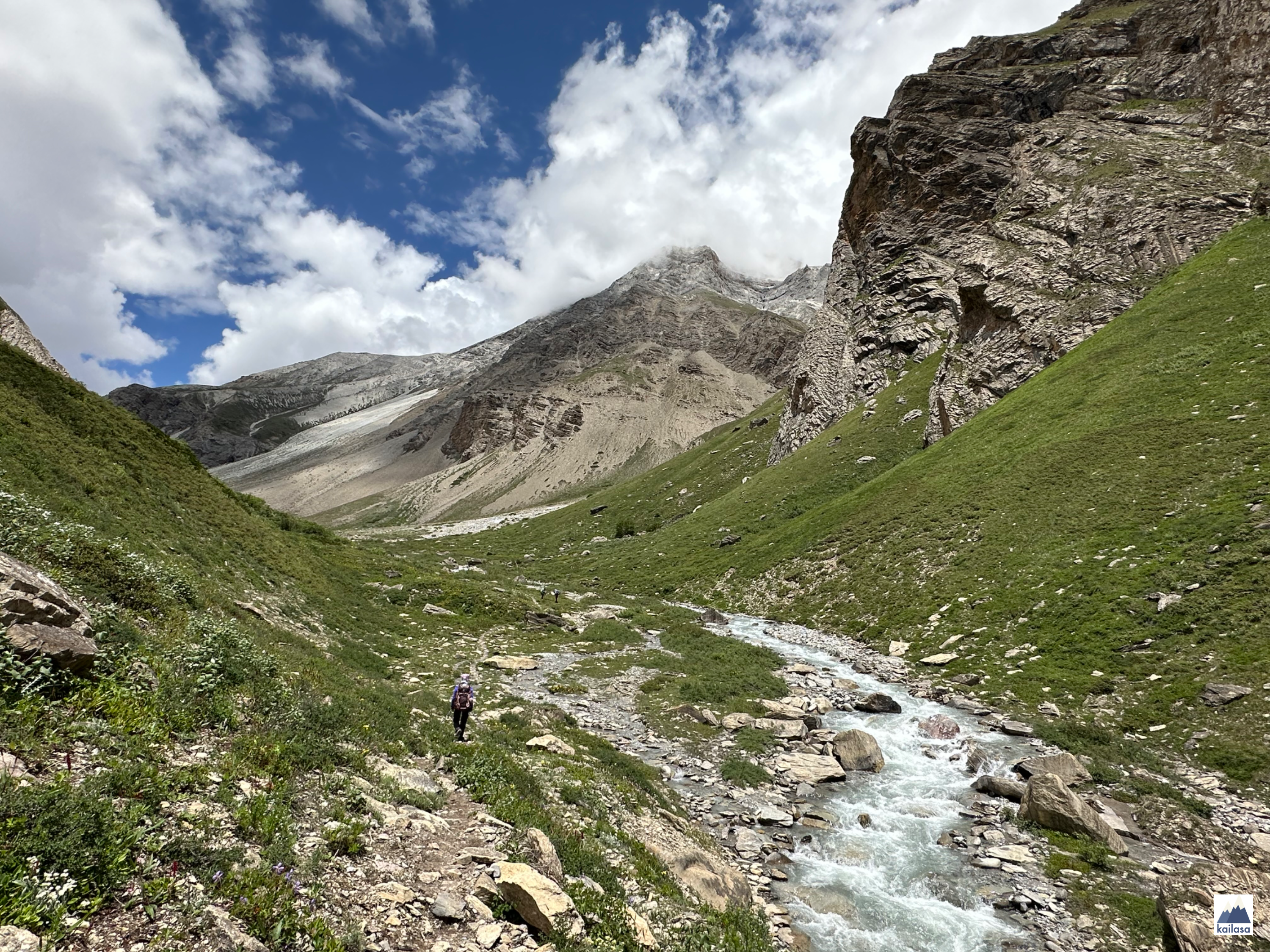 캉라를 오르지 않기로 했기에 우리는 오른편으로 가지 않고 계곡 따라 가서 물을 건넜다. 나는 물 건너면서 바지가 폭샥 젖었다.