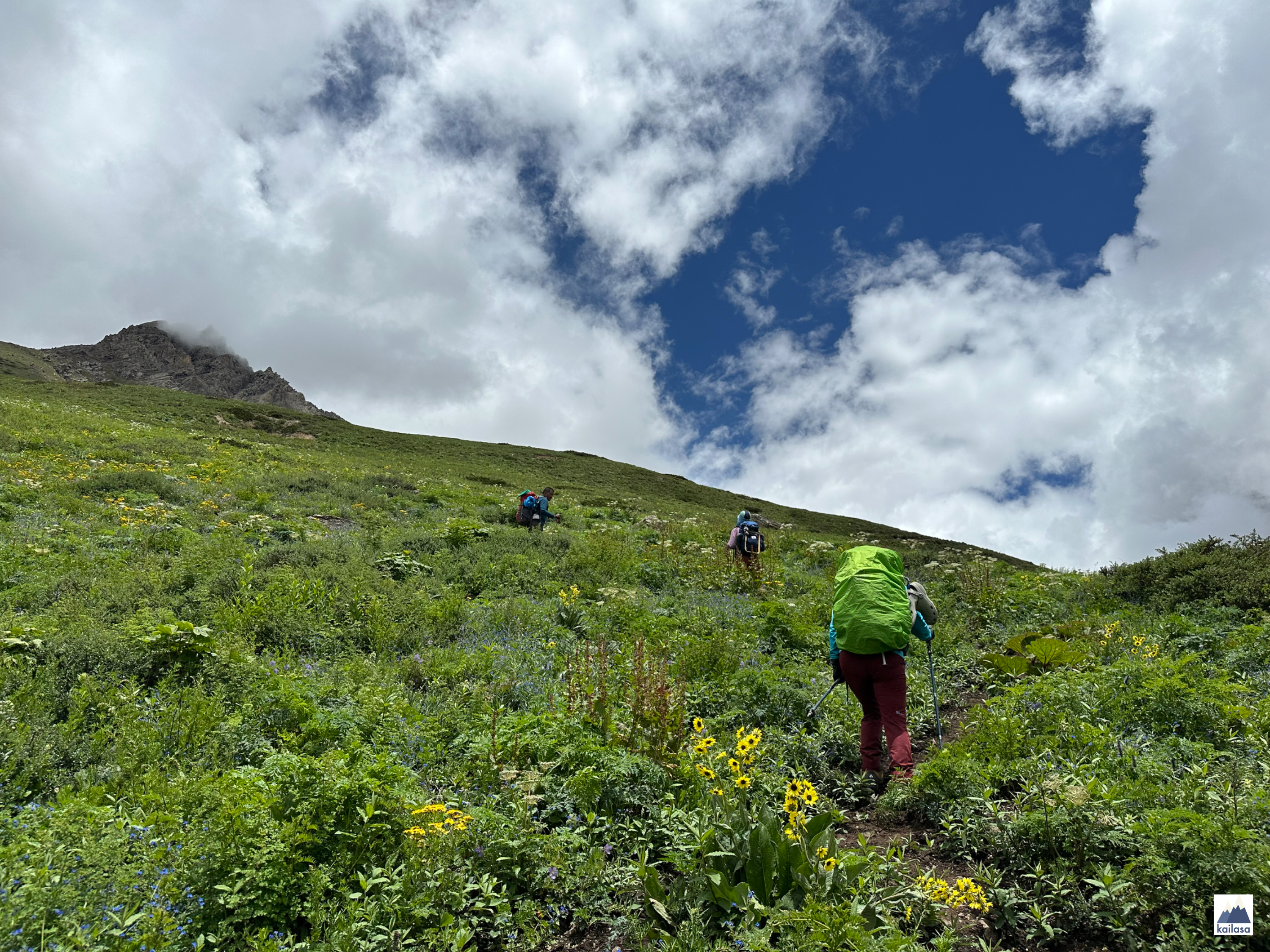 풀바리(꽃동산)가 나왔을 때는 너무 아름다워서 모두 환호성을 질렀다! 후크티, 파란색 작은 꽃, 노랑색, 보라색, 온갖 꽃들의 향연. 너무 예뻐서 가파른 오르막에도 힘든 줄 모르고 올랐다.