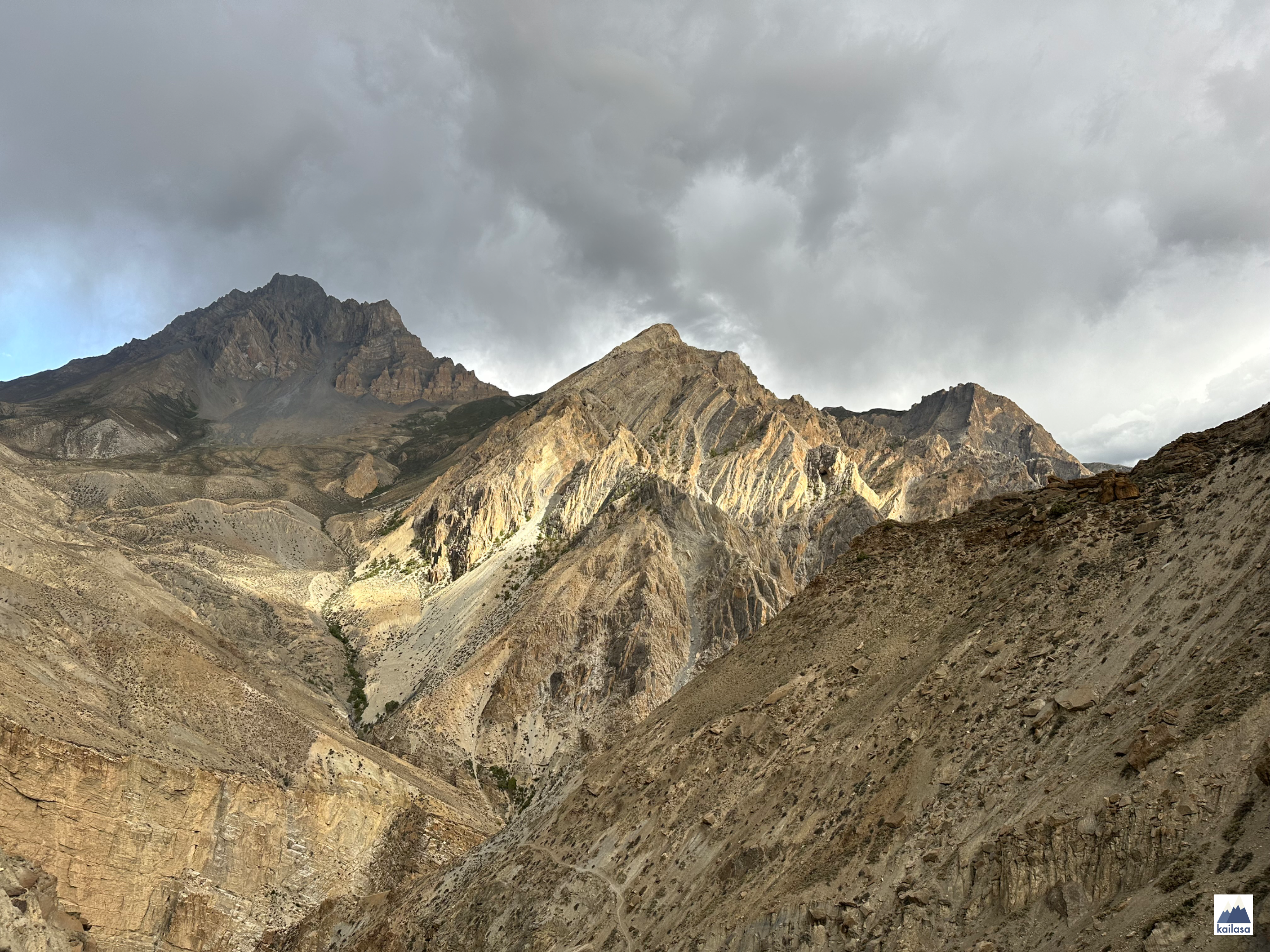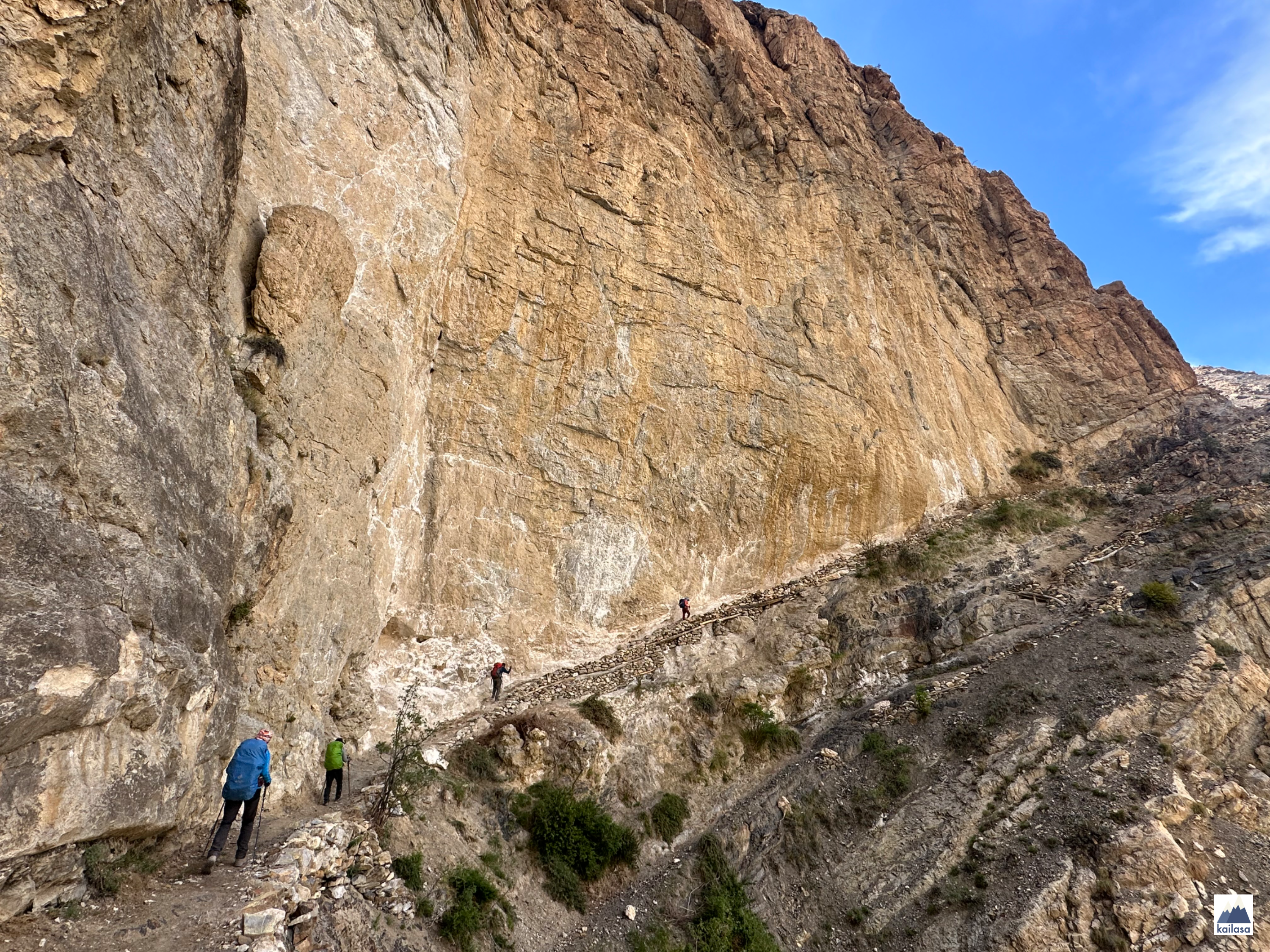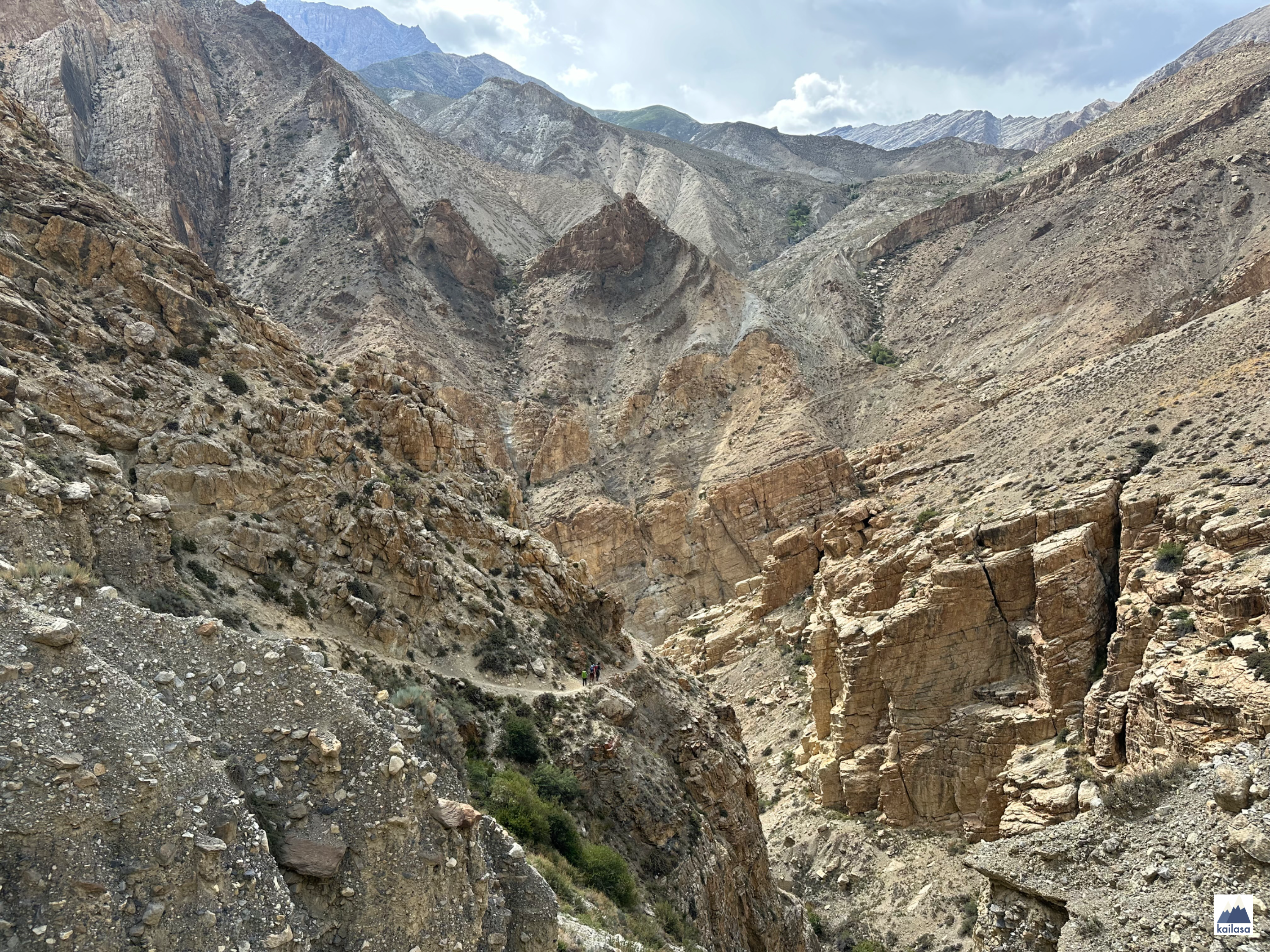 내리막의 끝까지 가서 계곡의 다리를 건너고 나면 또 한참을 올라가야 한다. 맞은편에 노새들이 올라가는 게 보이고 그 뒤에 빠상 한참 뒤에 직메와 소남이 천천히 절벽 아래 길을 올라 지그재그로 오르는 것이 보였다.