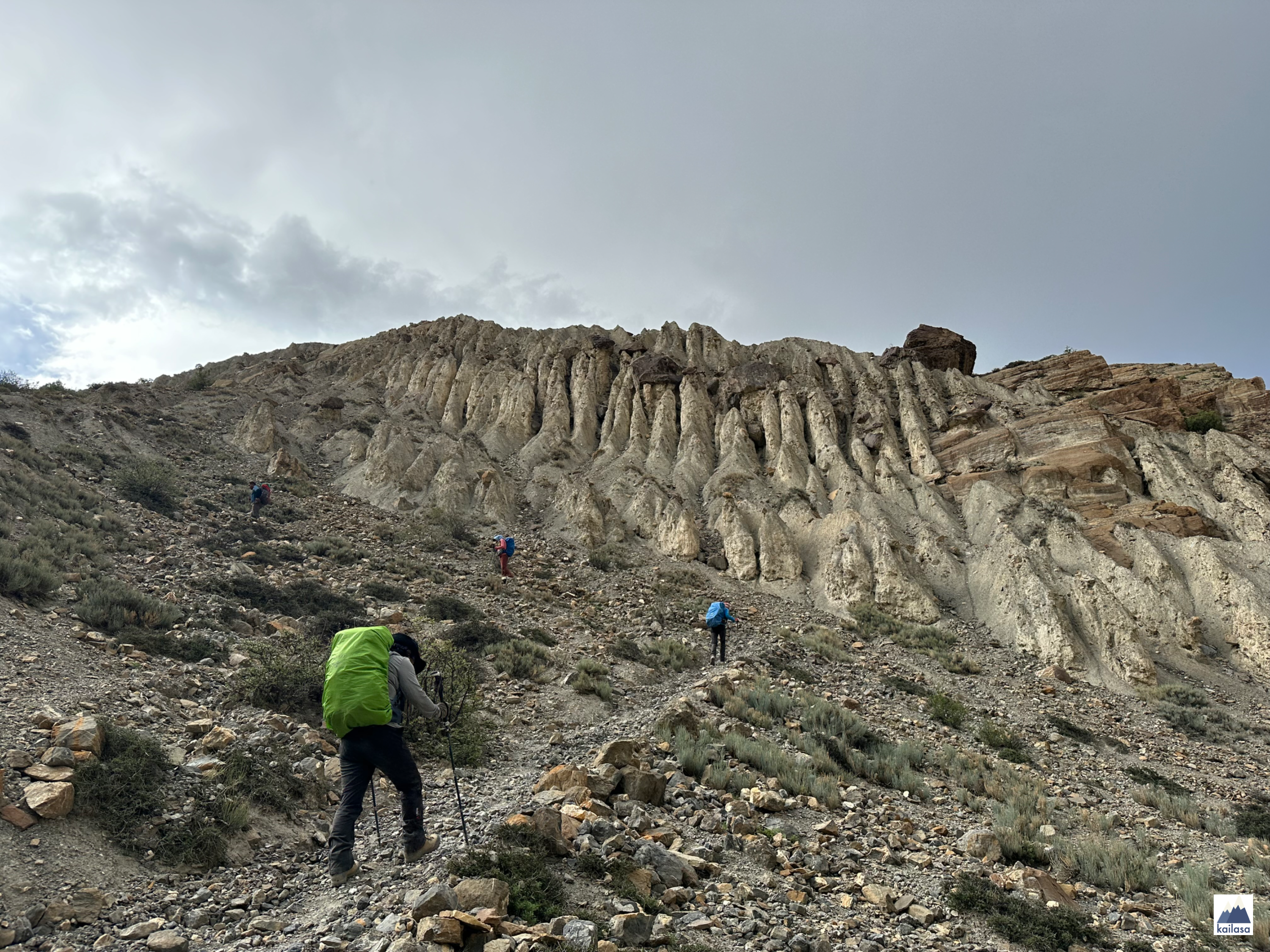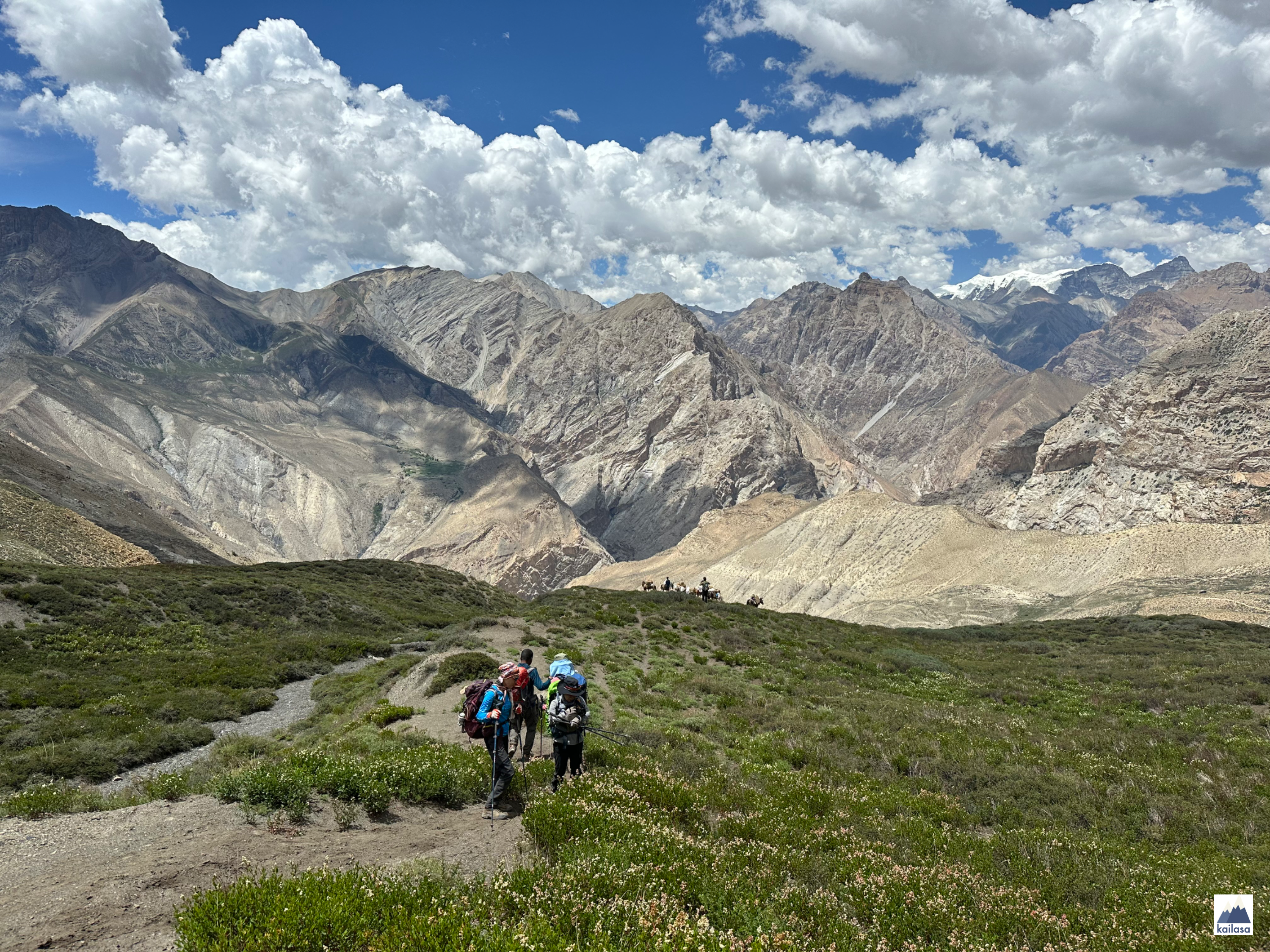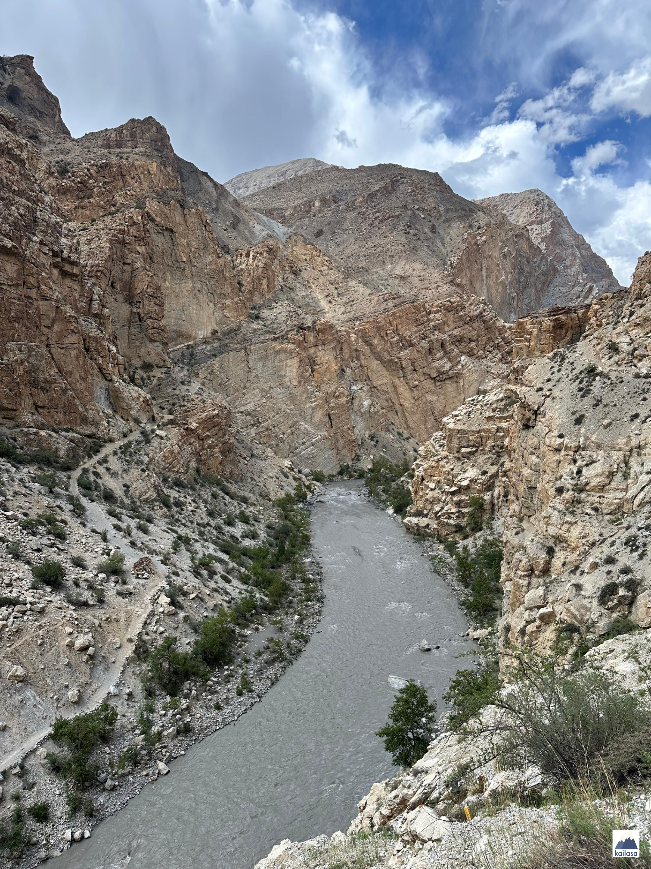 내리막의 끝까지 가서 계곡의 다리를 건너고 나면 또 한참을 올라가야 한다. 맞은편에 노새들이 올라가는 게 보이고 그 뒤에 빠상 한참 뒤에 직메와 소남이 천천히 절벽 아래 길을 올라 지그재그로 오르는 것이 보였다.