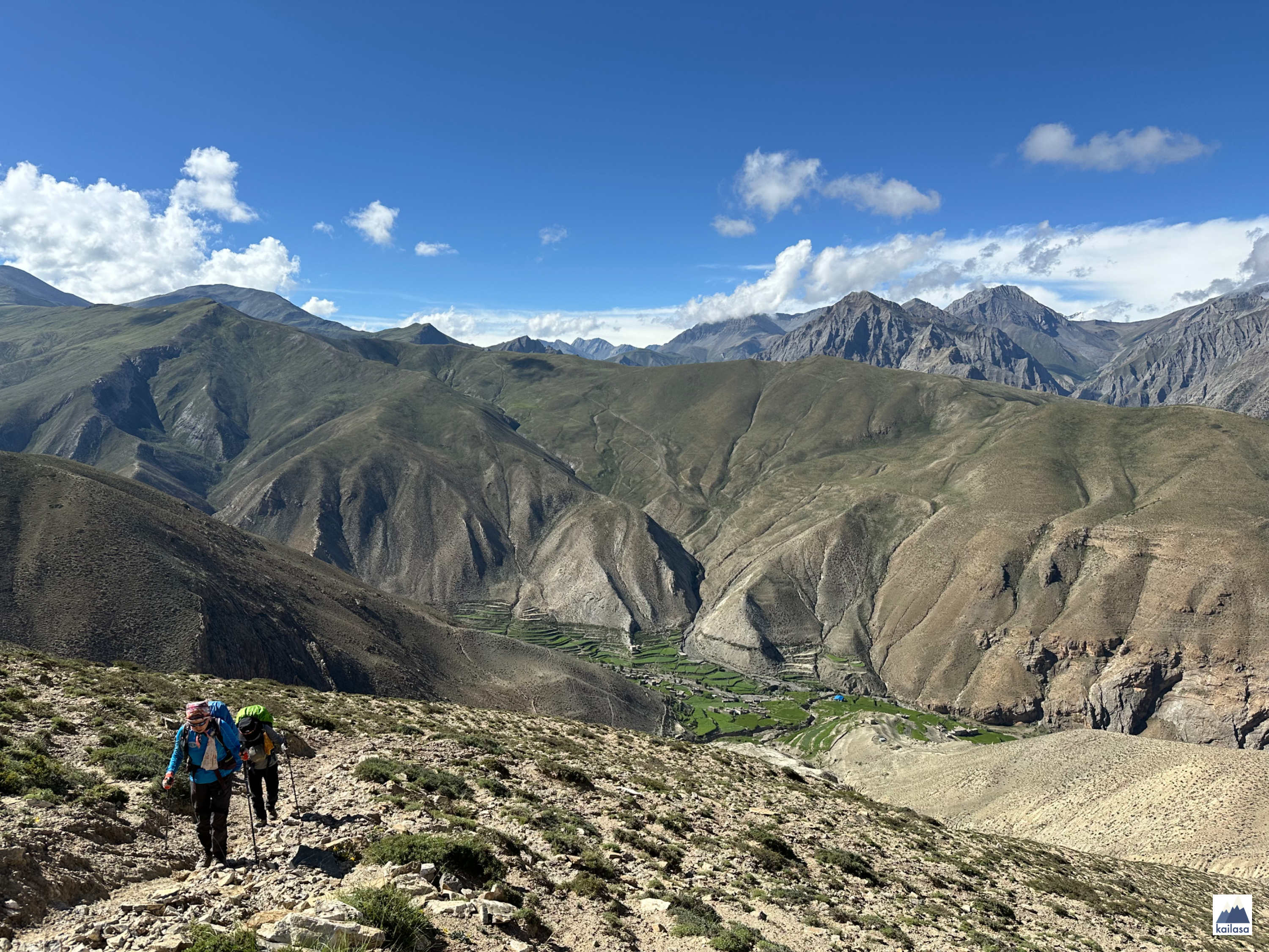 '포 카르카'에서 묵을 줄 알았는데 물이 없어서 캠핑 할만한 데가 없어 맞은편에 보이는 마을까지 가야한다. 뚝 떨어졌다가 다시 올라가야 하는 루트가 눈에 훤히 보인다;;