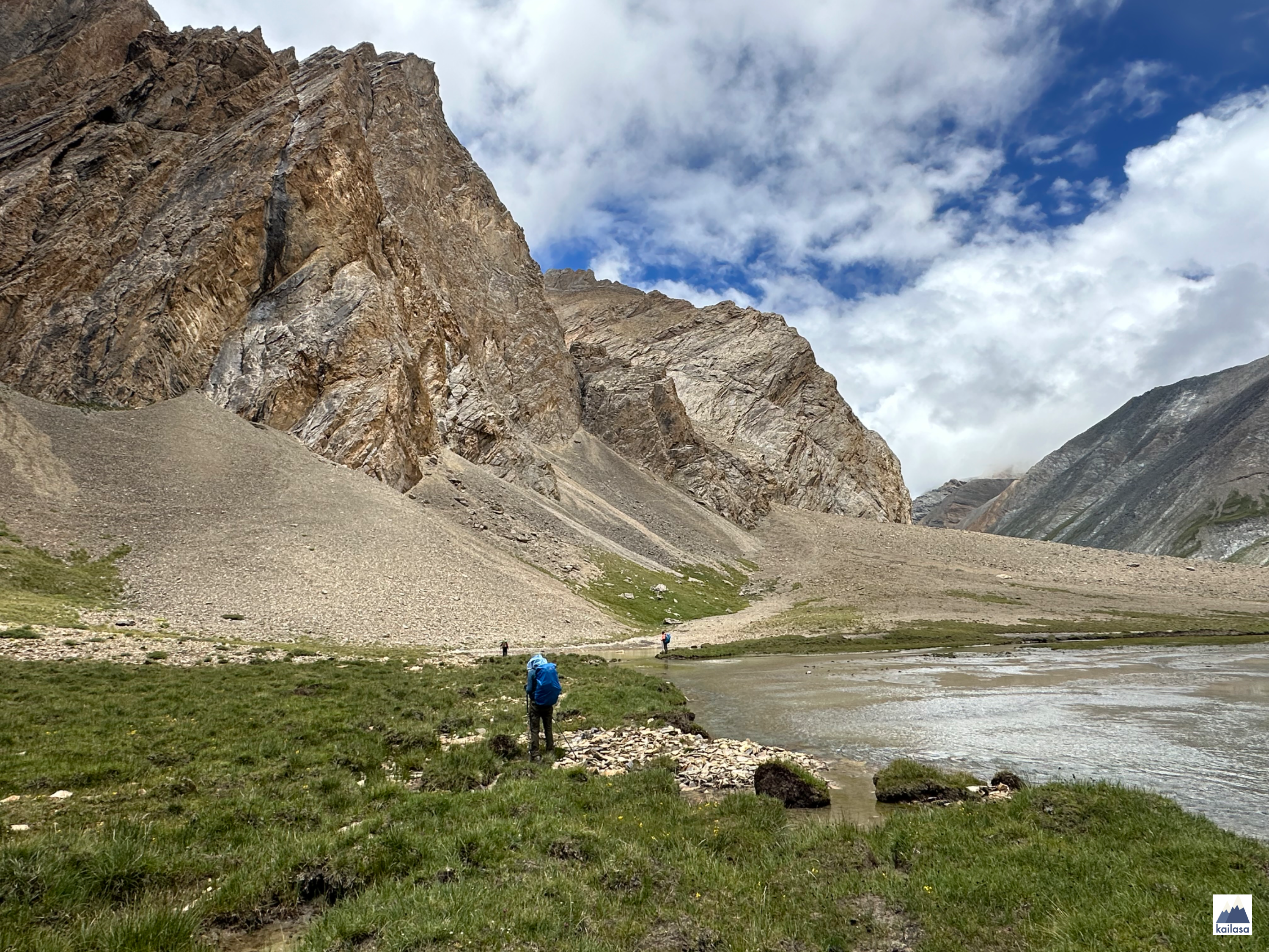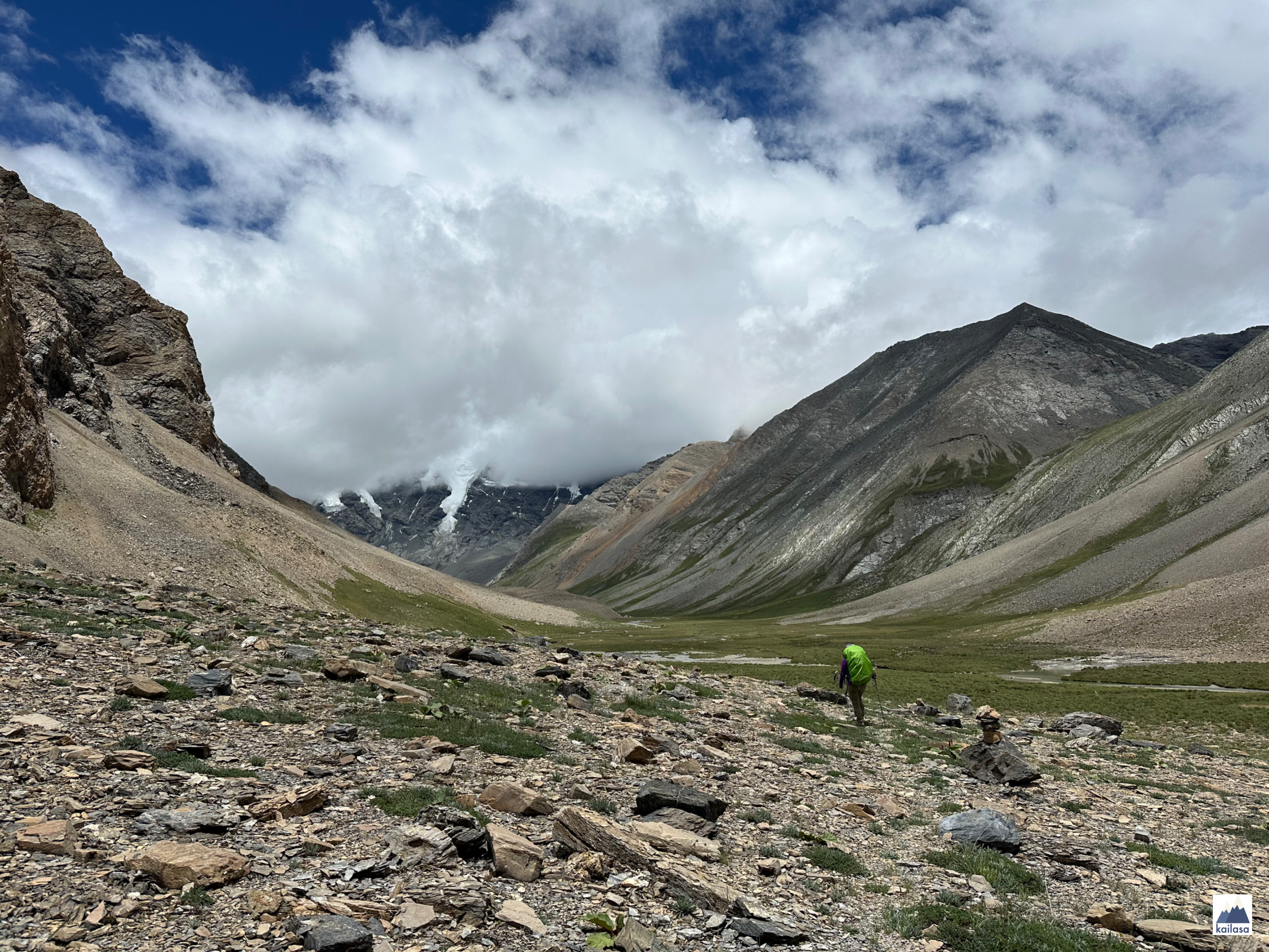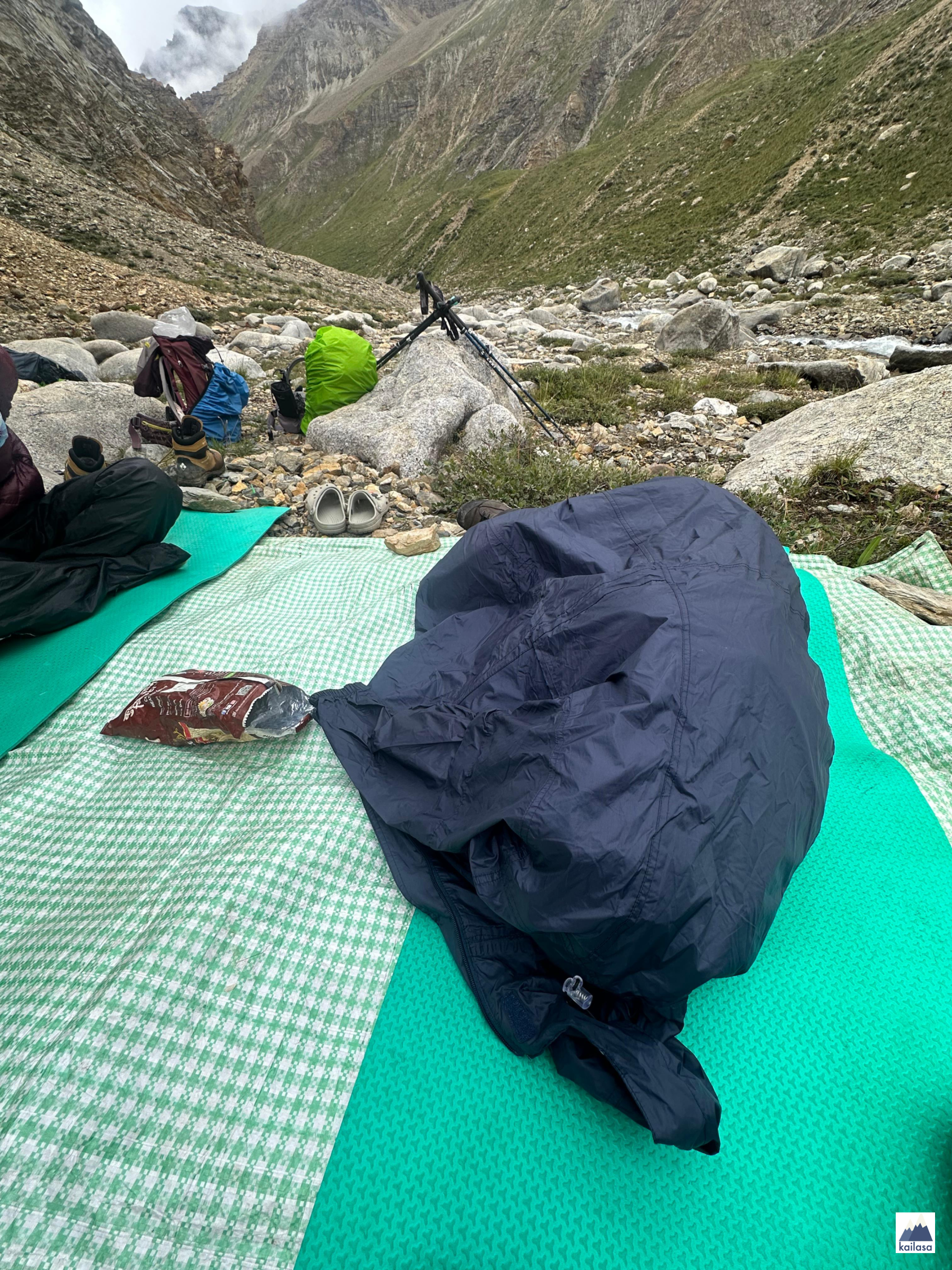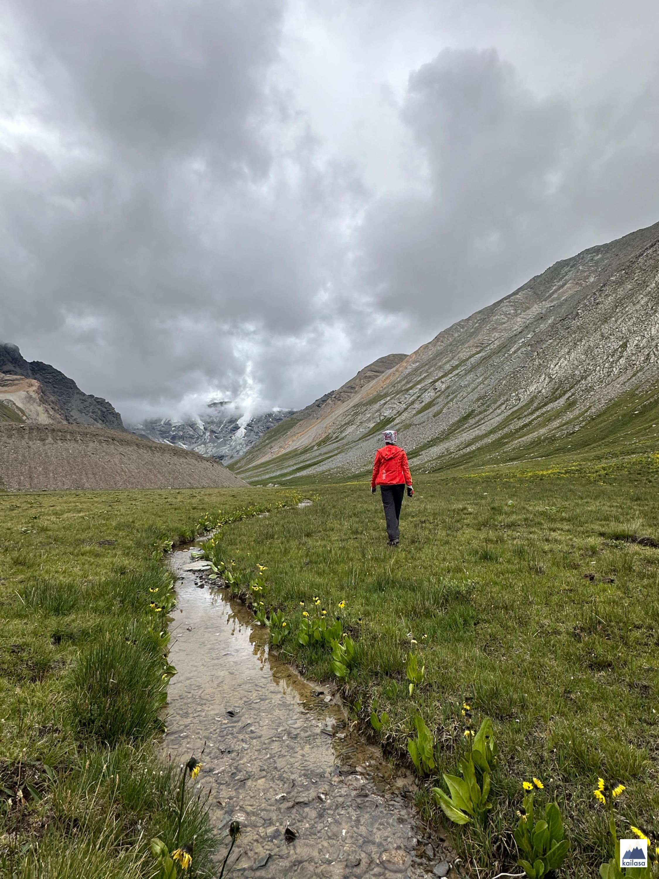 아름다운 풍경 속을 걷다 어느덧 캠프 사이트에 도착했다. 뒤로 설산이 보이는 아름다운 곳이다. 풍경을 더 즐기고 싶었는데 텐트 치기가 무섭게 비가 온다;