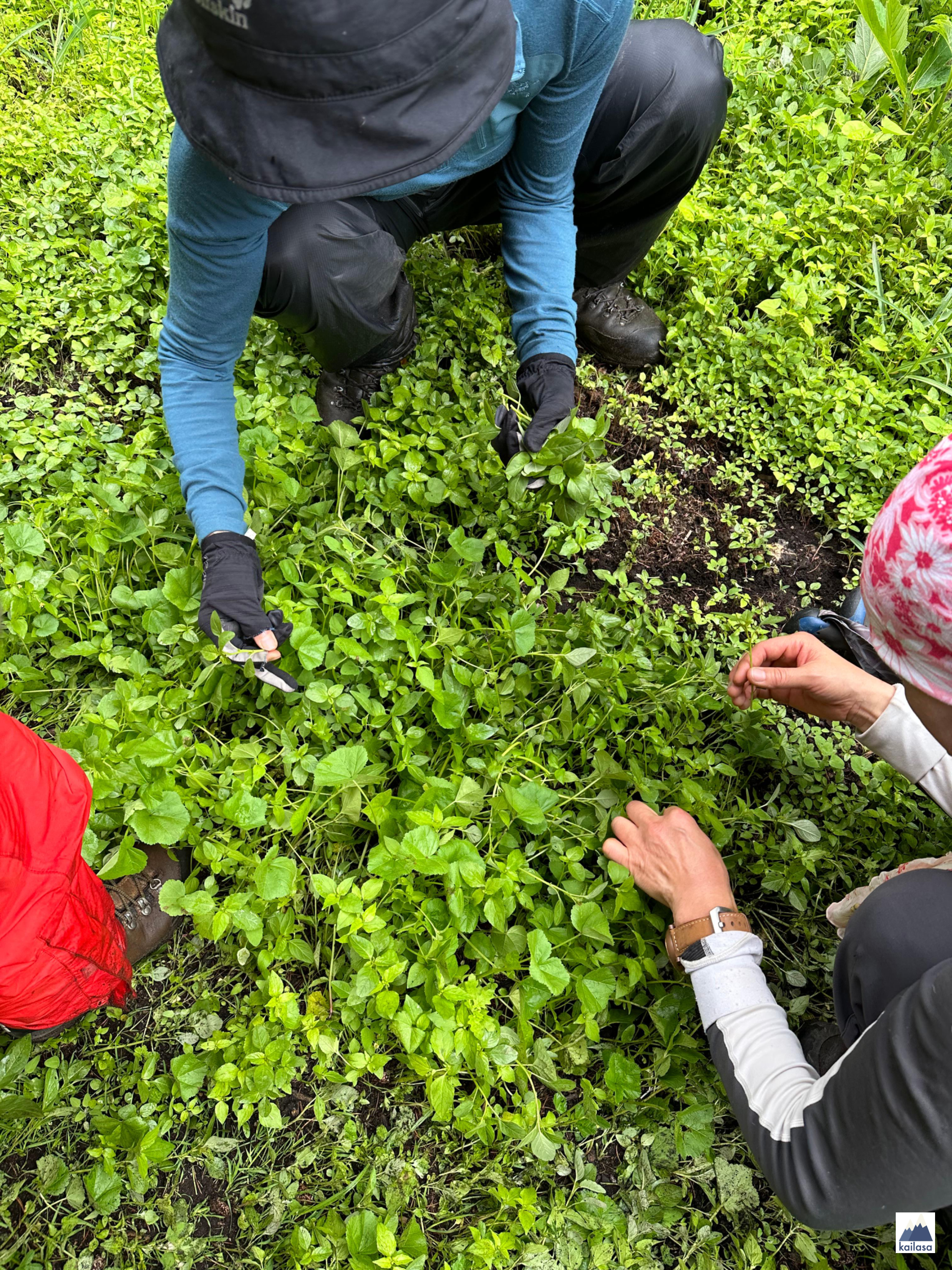 풀숲을 헤치며 거의 길이 아닌 길을 갔기 때문에 마땅히 쉴 곳이 없었다. 펨바 다이가 오더니 바로 앞에서 점심 준비하고 있다고 했다. 물가 바로 옆에 식사할 곳이 있었다. 폭샥 젖은 신발을 너무 벗고 싶어서 마르지는 않겠지만 우선 더 벗어놓았다.