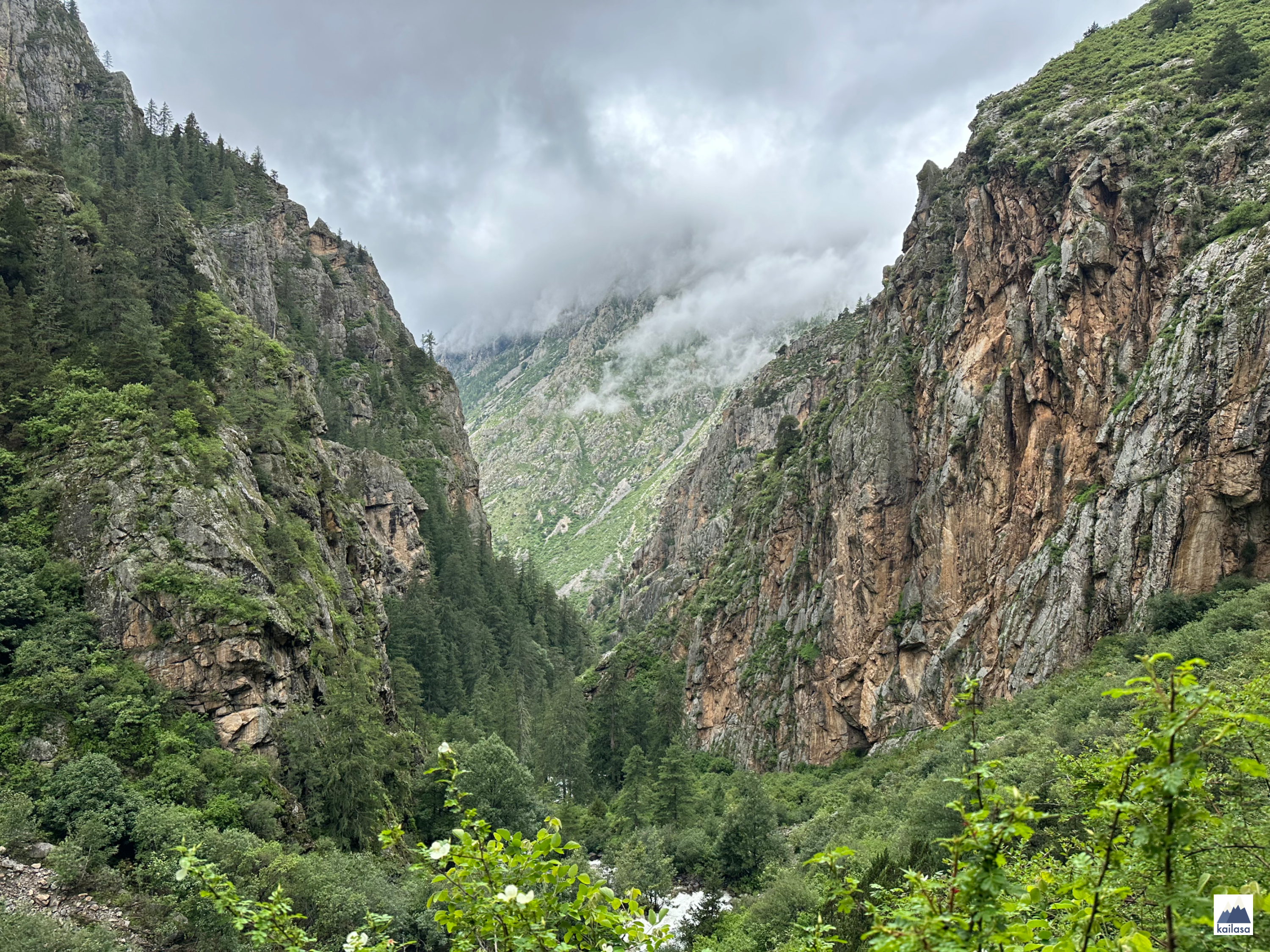 저녁에 비가 그쳐서 원숙 언니랑 동네 한 바퀴 산책했다. 북쪽 맞나? 아무튼 위쪽으로 올라가면 티벳이라고 한다. 코로나 이후로 국경이 폐쇄되었다가 티벳과 이곳 주민들과의 국경만 열렸다고 한다.