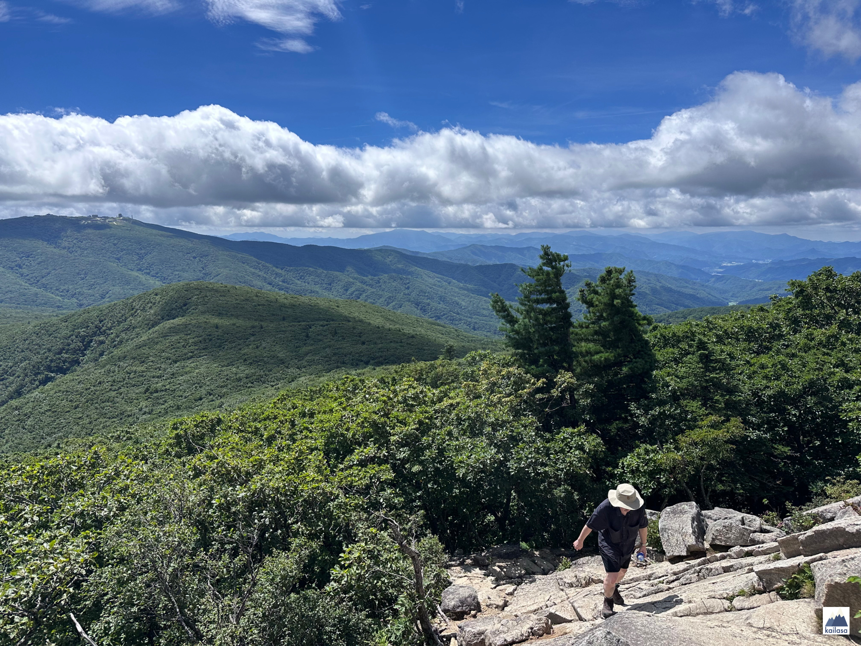 백운대하면 북한산 백운대밖에 몰랐는데 오대산 백운대는 예상과는 달리 계곡 옆에 큰 돌탱이들이 쌓여있는 모습이었다. 사실 백운대부터는 길이 굉장히 멋있어서 눈길 닿는 데마다 장관이었다. 이래서 소금강이라고 불리는구나 싶었다.