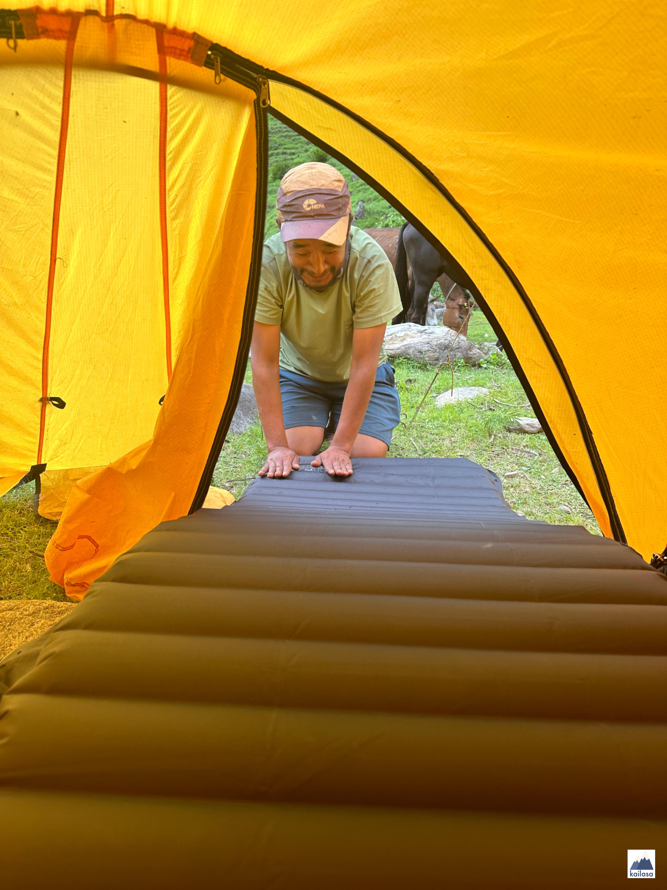 텐트 들어와서 옷 갈아입으려는데 빠상이 오더니 에어매트를 달라고 했다. 바람 넣어준다고.(내 꺼는 진짜 여러번 - 200번 이상? - 눌러야 바람이 들어간다. 흑 언니들 것 부럽다;;)
