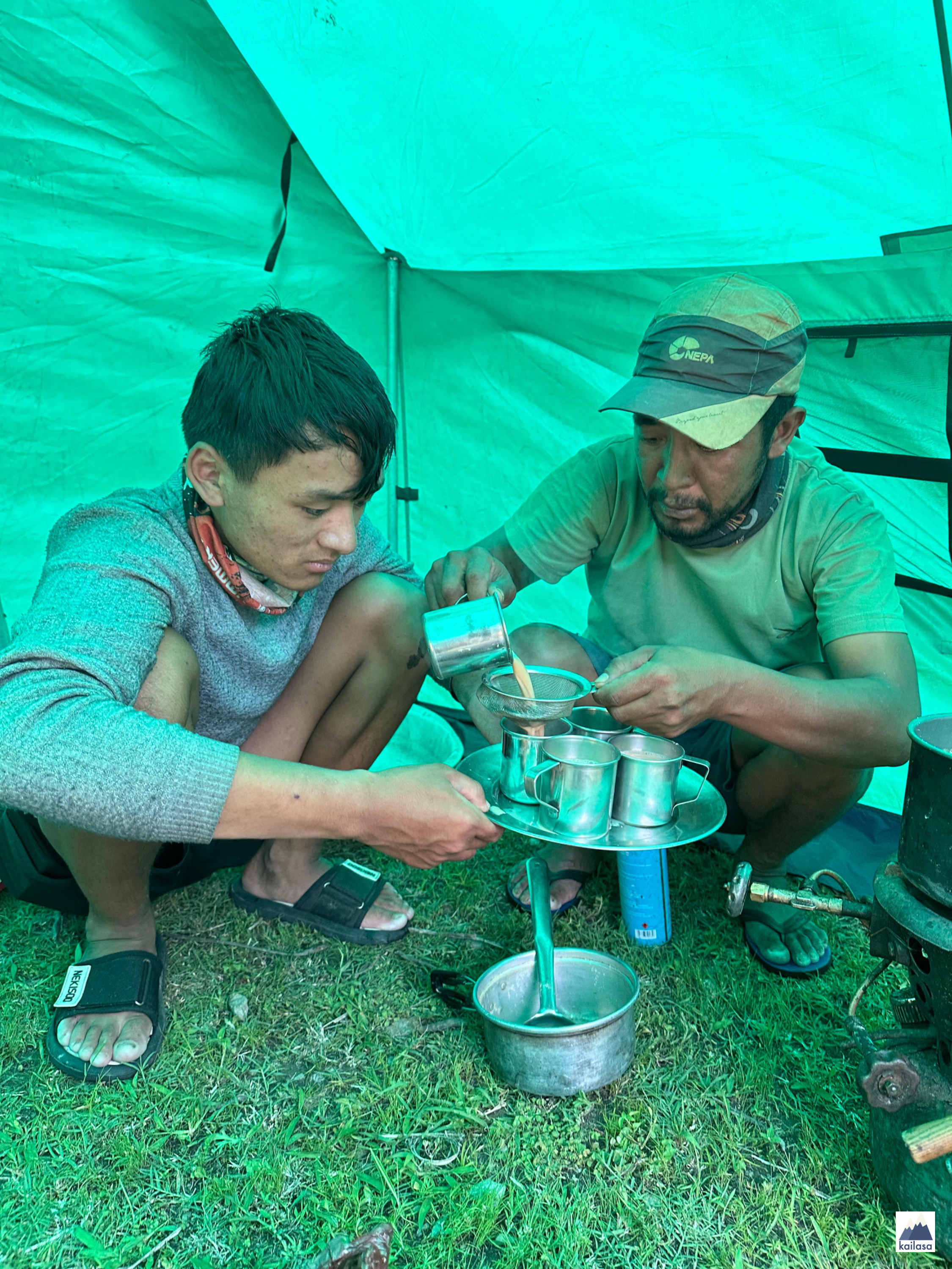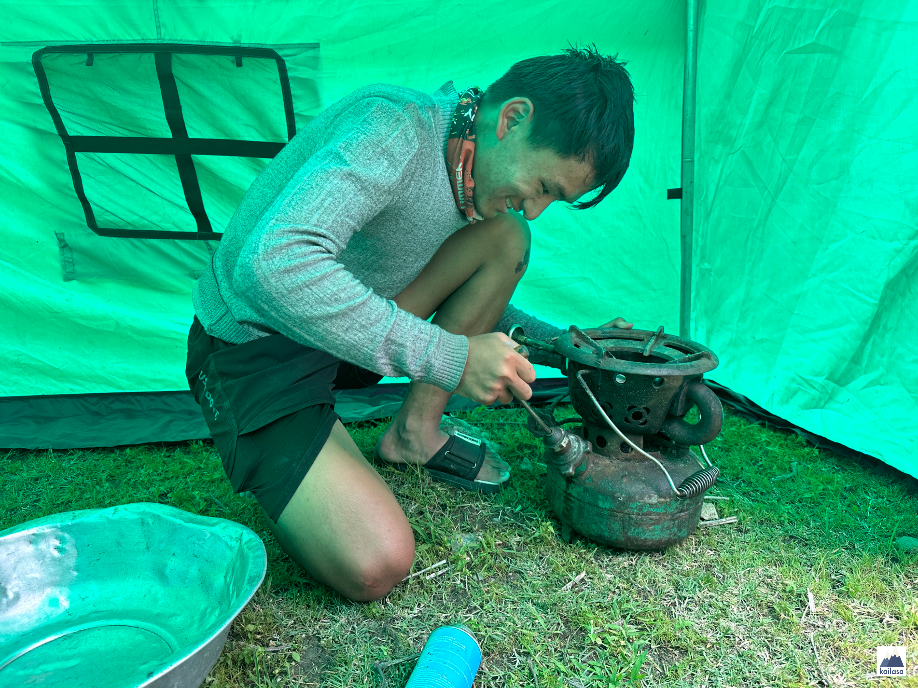 빠상이 나보고 둣 찌야(밀크티) 만들라고 하는 것 같기에 직매 티 끓이는데 옆에서 거들기 + 구경했다. 석유 버너에 물 담을 코펠 올리고 끓이는데 아무리 찾아도 설탕이 없다. 싹싹 뒤져도 없어서 설탕 없이 먹어야 되나 싶었는데 빠상이 설탕이랑 뭐랑 뭐랑 사갖고 돌아왔다.