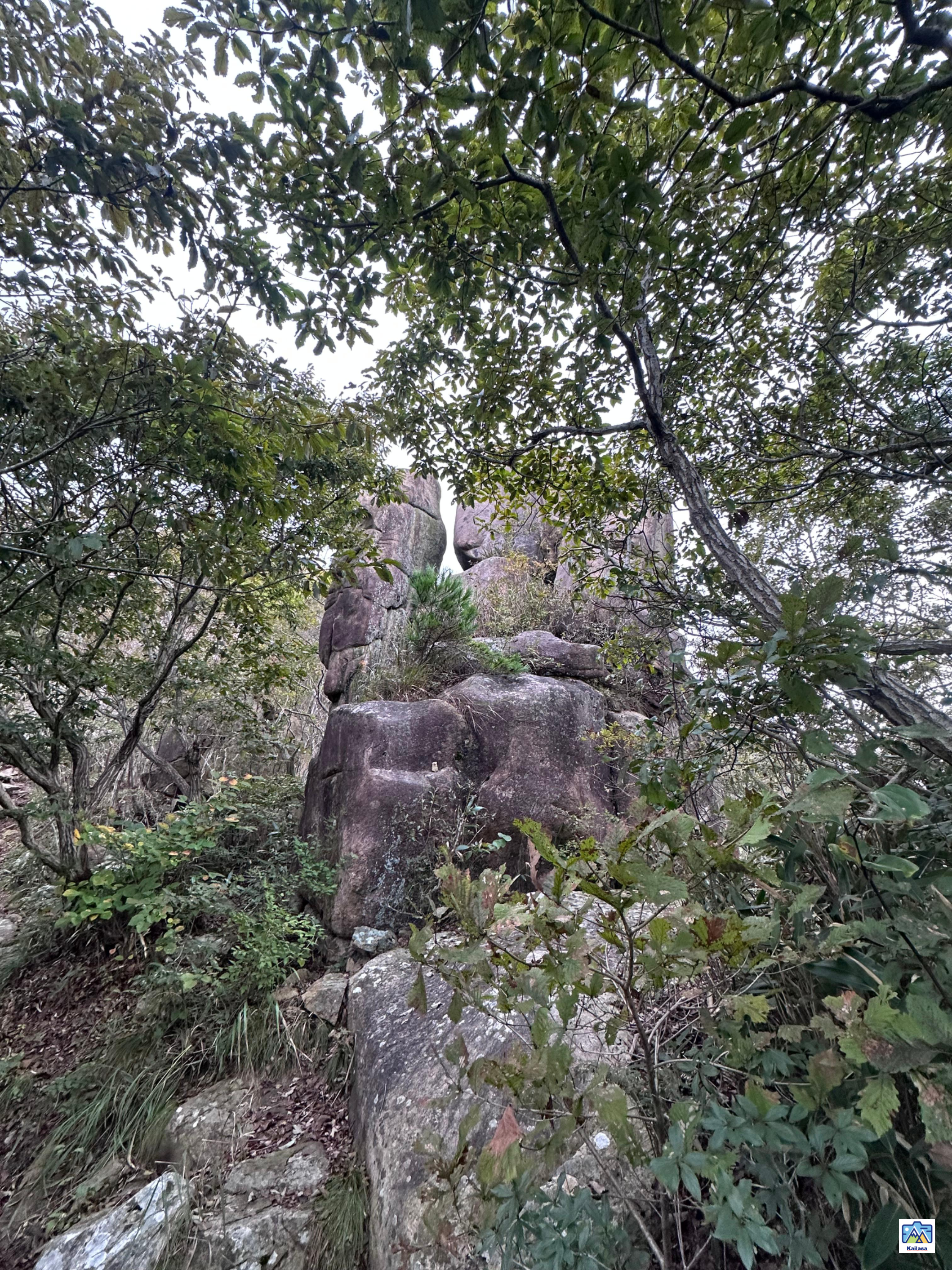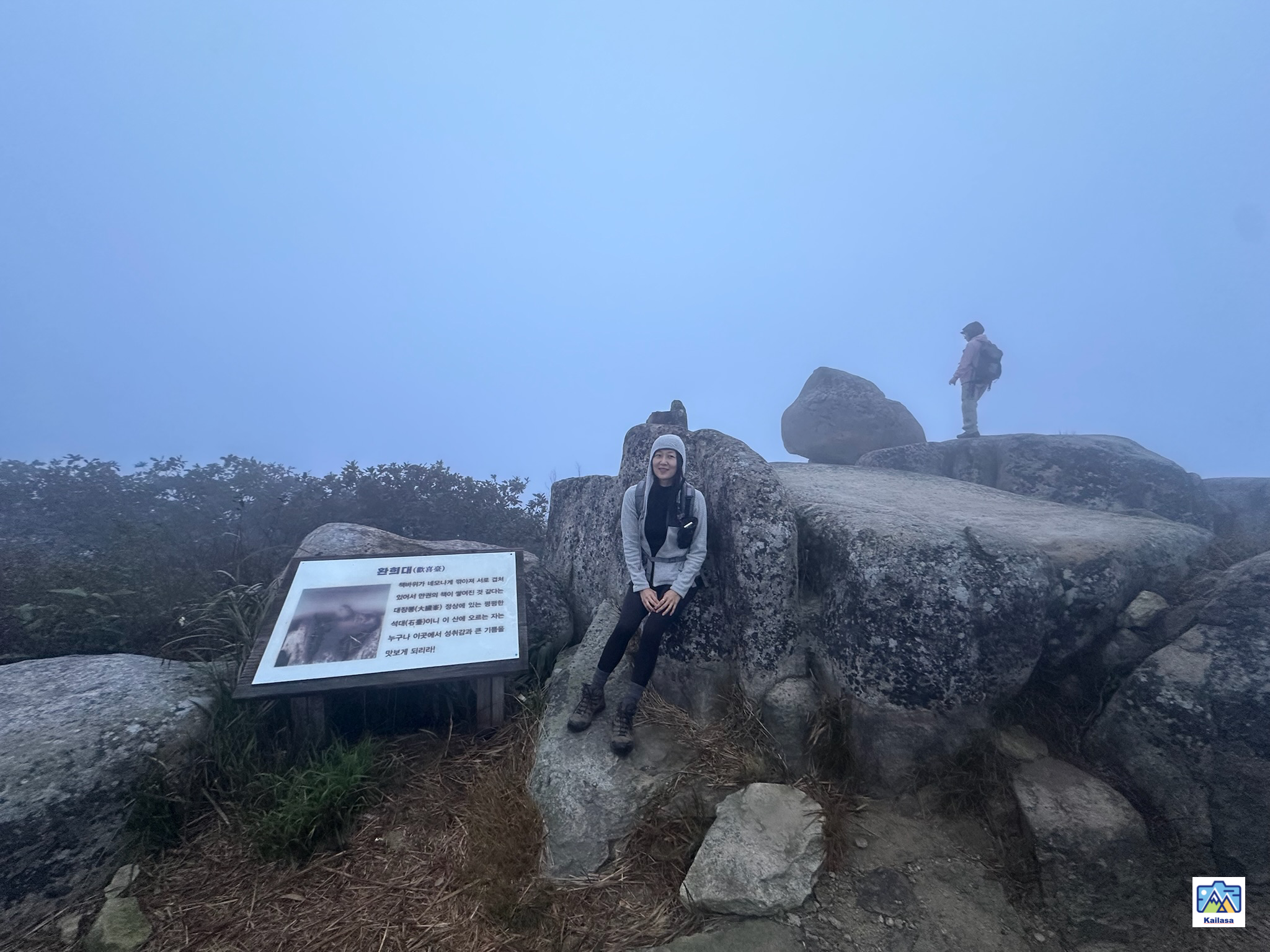 책바위가 네모나게 깎아져 서로 겹쳐 있어서 만권의 책이 쌓여진 것 같다는 환희대. 성취감과 큰 기쁨 맛볼 겸 환희대에서 사진 한 장 찍고 잠시 쉬었다 가기로 했다. 바람이 너무 세서 환희대 앞에 있는 바위 밑에 앉았는데 바위가 바람을 가려줘서 한결 낫다!